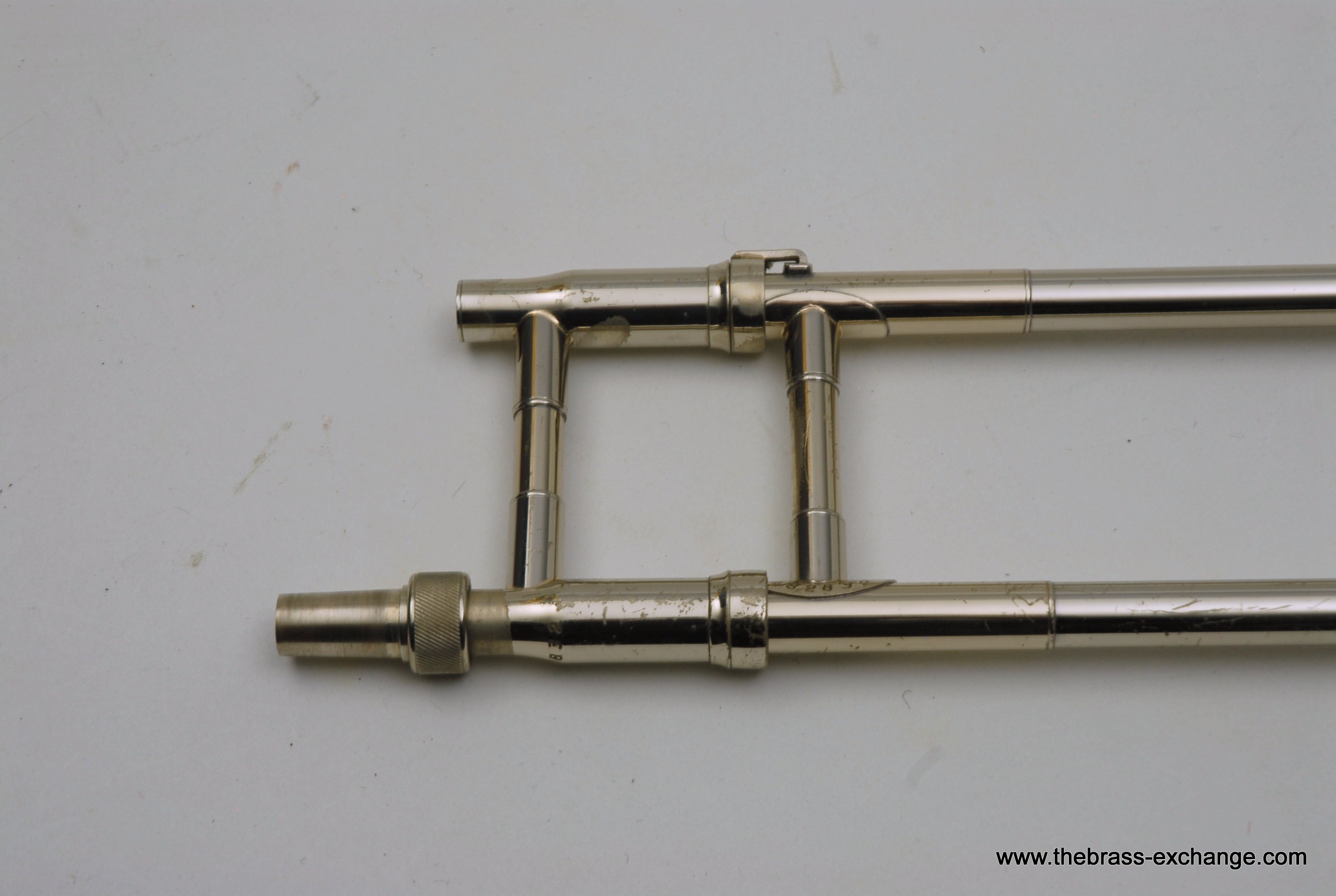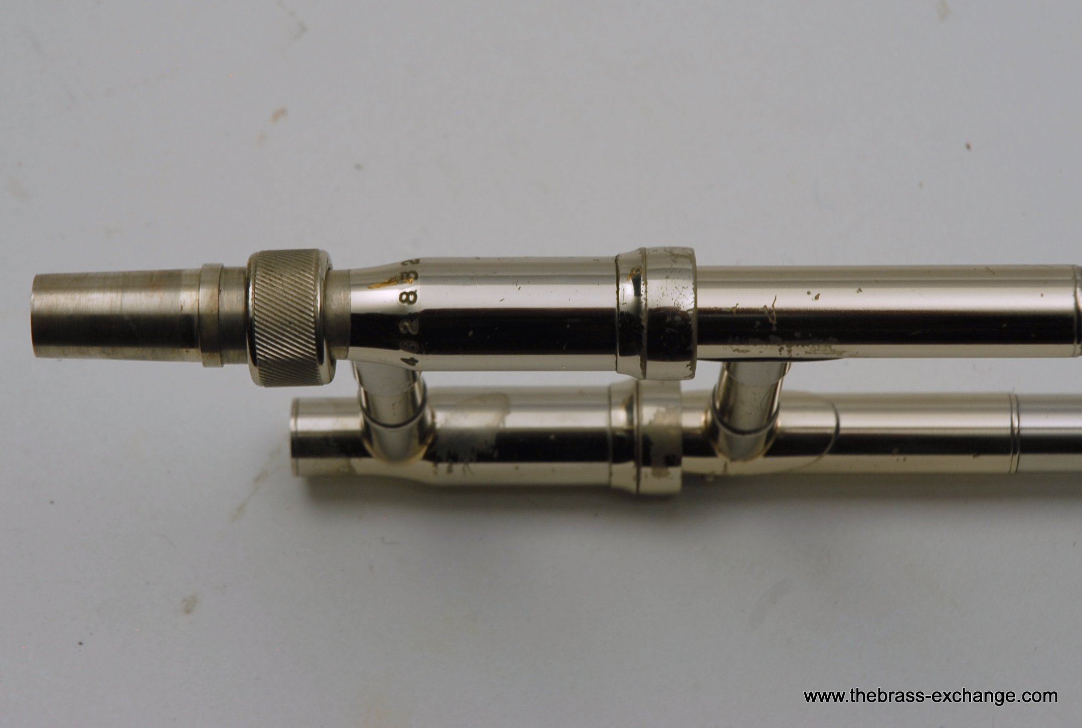 This horn, serial number 482832 (circa 1975–76), featured the distinctive “ropy” engraving pattern admired by King collectors. It retained all original parts and lacquer, with no evidence of prior damage or repair. A full shop service was performed, including a chemical bath and rotor service, ensuring optimal playability. The handslide was noted as excellent, with straight tubes, perfect alignment, and no defects.