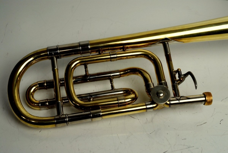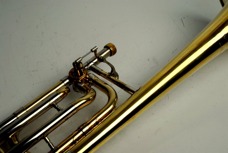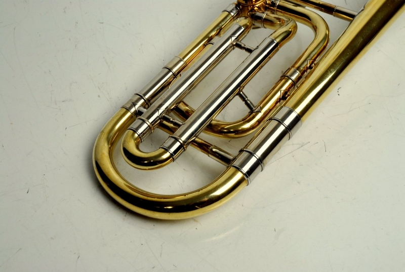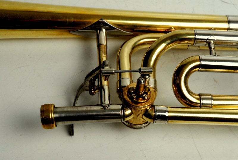 This example presents exactly as a strong single-valve 50 should. The bell is true and responds easily, with a centered low register and plenty of headroom up top. The handslide is straight, fast, and quiet; stockings are clean with no chrome loss. The rotor section was fully serviced here, and we improved the linkage—action is quick, smooth, and quiet. In short: a confident, orchestral-weight single that’s also friendly in large jazz or pit settings.