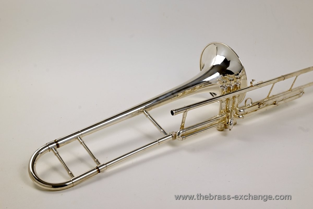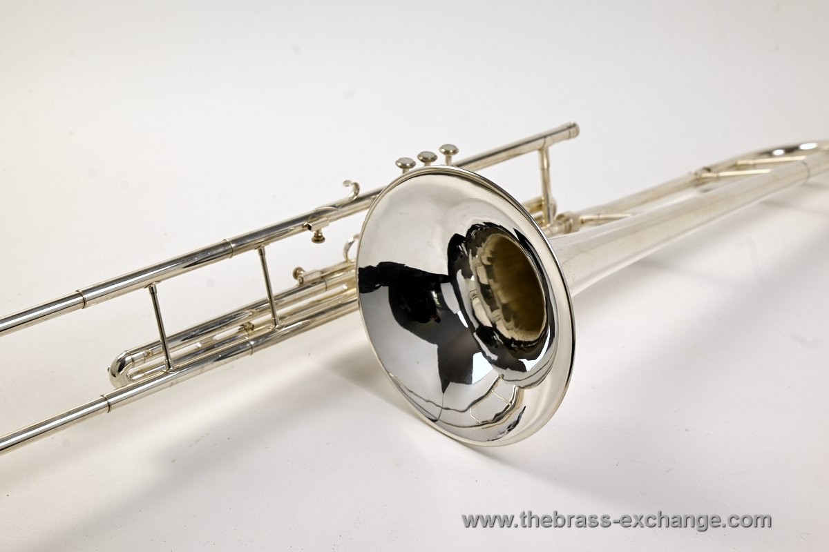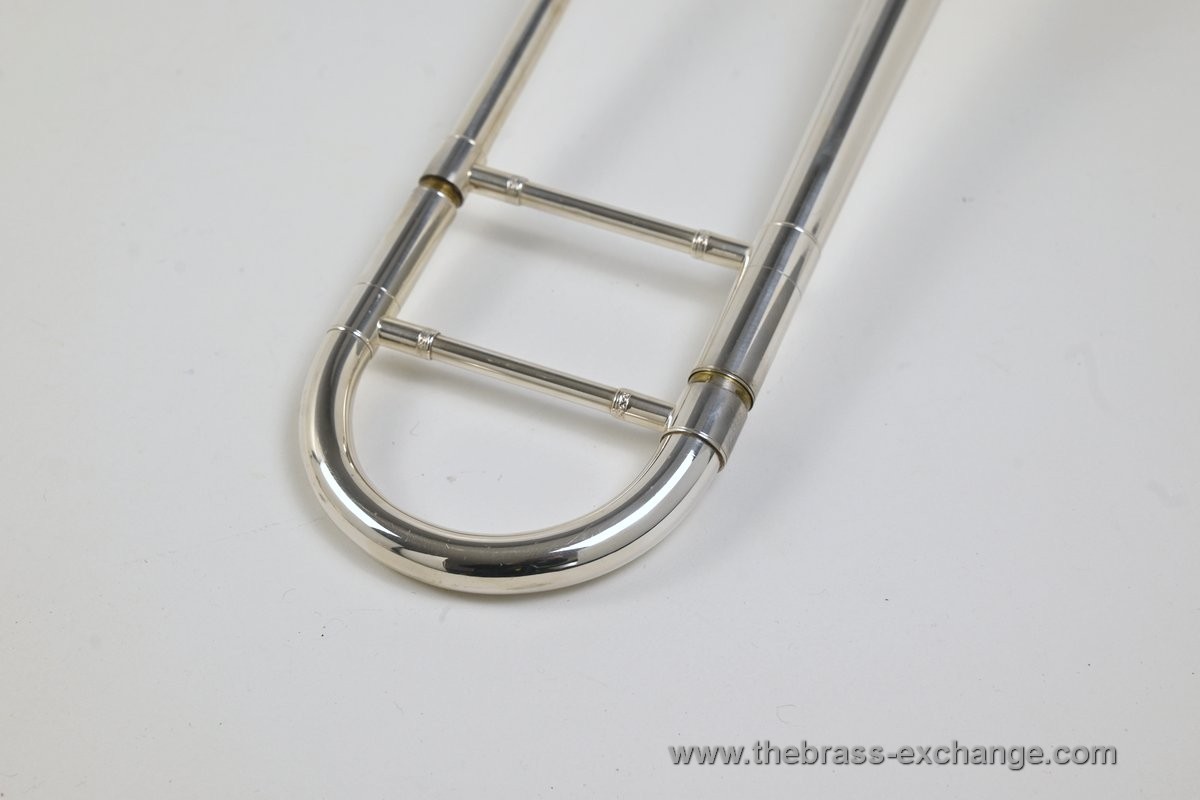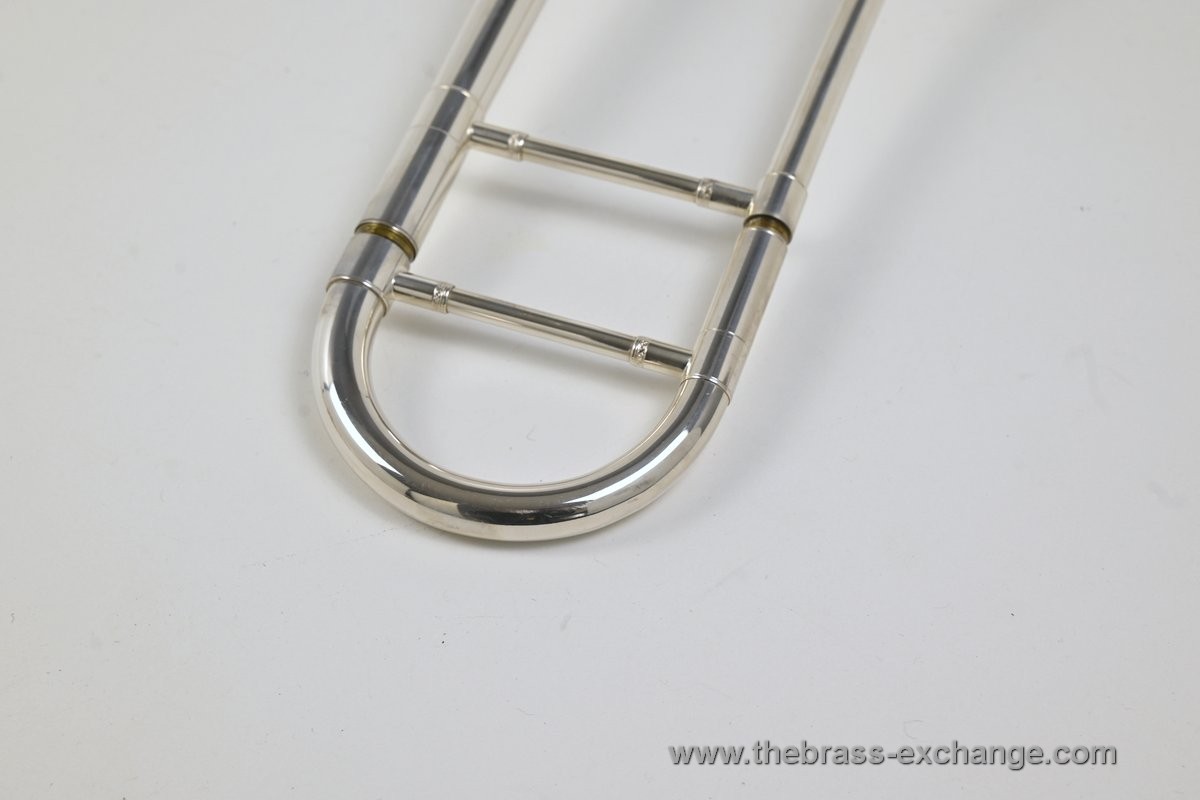 This pro model features an 8.5" bell flare with a medium-large bore, and it actually plays bigger and broader than most valve trombones we’ve seen here. It still takes a standard small shank mouthpiece—something like a Bach 6.5 works perfectly. Also includes a third valve slide for pitch correction, just like what you find on high-end trumpets.