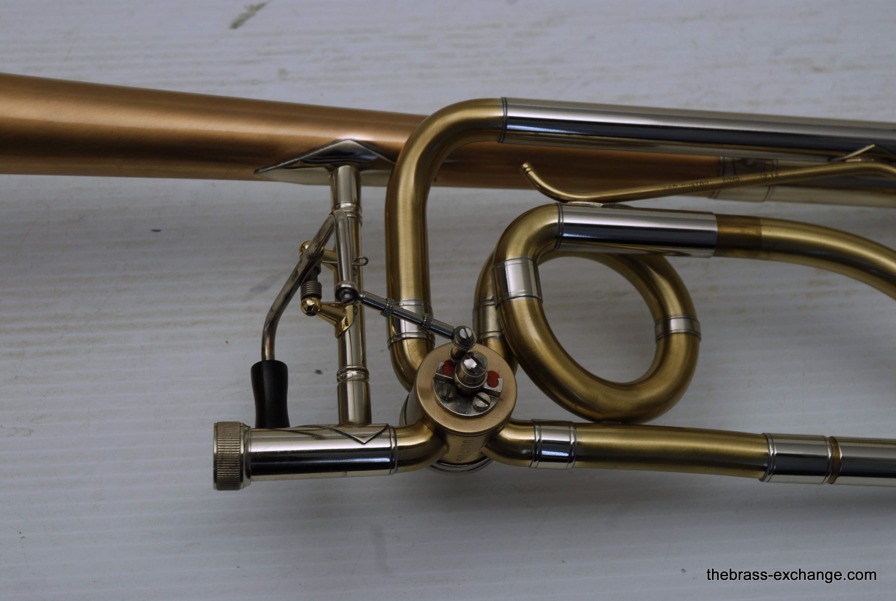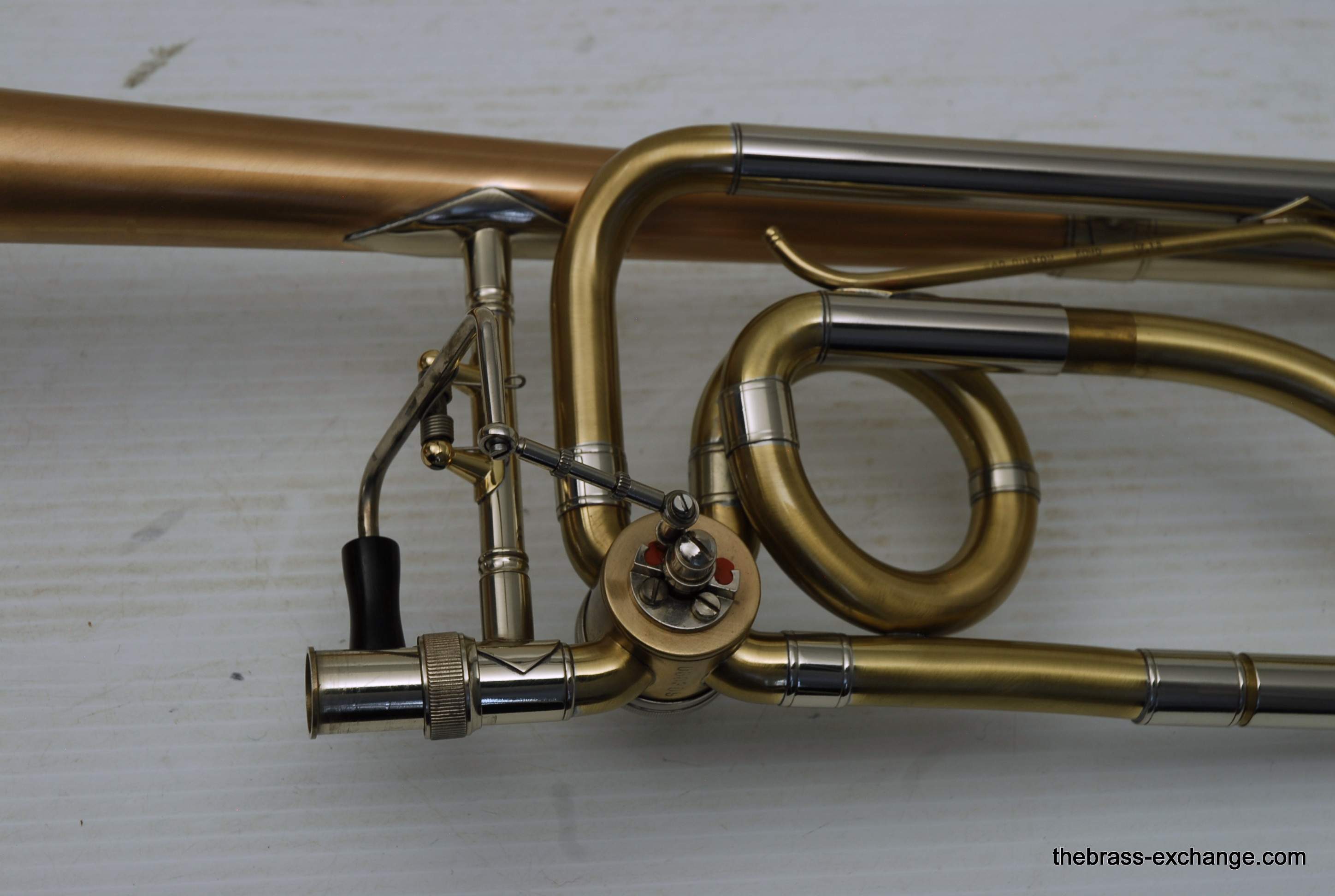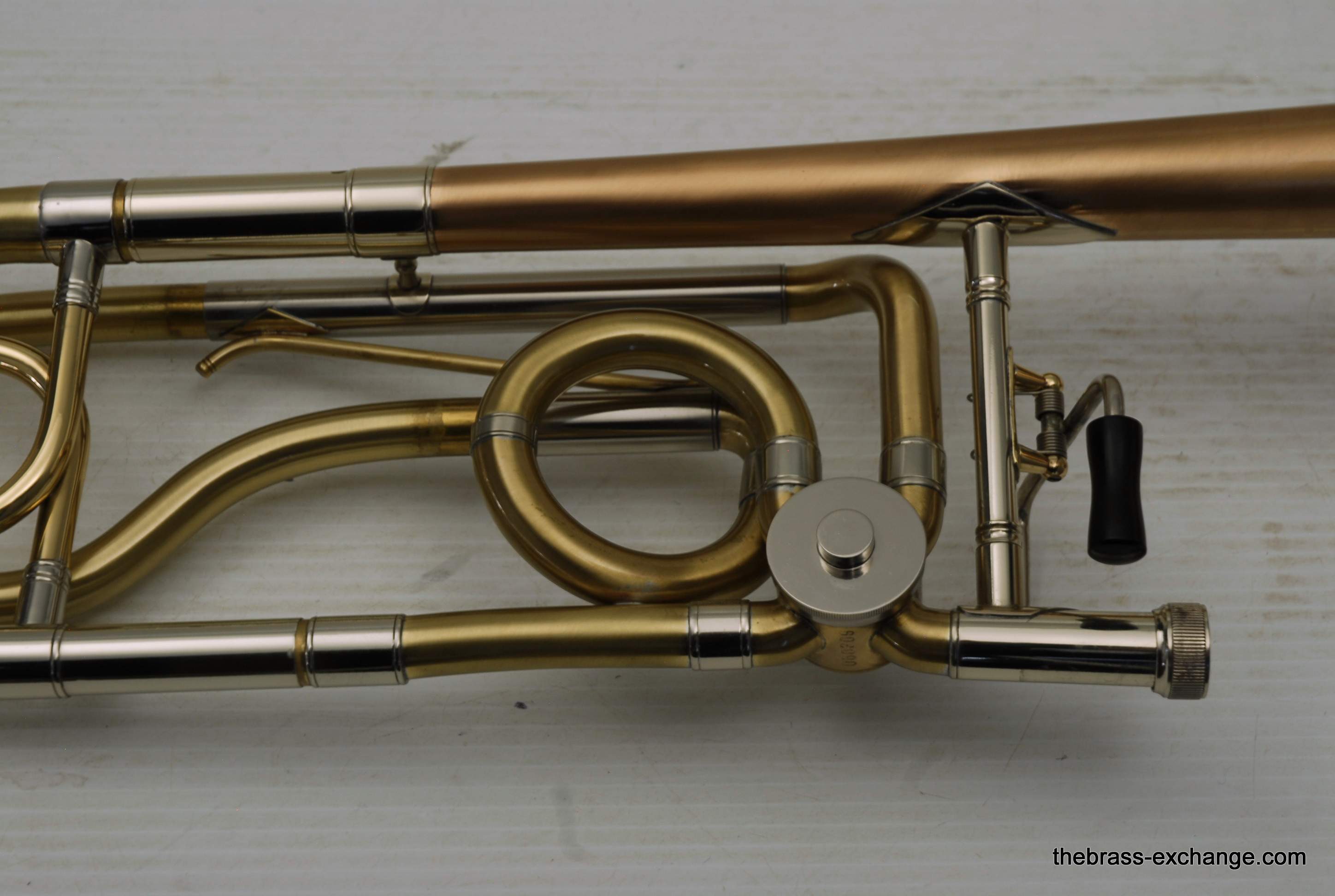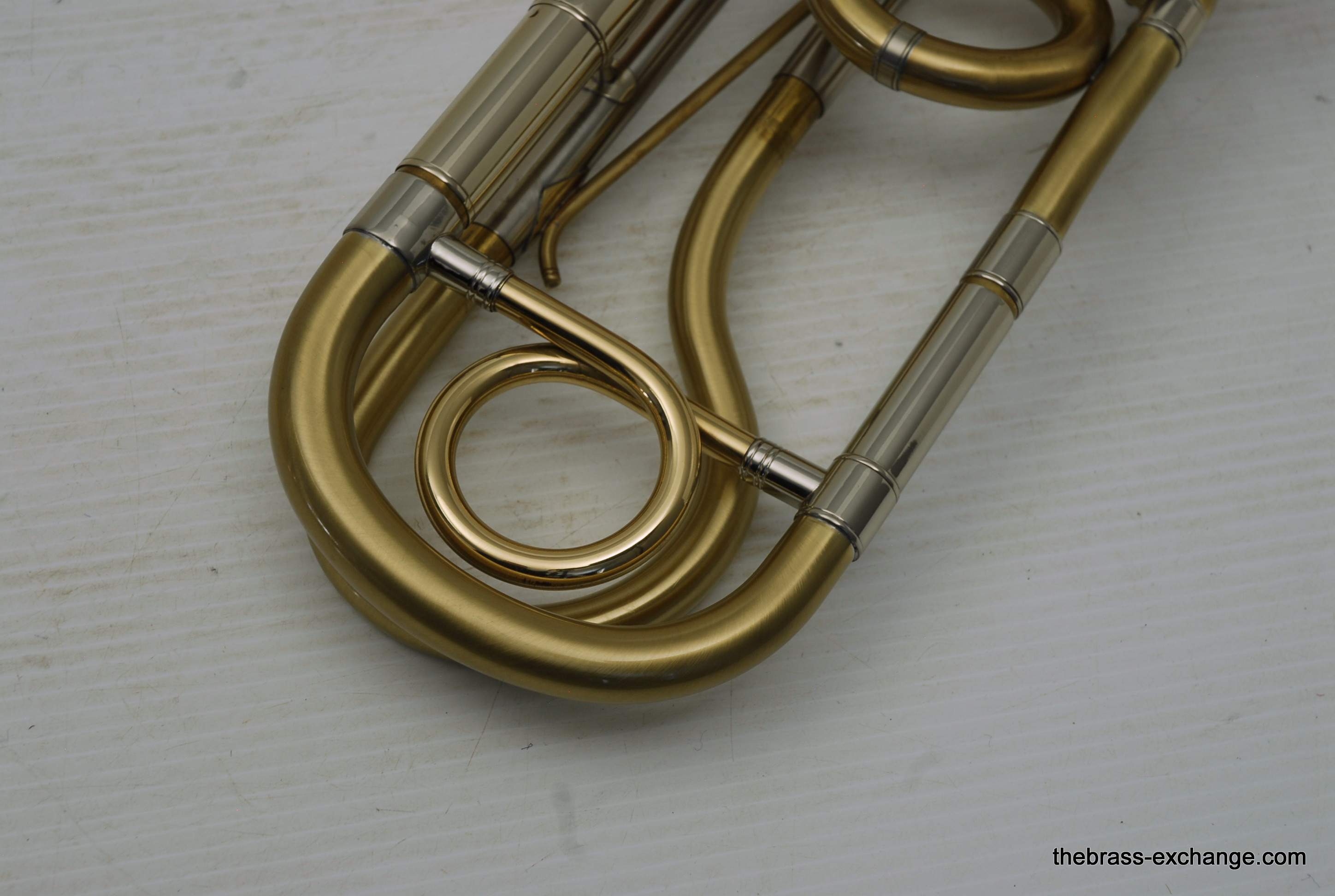 Mike Corrigan at BAC Custom Trombones has done it again with this gorgeous rebuilt 88H from the 1970’s. Custom loop wrap with additional bracing, updated mechanical valve linkage, rebuilt hand slide with Williams style curved hand grip. He didn’t leave anything on the table with this design. Has gorgeous satin finish, lacquer, with bright inner bell, is stunning. The horn plays terrific. Is weightier in feel and sound than a stock 88H. Projection is better. We know the BAC custom work is great, but also costly. This one is priced to sell. Comes with a Protec iPac case, excellent condition. In-stock for immediate delivery.