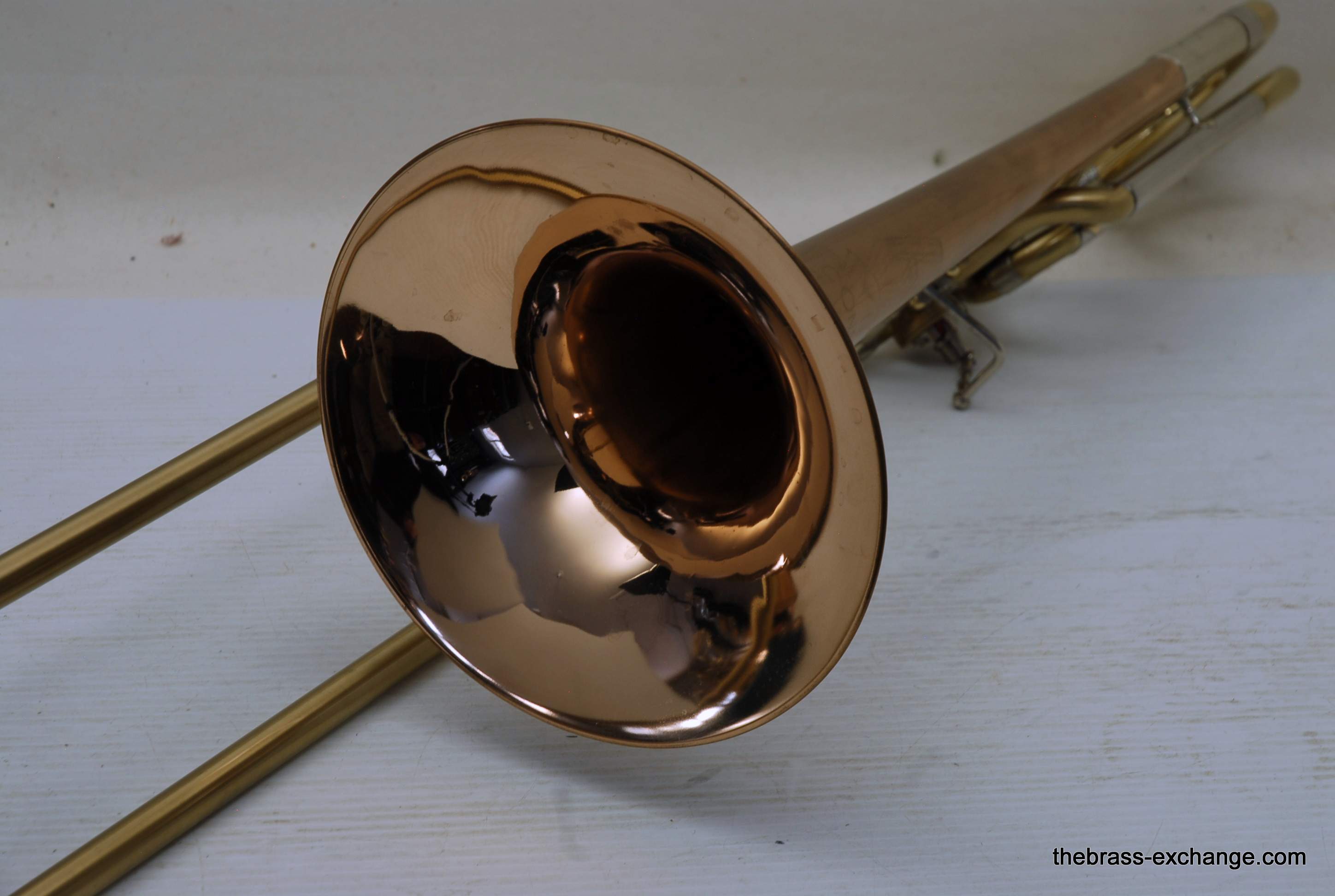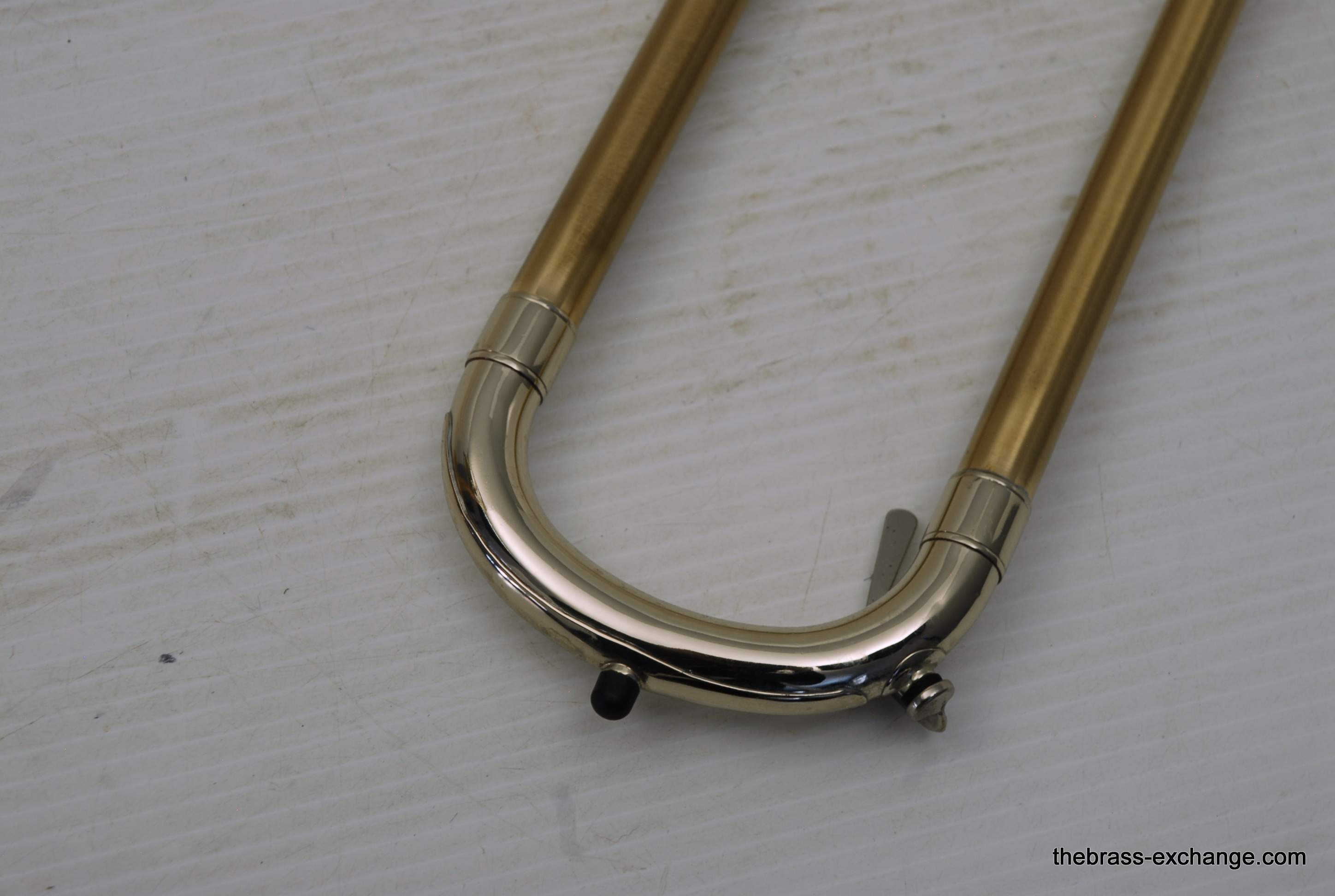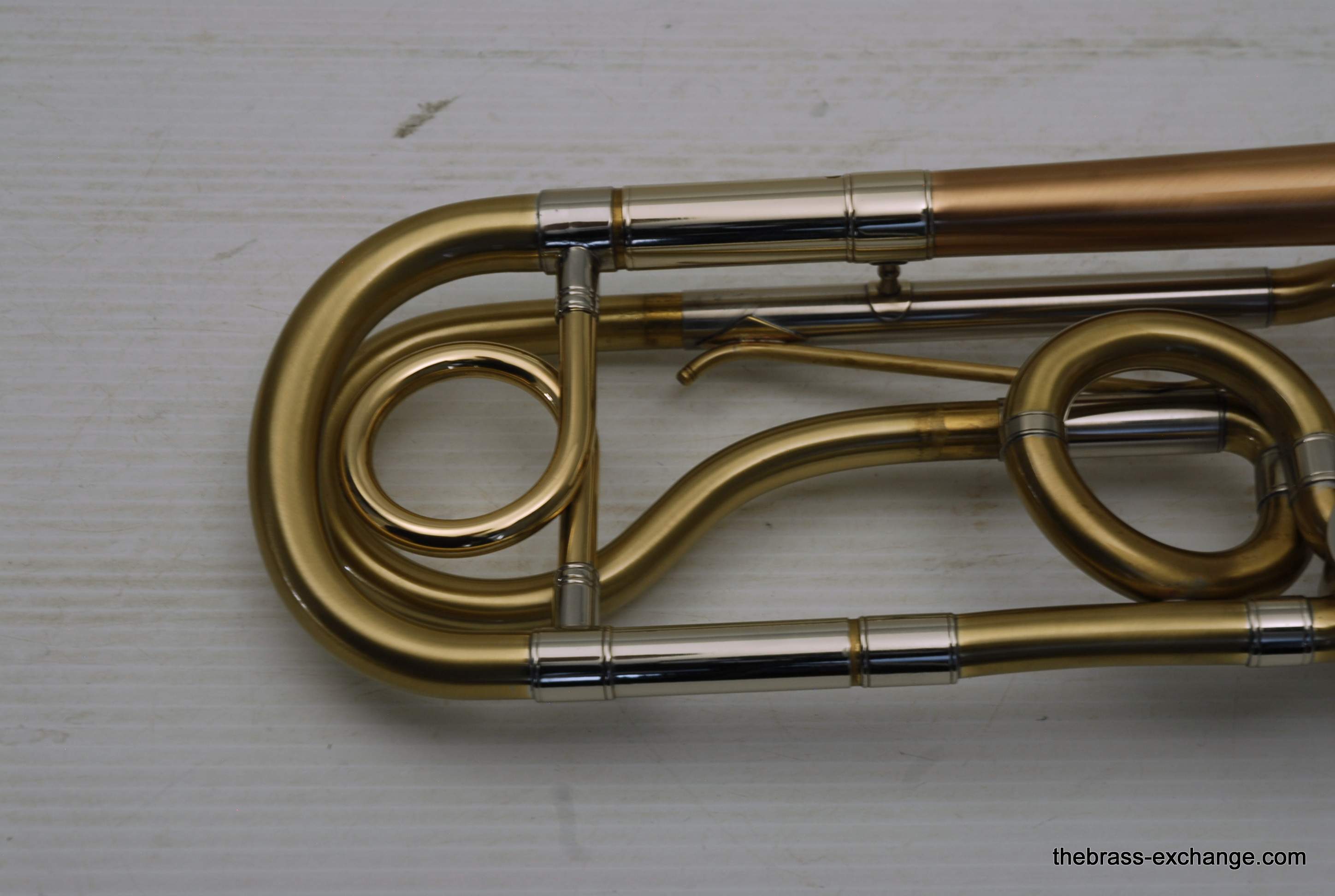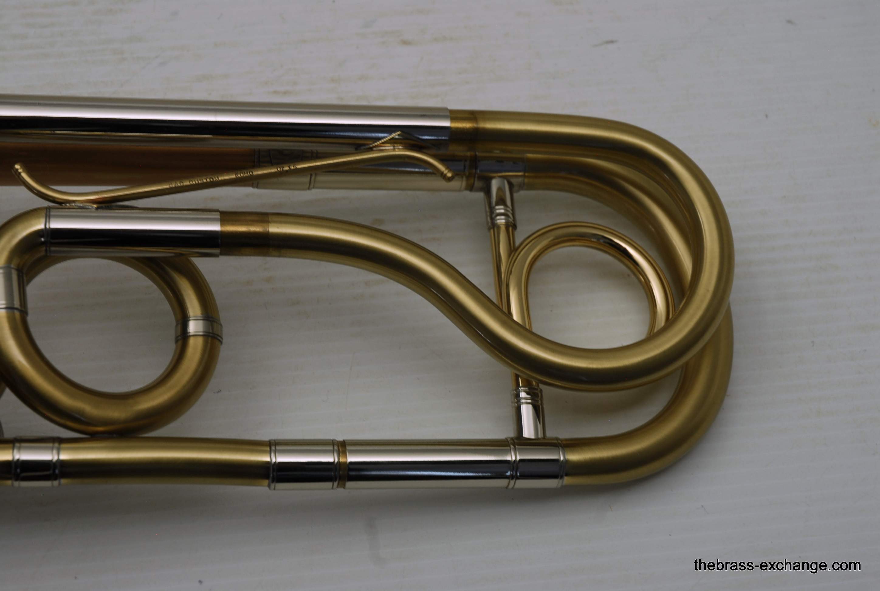 Mike Corrigan at BAC Custom Trombones has done it again with this gorgeous rebuilt 88H from the 1970’s. Custom loop wrap with additional bracing, updated mechanical valve linkage, rebuilt hand slide with Williams style curved hand grip. He didn’t leave anything on the table with this design. Has gorgeous satin finish, lacquer, with bright inner bell, is stunning. The horn plays terrific. Is weightier in feel and sound than a stock 88H. Projection is better. We know the BAC custom work is great, but also costly. This one is priced to sell. Comes with a Protec iPac case, excellent condition. In-stock for immediate delivery.