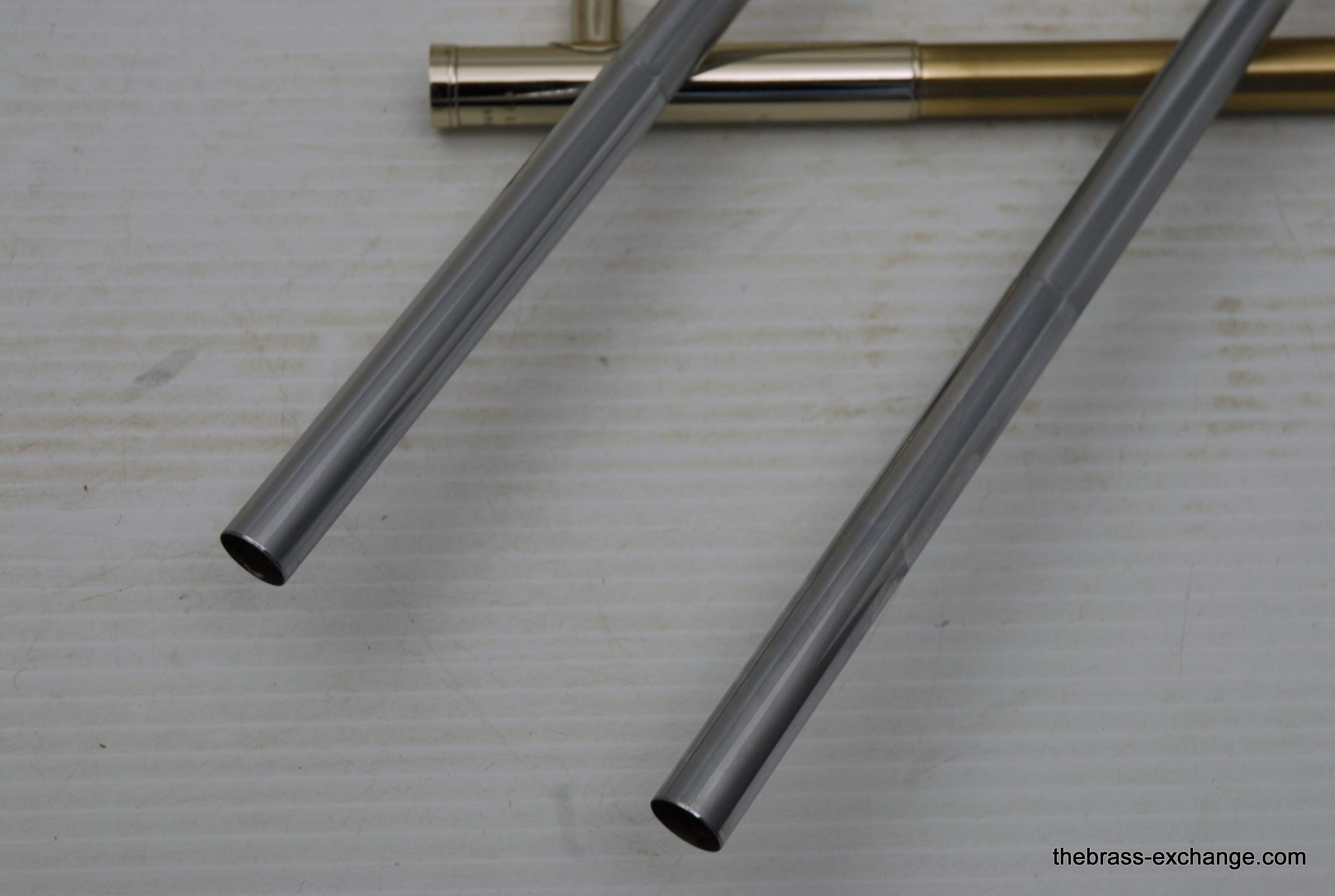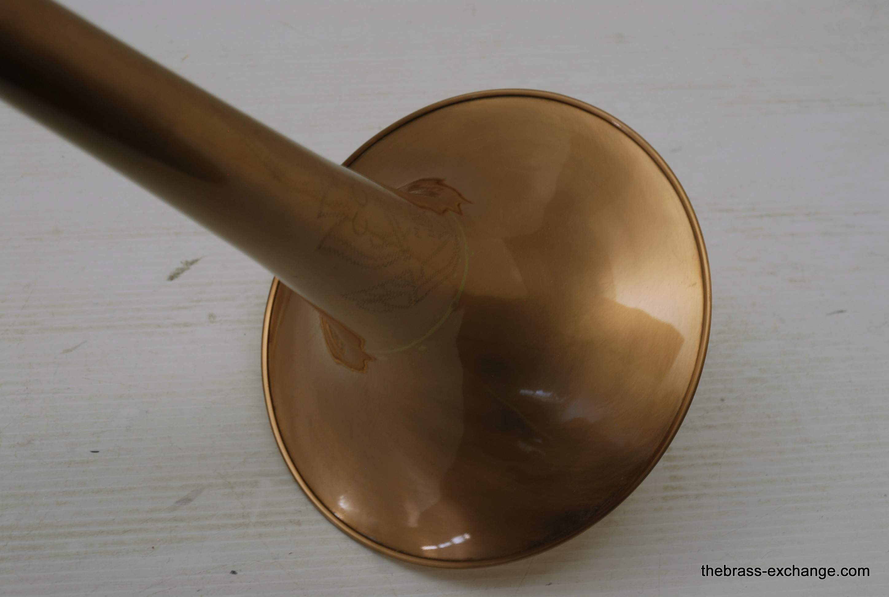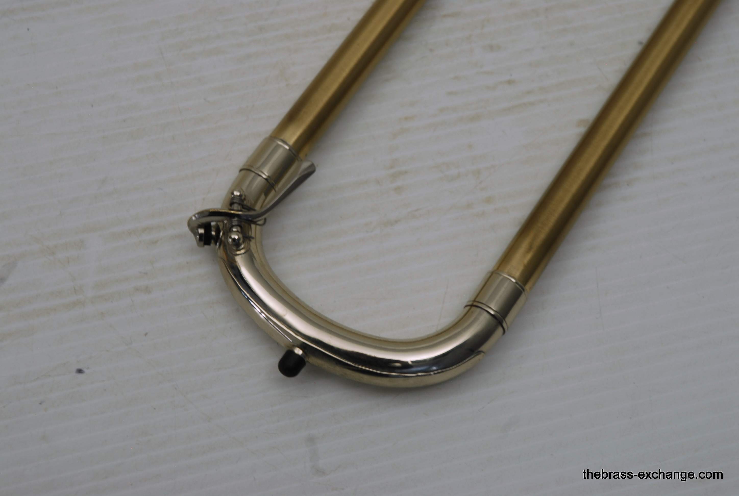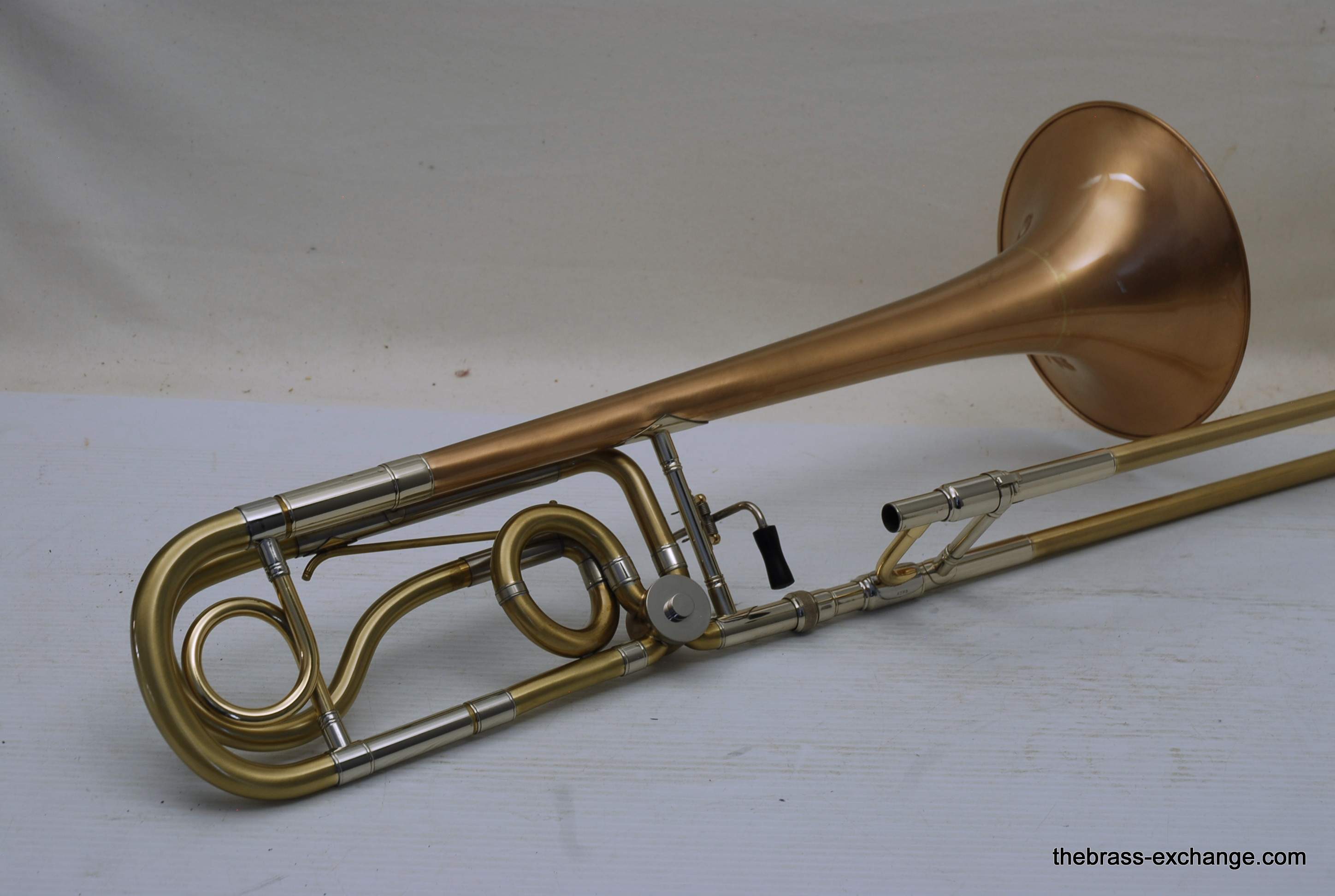 Mike Corrigan at BAC Custom Trombones has done it again with this gorgeous rebuilt 88H from the 1970’s. Custom loop wrap with additional bracing, updated mechanical valve linkage, rebuilt hand slide with Williams style curved hand grip. He didn’t leave anything on the table with this design. Has gorgeous satin finish, lacquer, with bright inner bell, is stunning. The horn plays terrific. Is weightier in feel and sound than a stock 88H. Projection is better. We know the BAC custom work is great, but also costly. This one is priced to sell. Comes with a Protec iPac case, excellent condition. In-stock for immediate delivery.