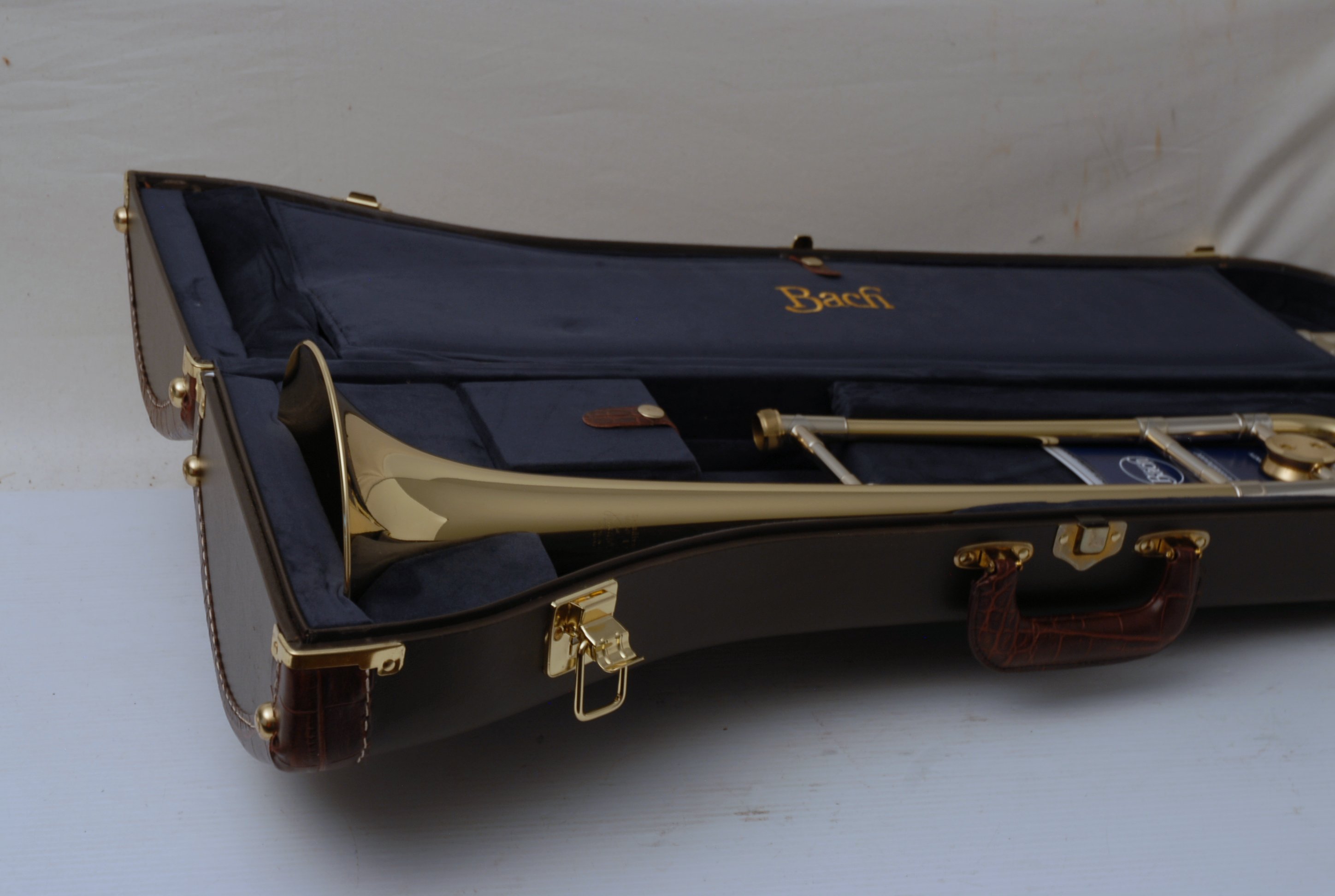 This example has received a full setup in our shop, with the handslide optimized for smooth action and tight tolerances. There are no cosmetic flaws of note, and the lacquer remains pristine. Includes a modern-style Bach case and mouthpiece.