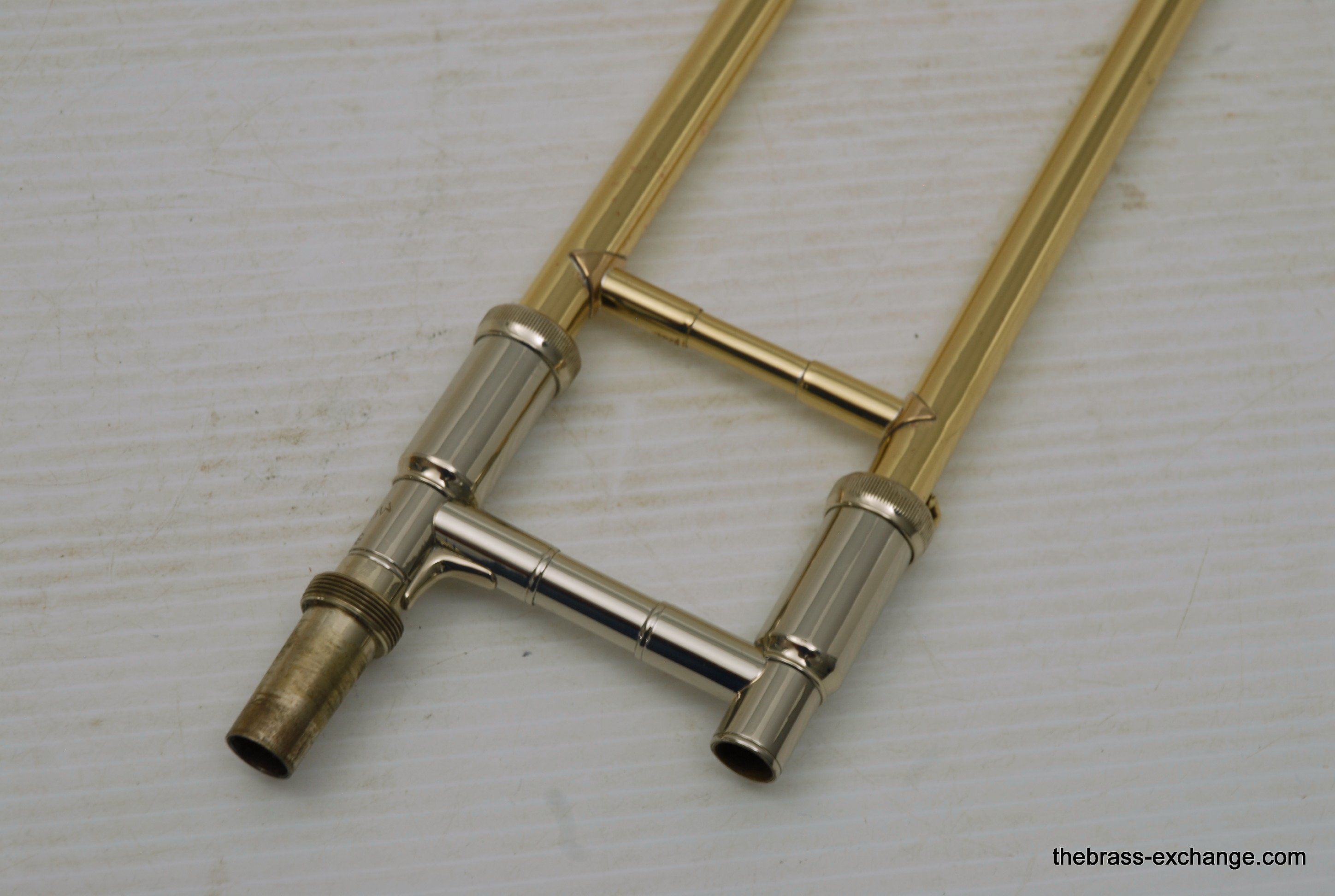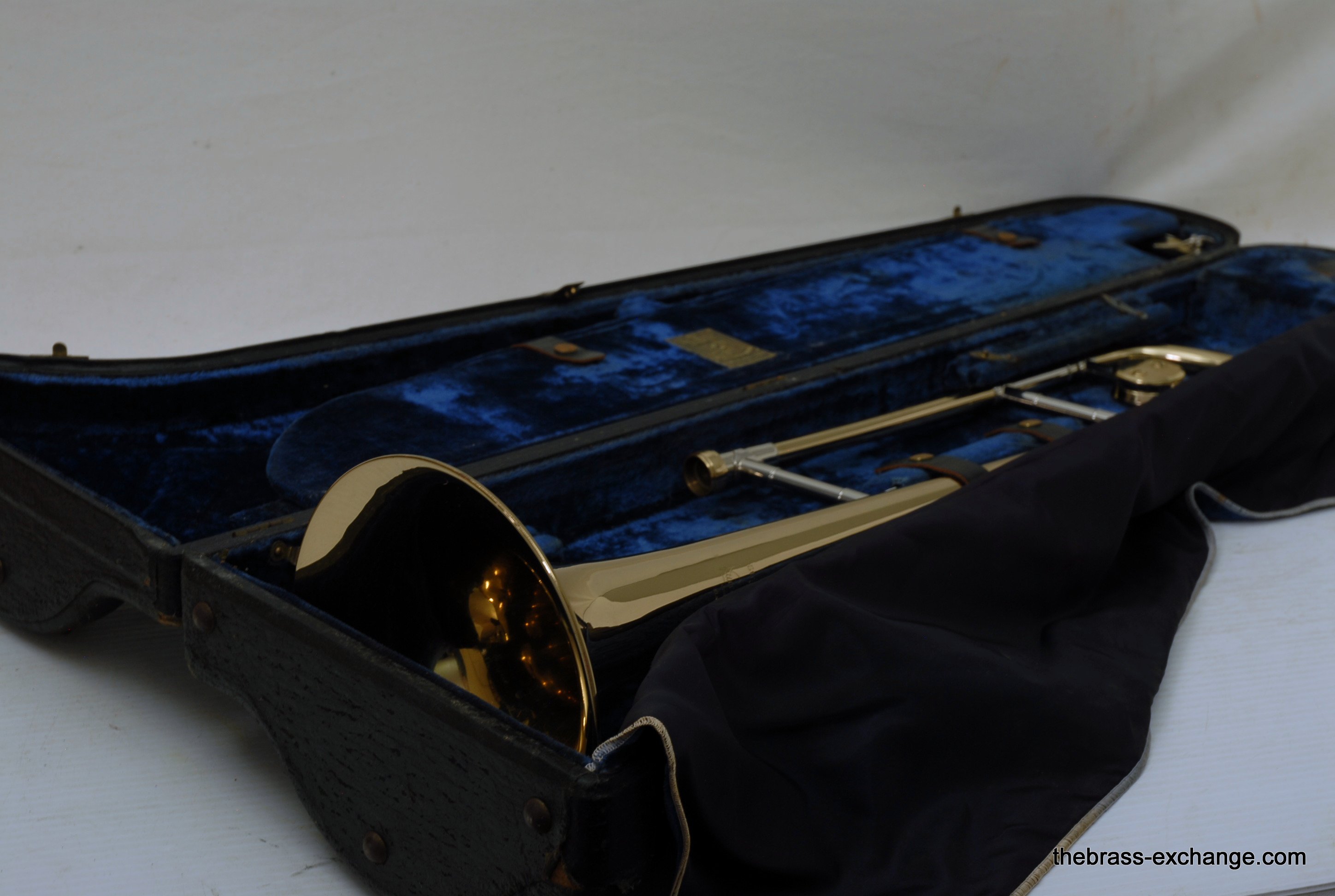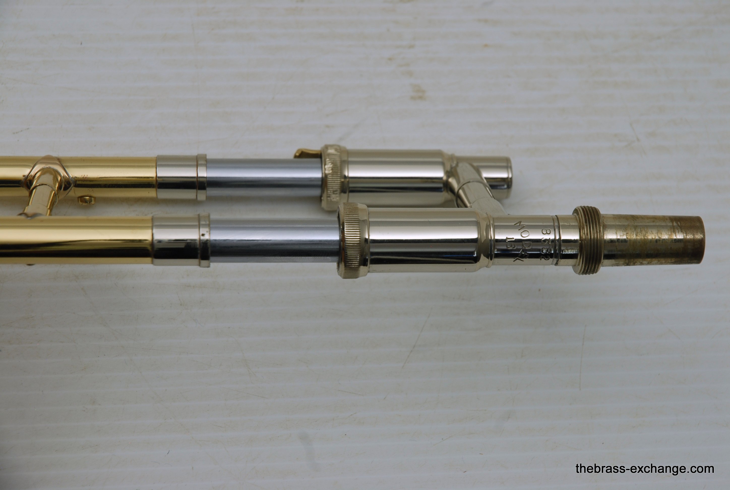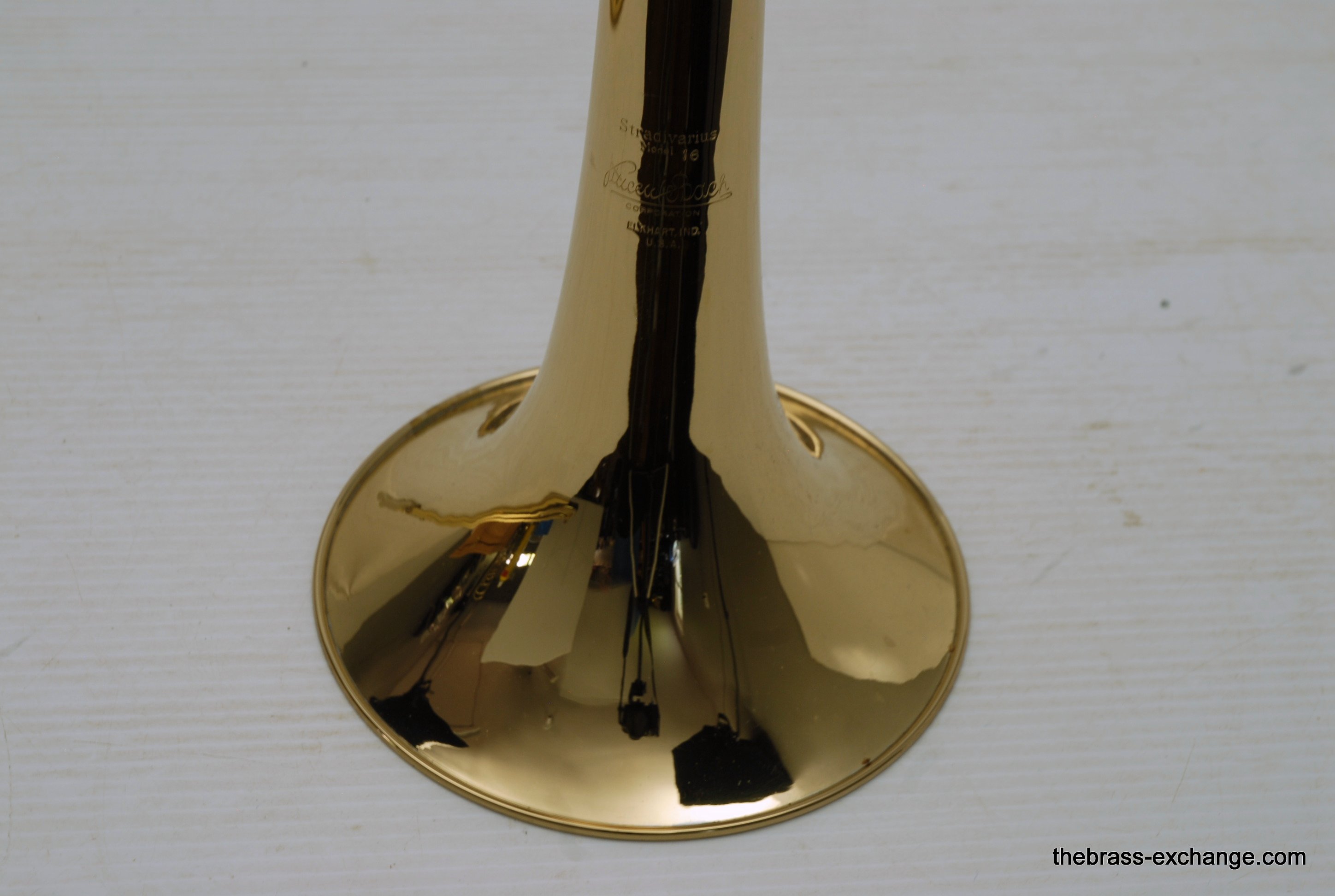Bach 16 Vintage Elkhart Corporation Era, made in 1965. S/N 8332.  After moving from Mt. Vernon NY in 1963, Bach set up the factory in Elkhart Indiana.  The first few years of production are considered by many Bach experts to be some of the best years in the history of the company.  This model 16 is from that era.  Has the dual bore slide, this one is lightweight brass, no oversleeves.  Is in excellent condition and plays fantastic.  The instrument was refinished at some point in it's history, done exceptionally well too.  Looks terrific and plays fantastic, all original parts.  There is a brass patch on the endcrook, handslide.  This horn does not have red rot or any issues.  Would be a great horn for a pro player or any advancing player look to play on something very nice. Great horn for lead/jazz/solo/studio.   Original case in very good condition. In-stock for immediate delivery.