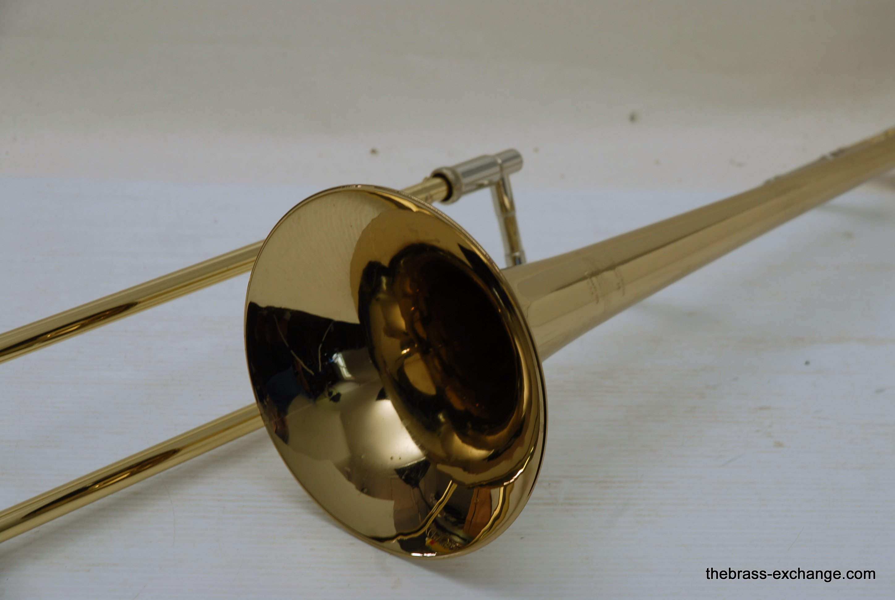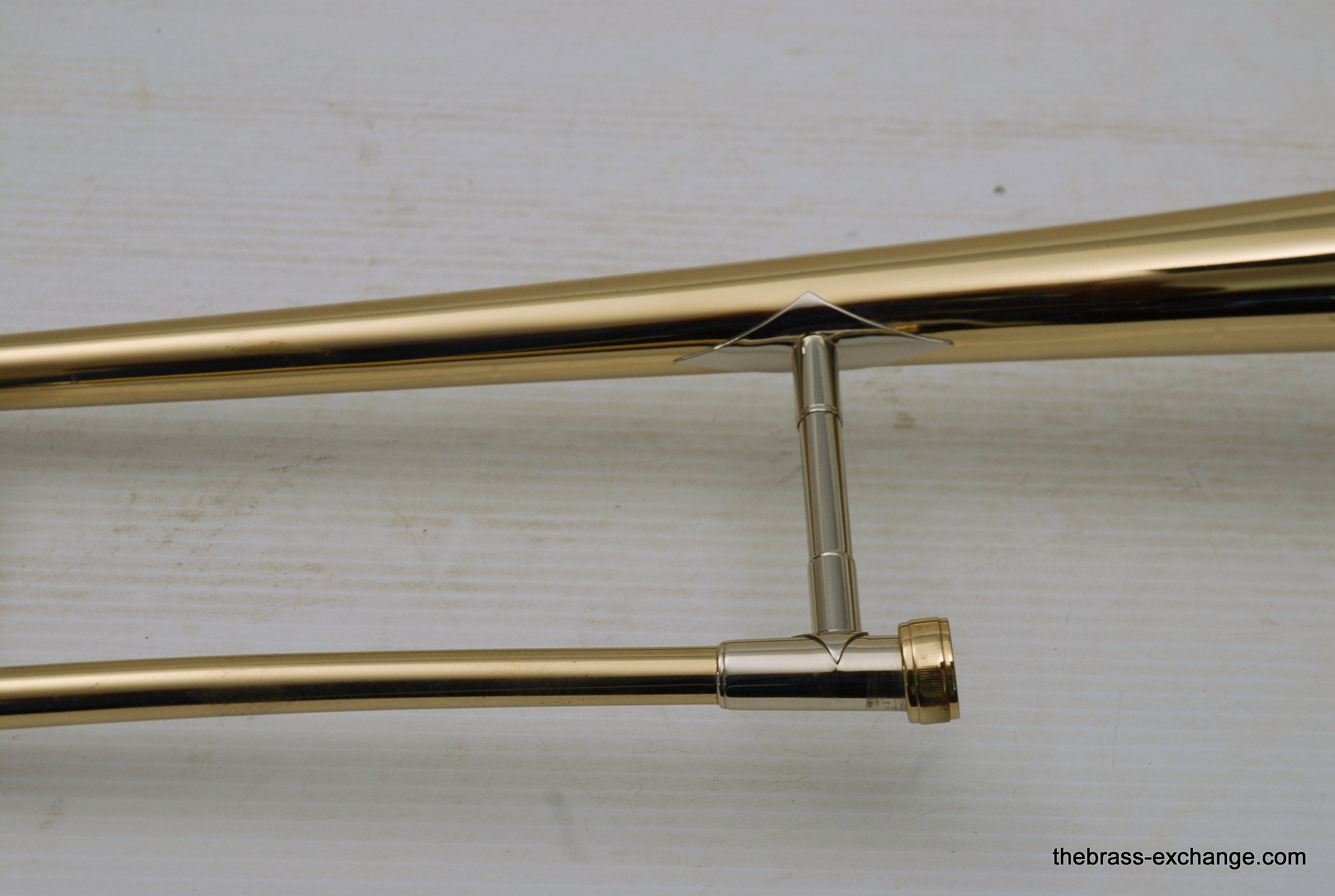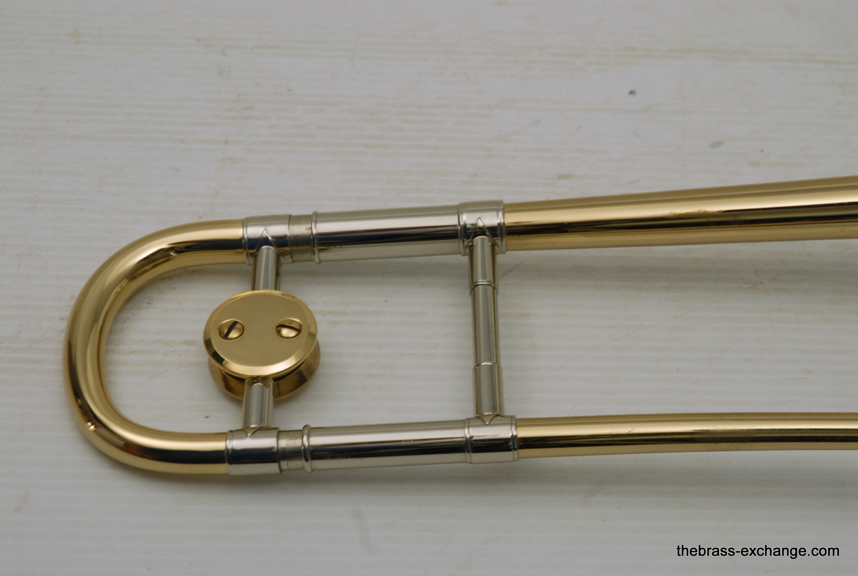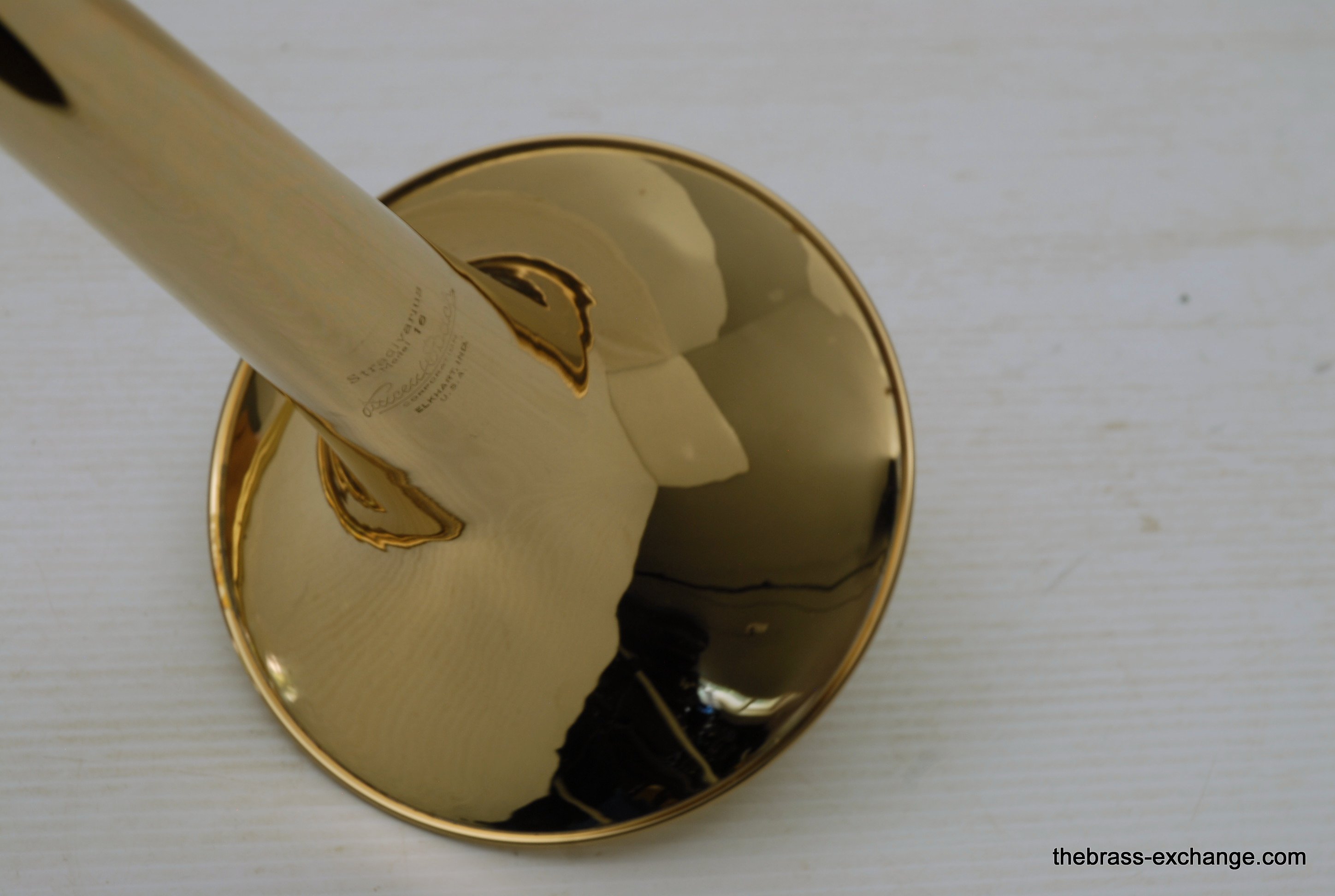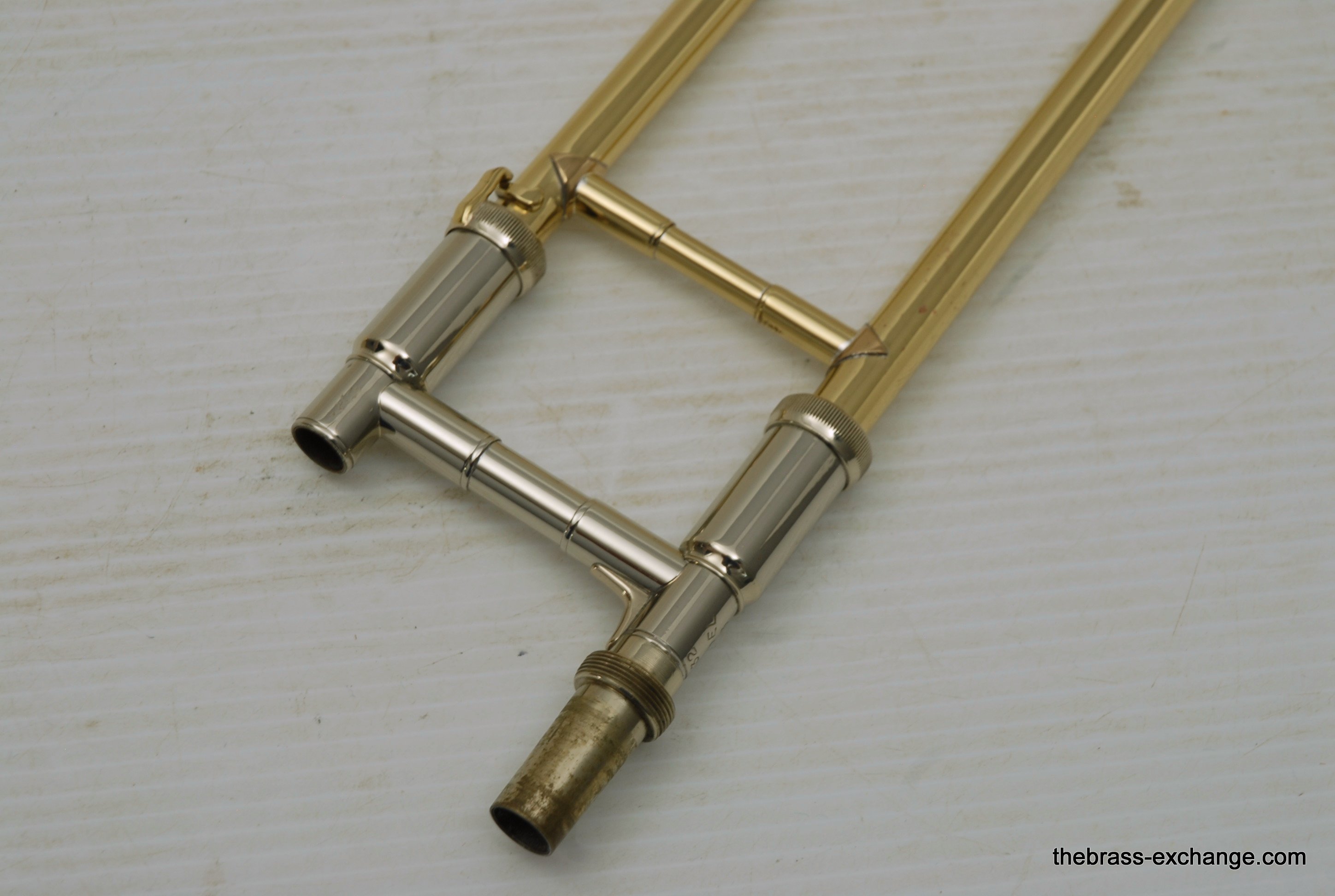 Bach 16 Vintage Elkhart Corporation Era, made in 1965. S/N 8332.  After moving from Mt. Vernon NY in 1963, Bach set up the factory in Elkhart Indiana.  The first few years of production are considered by many Bach experts to be some of the best years in the history of the company.  This model 16 is from that era.  Has the dual bore slide, this one is lightweight brass, no oversleeves.  Is in excellent condition and plays fantastic.  The instrument was refinished at some point in it's history, done exceptionally well too.  Looks terrific and plays fantastic, all original parts.  There is a brass patch on the endcrook, handslide.  This horn does not have red rot or any issues.  Would be a great horn for a pro player or any advancing player look to play on something very nice. Great horn for lead/jazz/solo/studio.   Original case in very good condition. In-stock for immediate delivery.