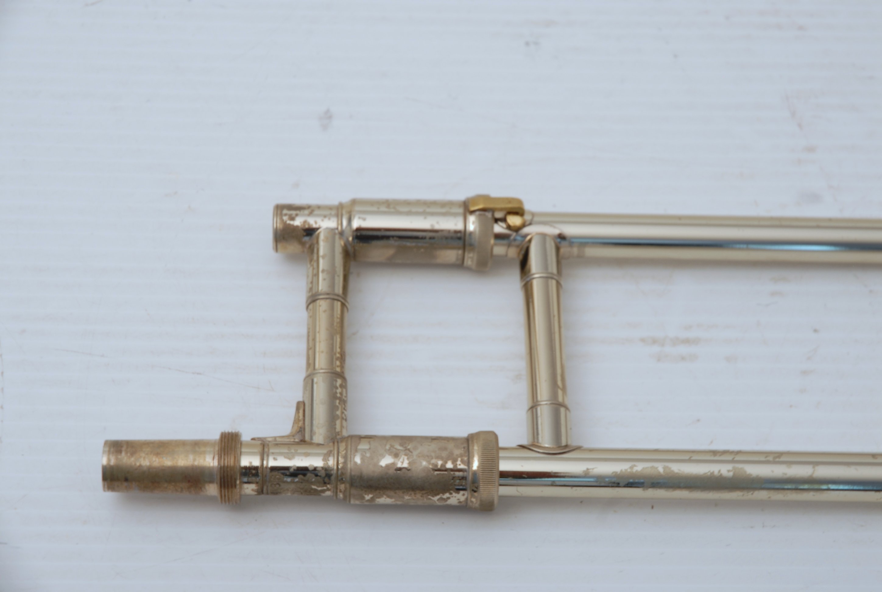 Bach 16LT.  Classic Bach 16 model with dual bore slide .495/.509 Corporation era Bach from 1975. Overall a very solid player in good conditon.  Some lacquer wear. Has had full shop service, chemical bath, slide set-up. No dents or dings on this trombone.  Most of the Bachs from this era either have considerable lacquer wear or no lacquer at all because the lacquer was thin and stripped easily in hot water.  This horn plays very nicely and does not require any service to improve playability.  Would make an excellent lead or jazz horn for any player.    A new Bach 16LT sells new today for over $2800.  New Bach's today aren't even close in sound or feel compared to this horn from the 70's.  Case Not Included. Save Now Play Great!