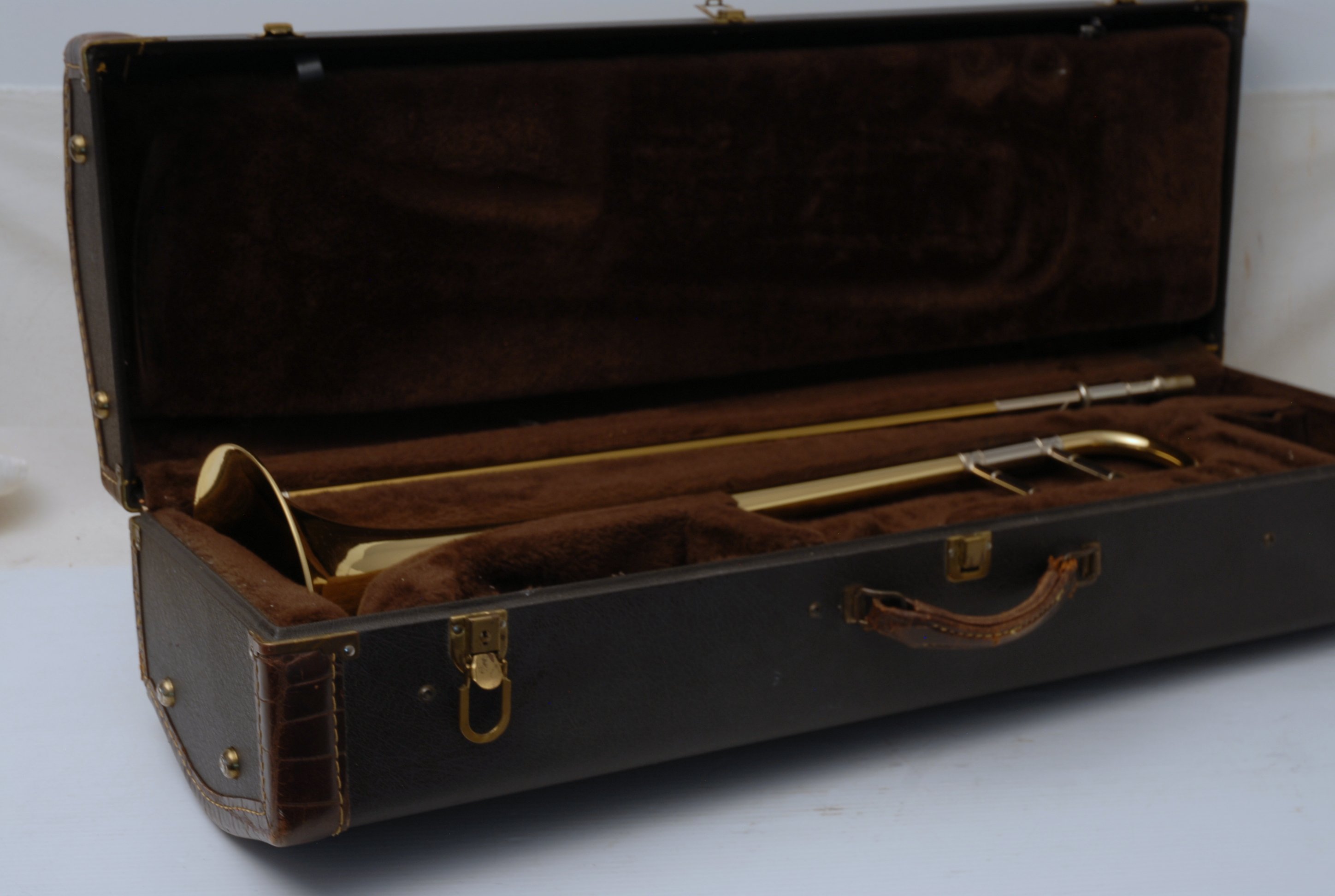 Bach 16 Small bore tenor, Vintage 1981.  Gorgeous player, in very mint condition.  Has 16M bell with standard weight dual bore 16 handslide and original case.  This is a pro-player jazz horn.  Bach in the 70's & 80's nearly everyone loved playing on model 16, popularized by Bill Watrous.  This horn is from that era and will not dissapoint.  New Bach 16's today sell for over $2800, more than twice the price as this one, and the newer don't play nearly as well as these.  Save Now Play Great!