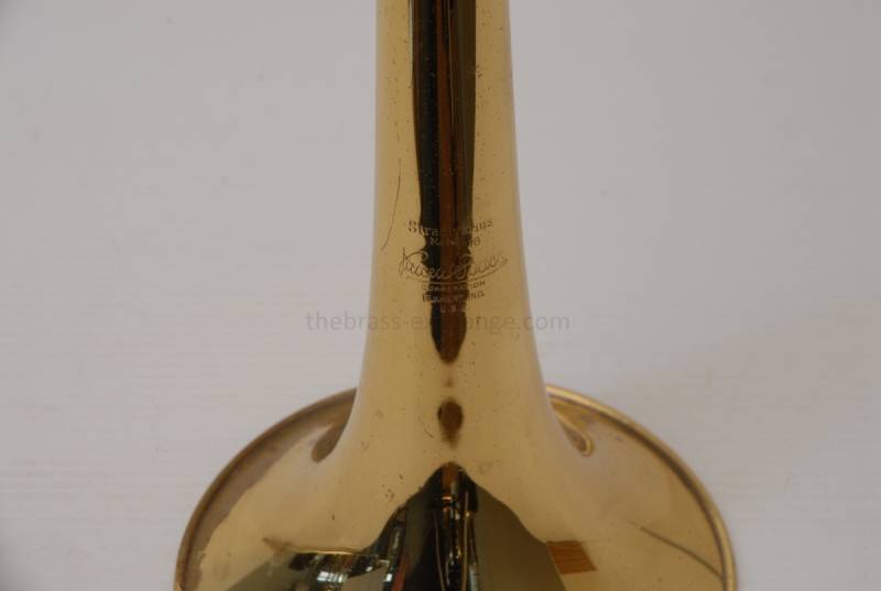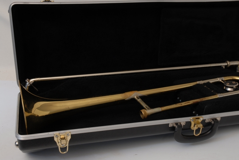 Bach 16LT. Classic Bach 16 model with dual bore slide .495/.509 Corporation era Bach from 1975. Overall a very solid player in good conditon. Some lacquer wear. Most of the Bachs from this era either have considerable lacquer wear or no lacquer at all because the lacquer was thin and stripped easily in hot water. This horn plays very nicely and does not require any service to improve playability. Would make an excellent lead or jazz horn for any player. Non original case included. Mouthpiece not included. A new Bach 16LT sells new today for over $2800. New Bach's today aren't even close in sound or feel compared to this horn from the 70's. Save Now Play Great!