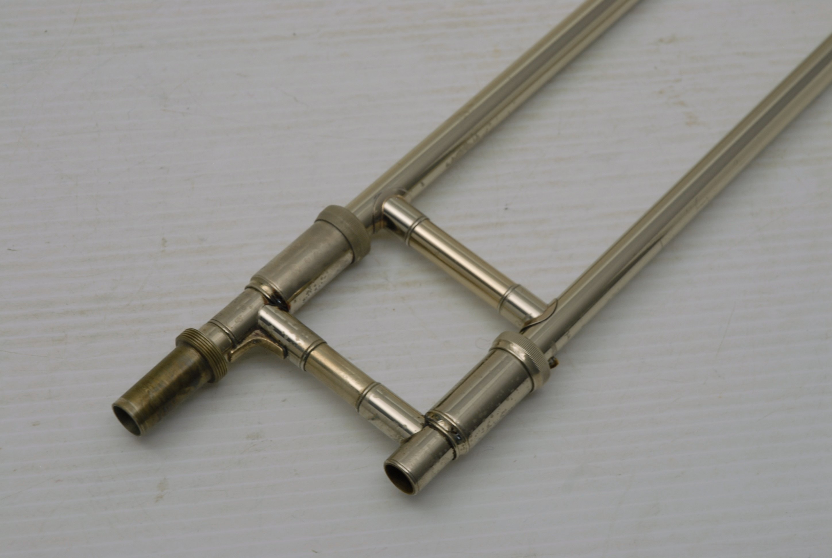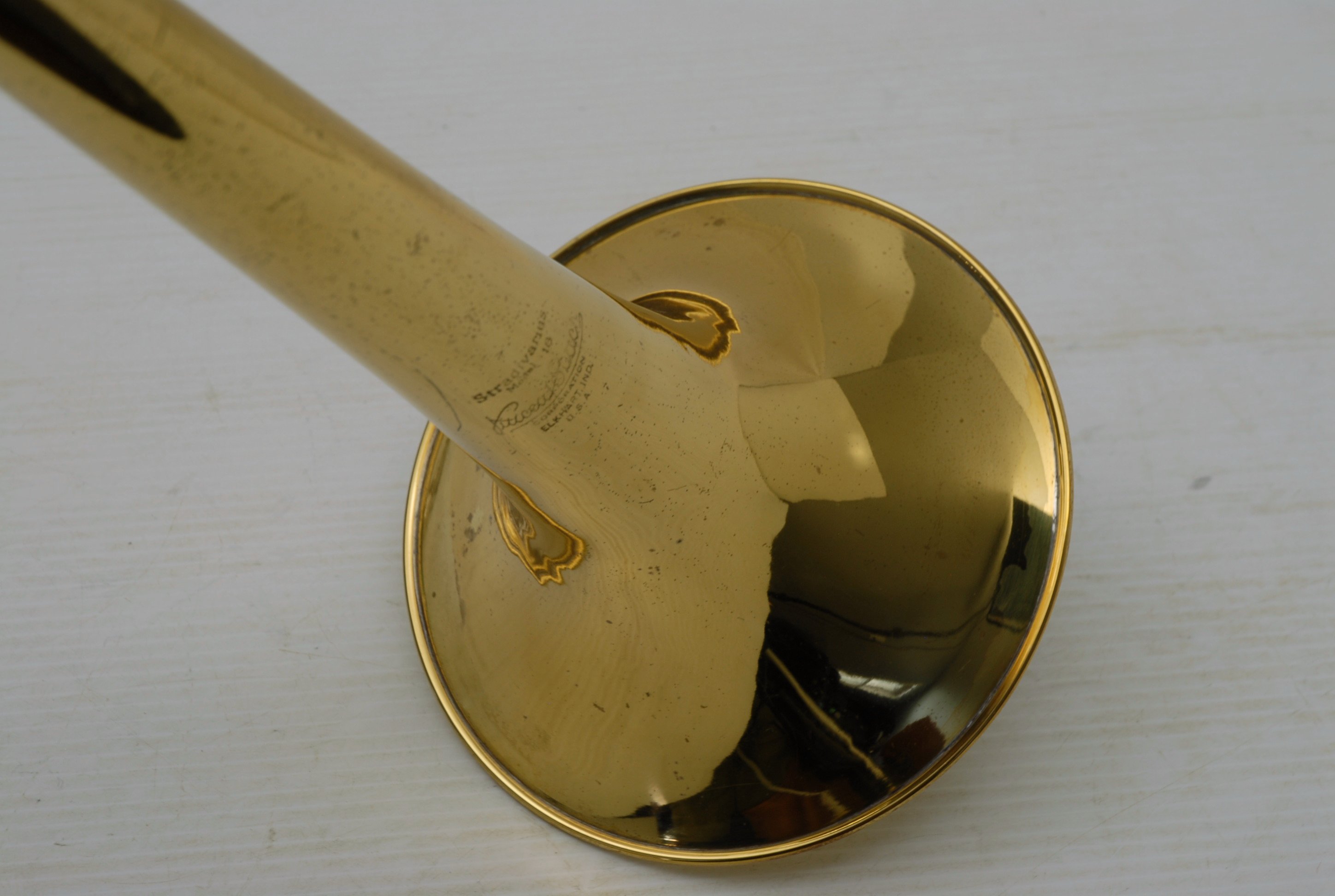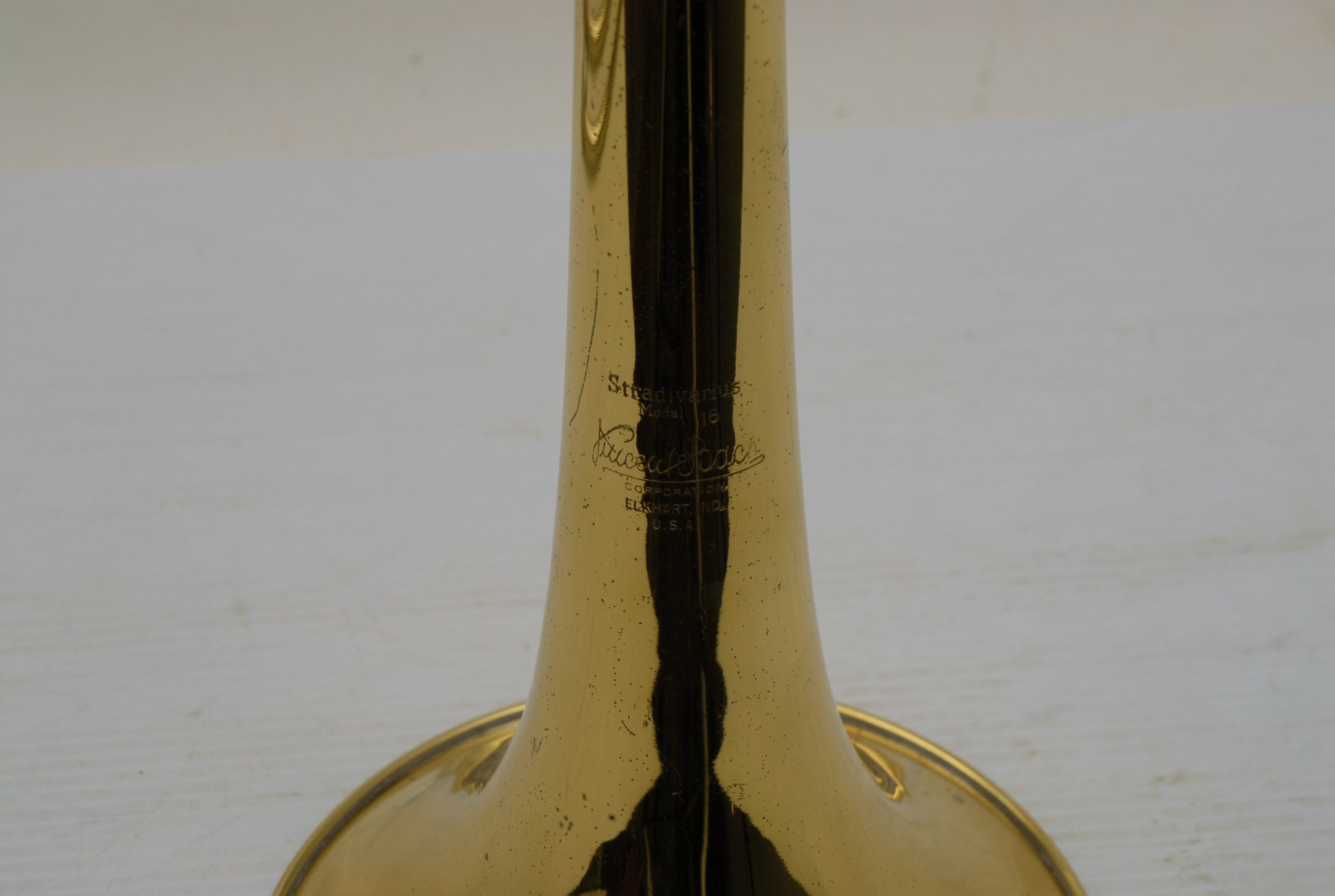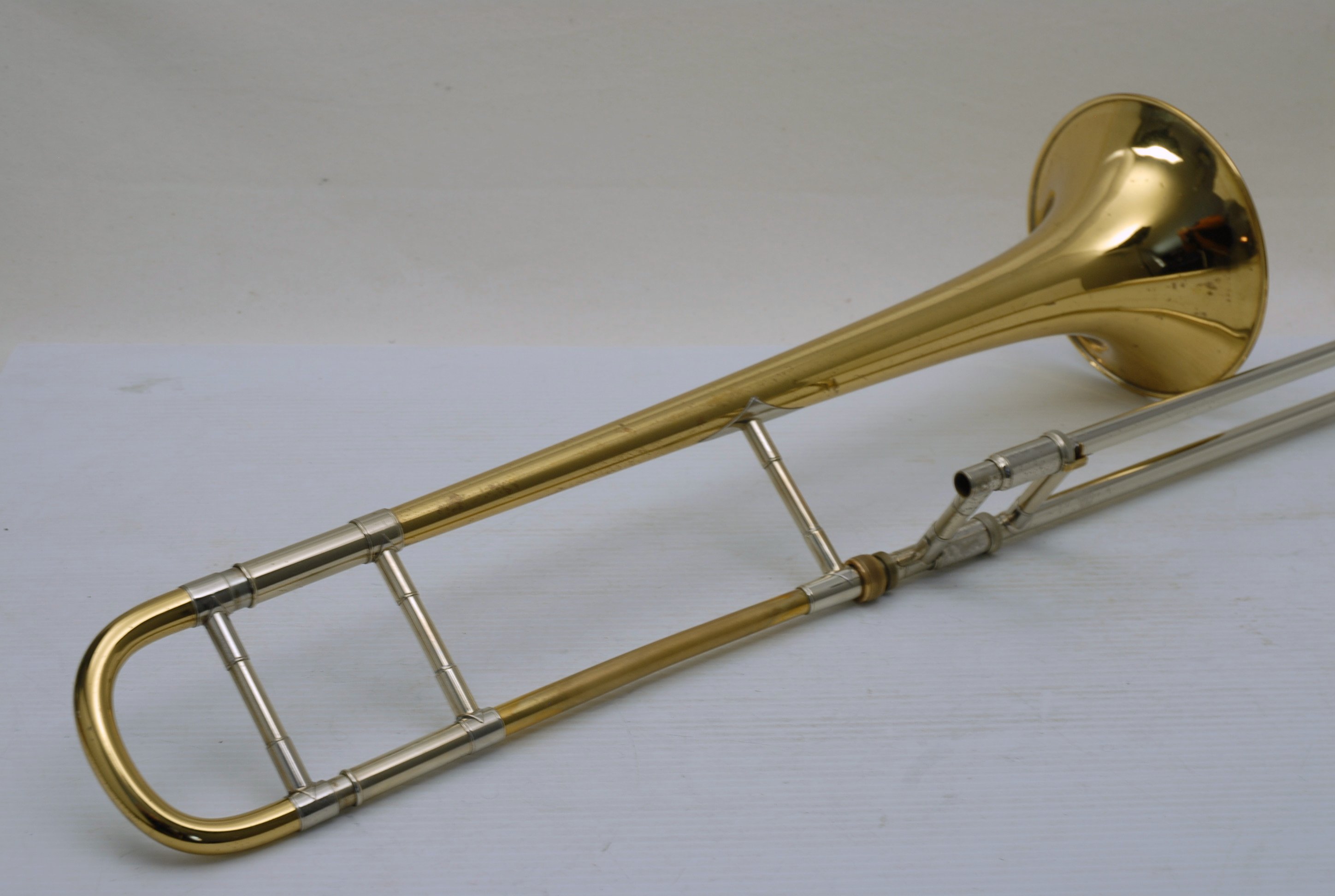 Bach 16LT Single Owner, Retired Pro Player Small bore tenor.  This 16LT is the dual bore model .495/.509 Lightweight nickel silver handslide.  Has one piece 7.5" yellow brass bell.  Is a fantastic player.  Super easy slide.  Overall plays with less resistance than many other 16's that have been here.  It's the type of horn that you play on for a few minutes and just don't want to put it down.  That's a sign of a great horn.  Has not had an serious damage or repairs in it's life.  Original lacquer & parts, although some of the bell rim lacquer has been touched up, looks like previous acid blead partial rim.  Is still has a gorgeous look.  But, the best part is that it plays fantastic.  No service needed to improve playability.  Original case.  Mouthpiece not included.  In-stock for immediate delivery.