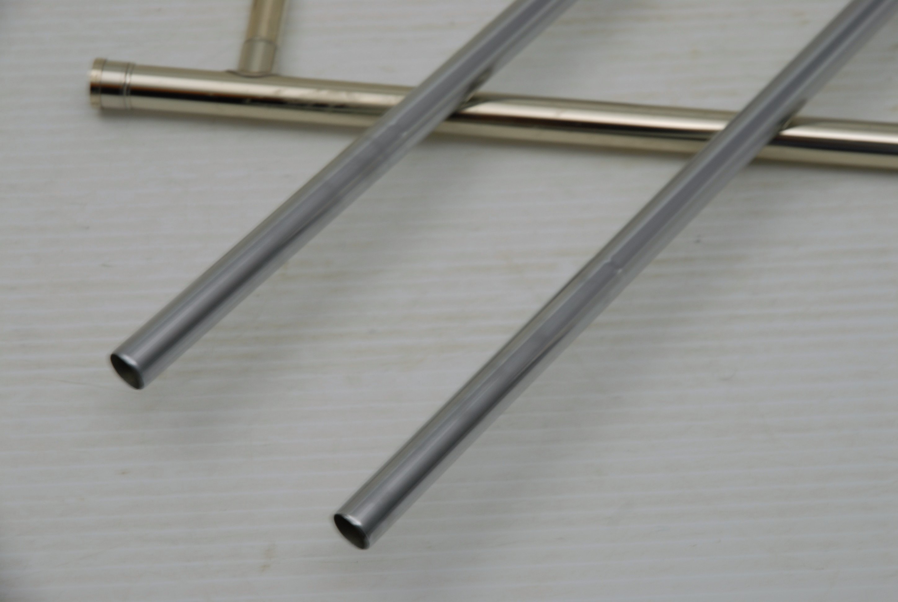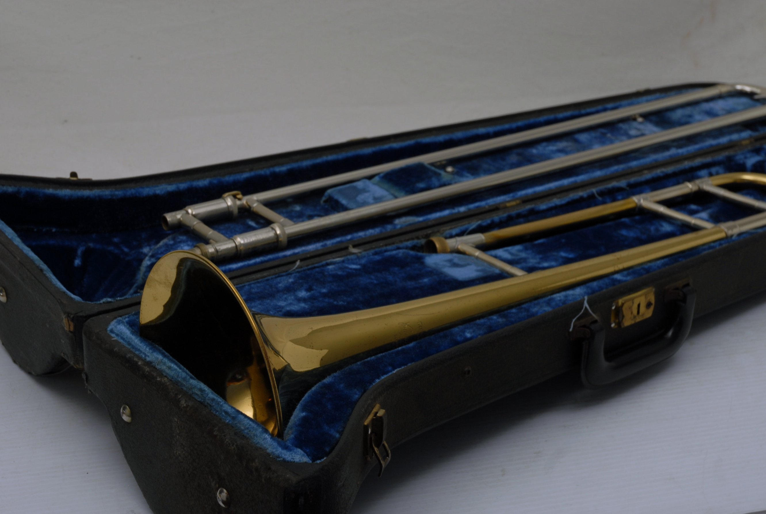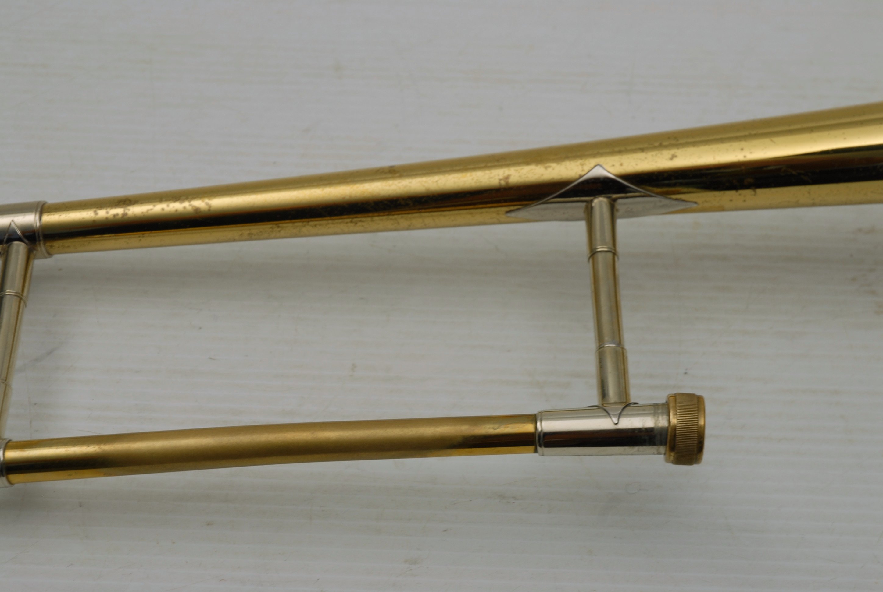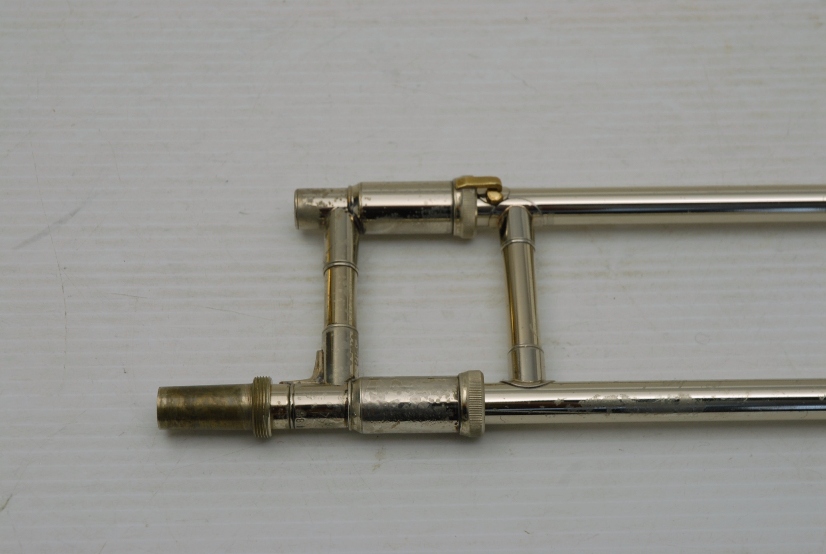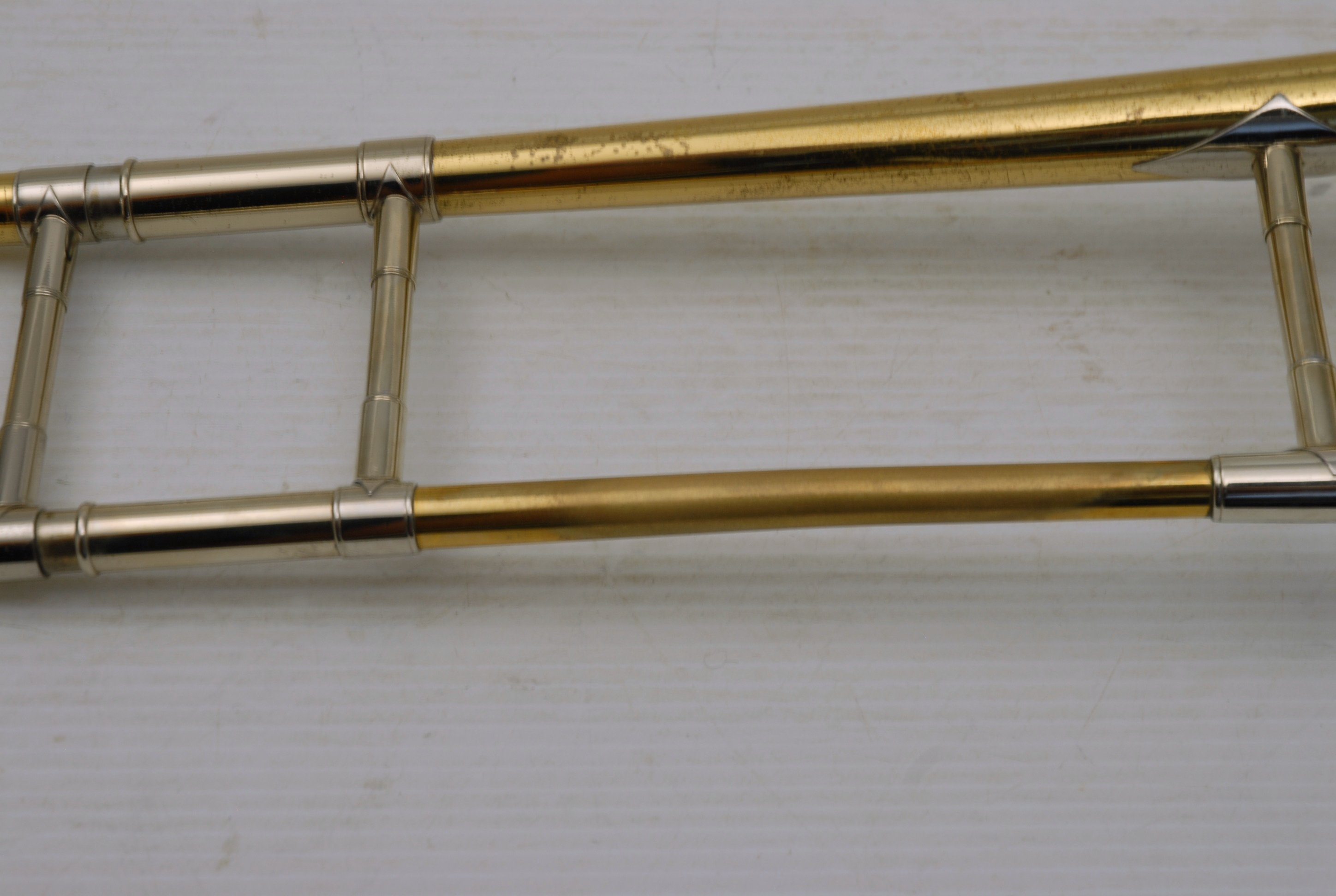 Bach 16LT Single Owner, Retired Pro Player Small bore tenor.  This 16LT is the dual bore model .495/.509 Lightweight nickel silver handslide.  Has one piece 7.5" yellow brass bell.  Is a fantastic player.  Super easy slide.  Overall plays with less resistance than many other 16's that have been here.  It's the type of horn that you play on for a few minutes and just don't want to put it down.  That's a sign of a great horn.  Has not had an serious damage or repairs in it's life.  Original lacquer & parts, although some of the bell rim lacquer has been touched up, looks like previous acid blead partial rim.  Is still has a gorgeous look.  But, the best part is that it plays fantastic.  No service needed to improve playability.  Original case.  Mouthpiece not included.  In-stock for immediate delivery.