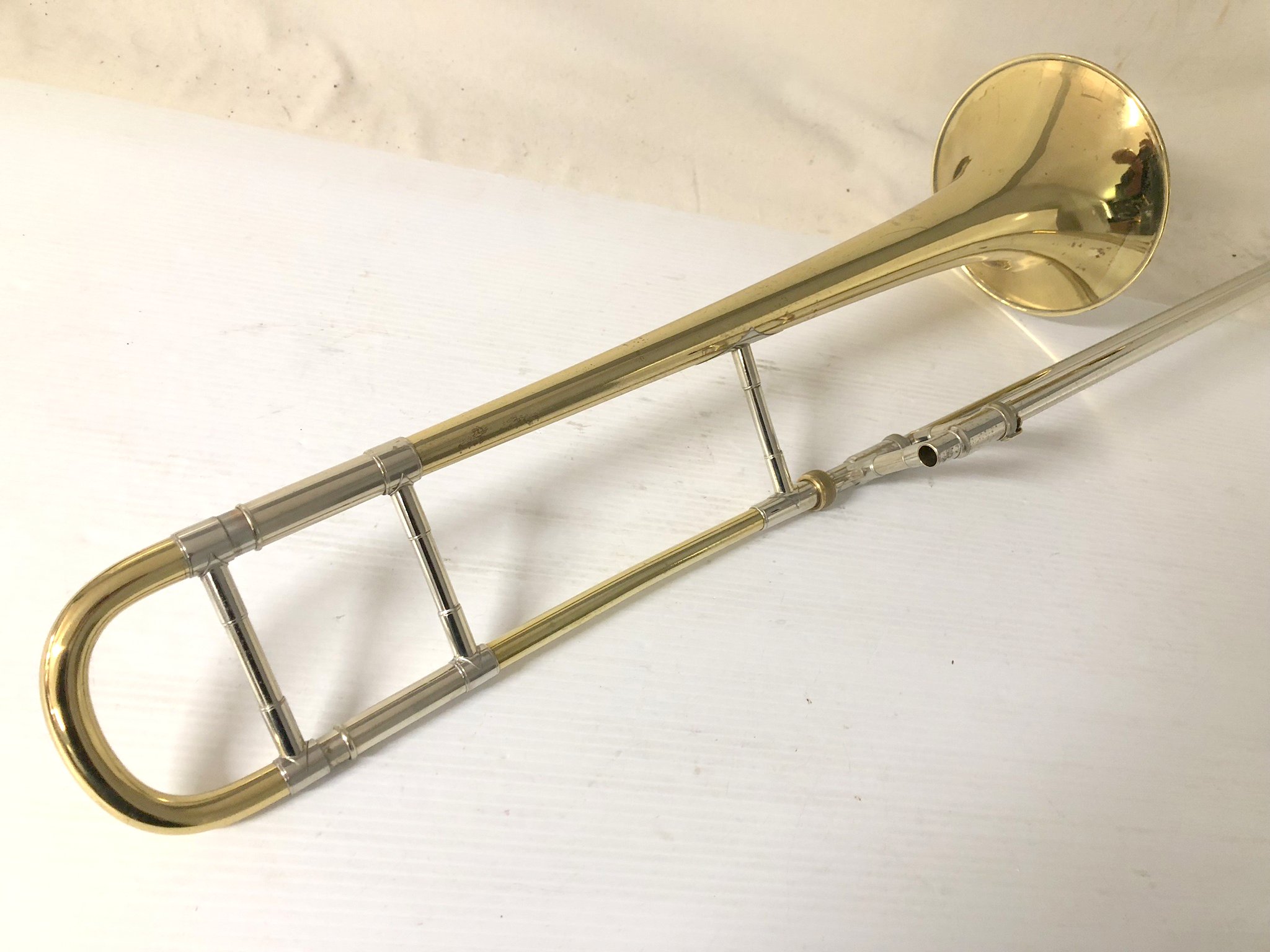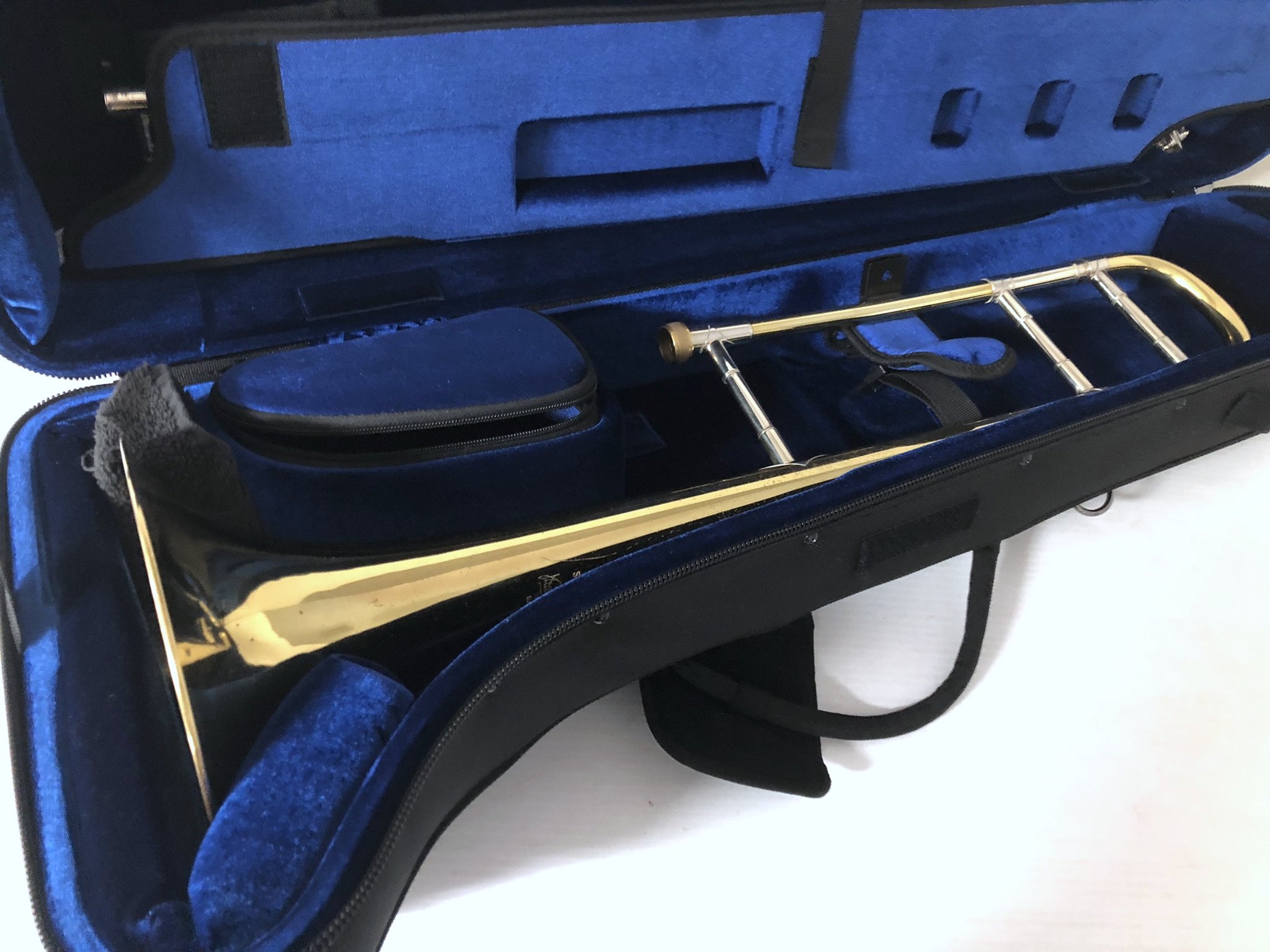 This instrument was professionally owned and played, and both the bell and slide have been professionally set up for optimal response. The slide, in particular, is exceptional—fast, quiet, and clean. Included is a new Protec ProPac case and a Bach 6 mouthpiece.