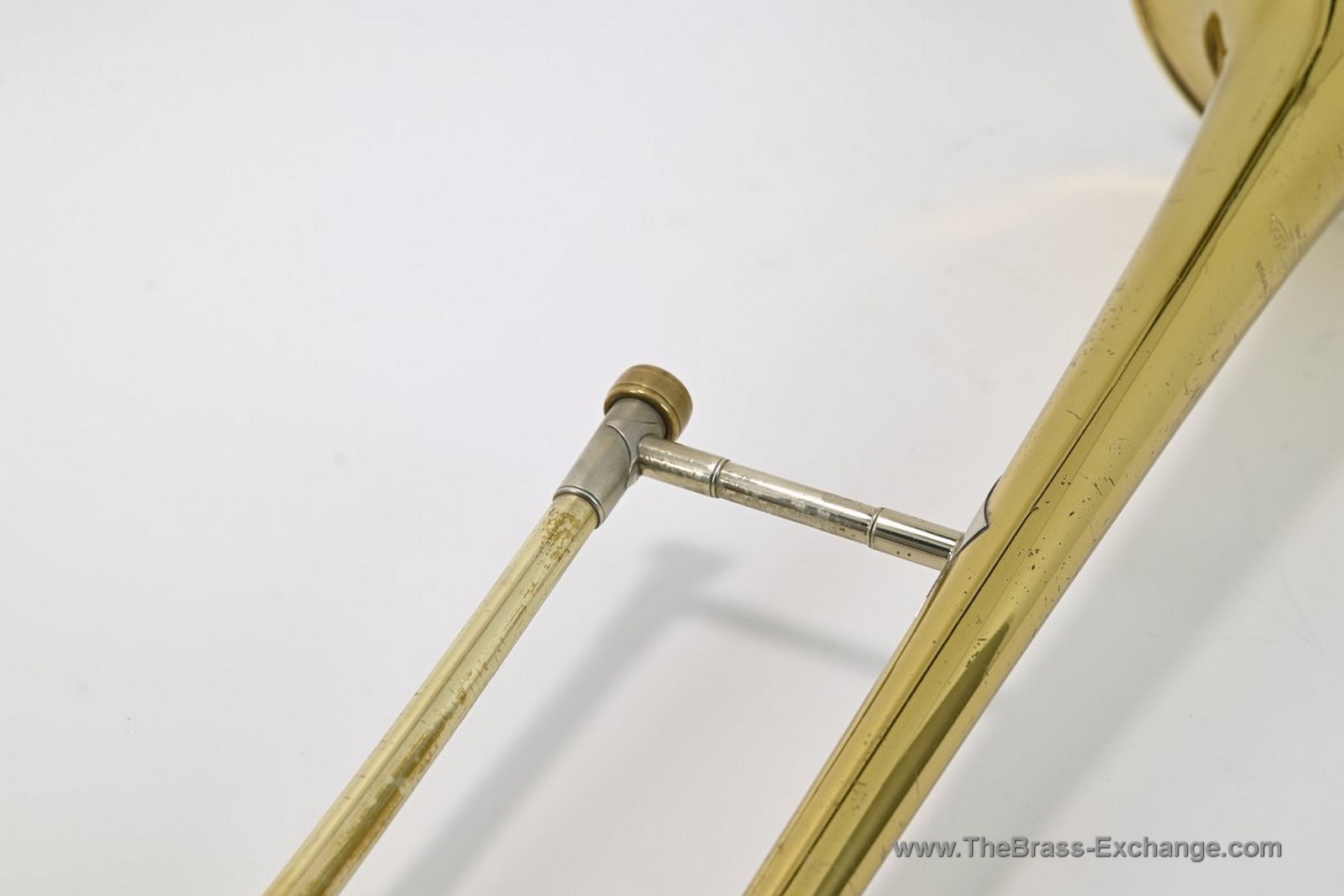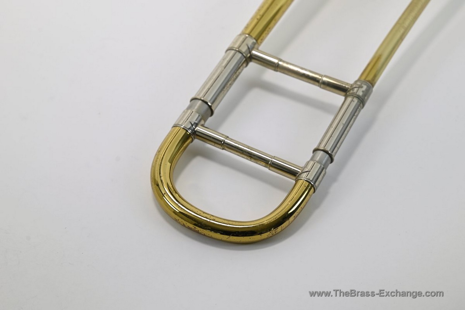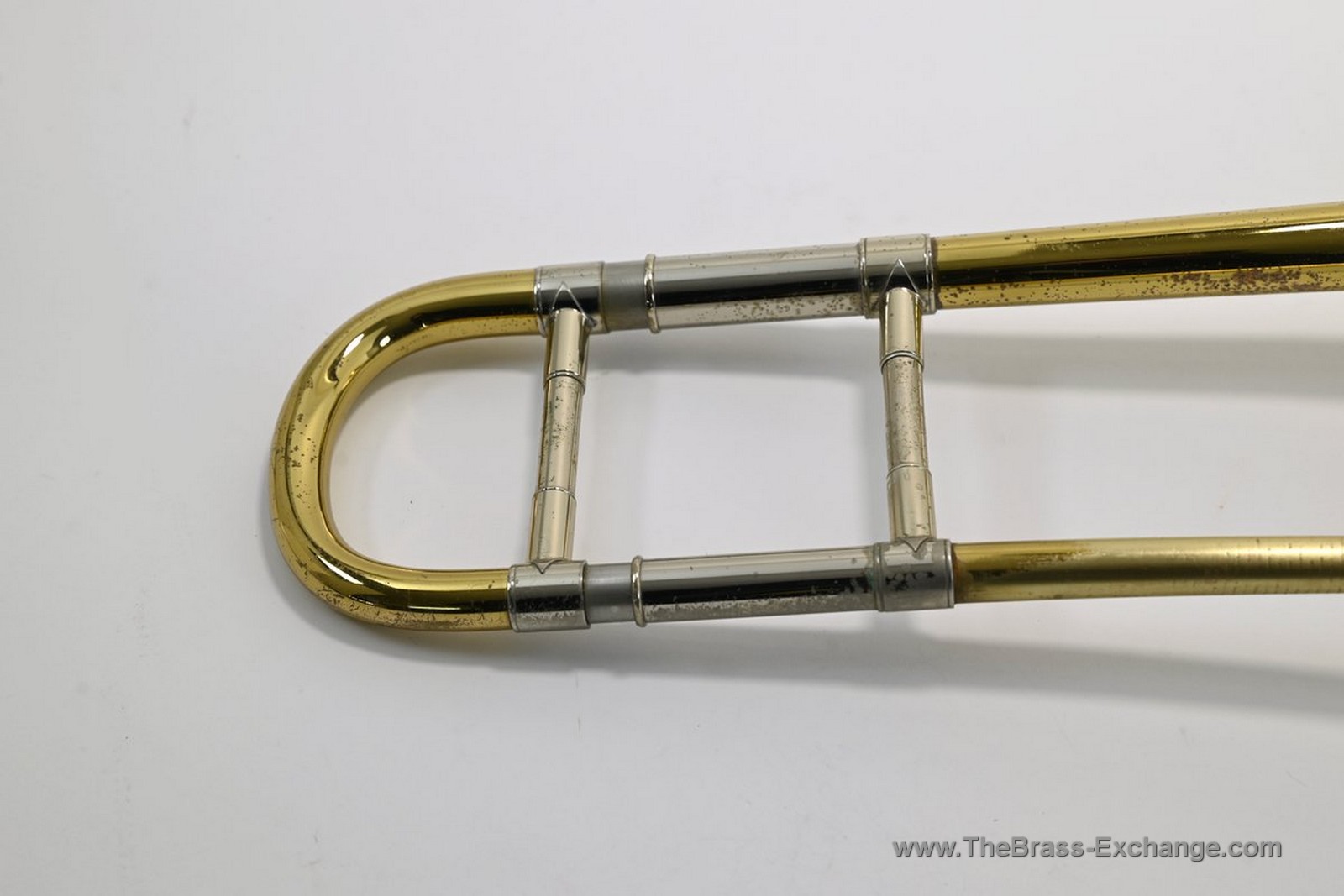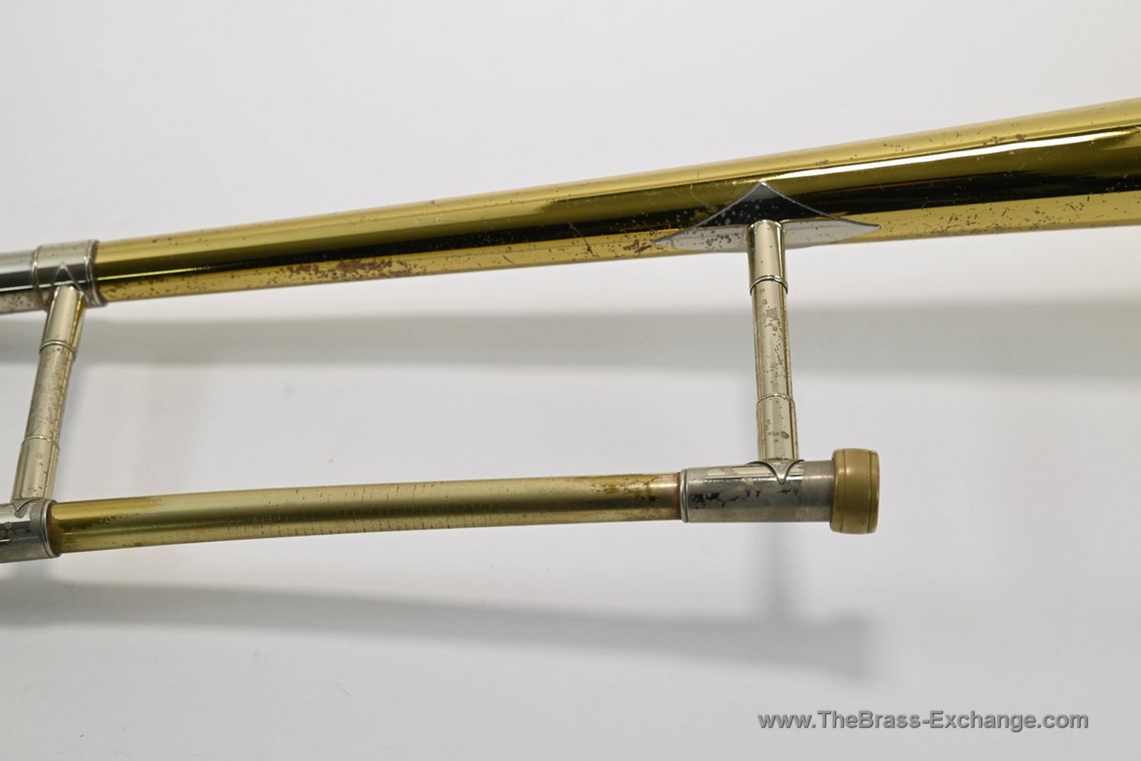The lower inner slide tube shows visible plating wear. With proper lubrication the slide remains very playable and smooth in normal use, but players who require a near-perfect slide may wish to consider that detail. Many excellent vintage horns—including some personal favorites that have passed through the shop—show similar wear yet continue to perform reliably for years.