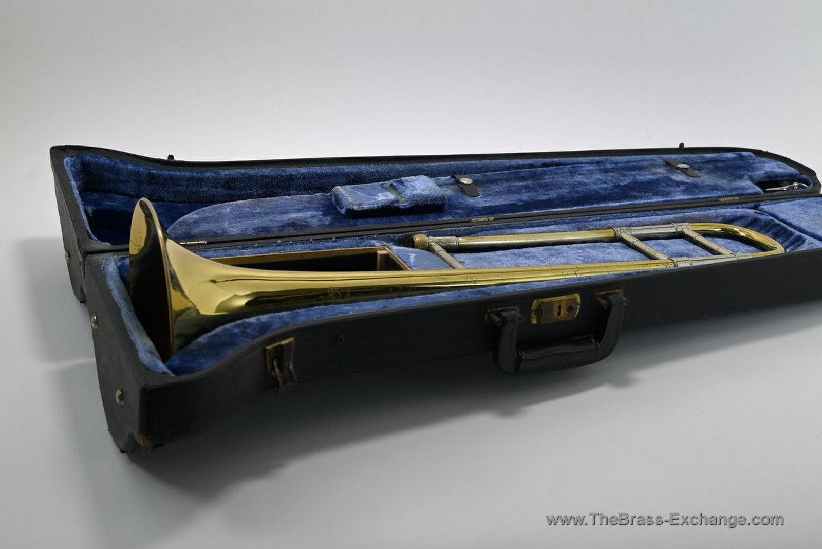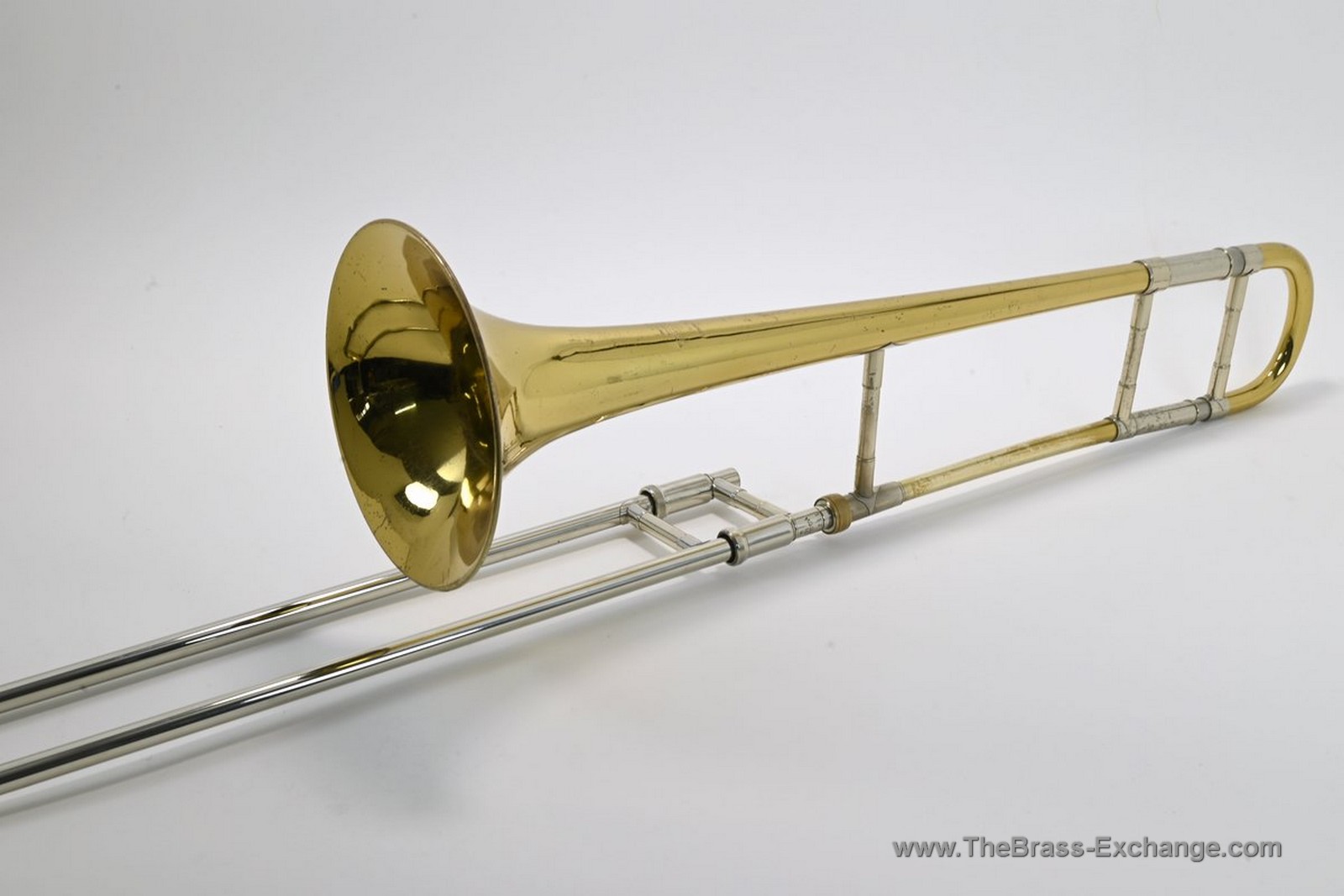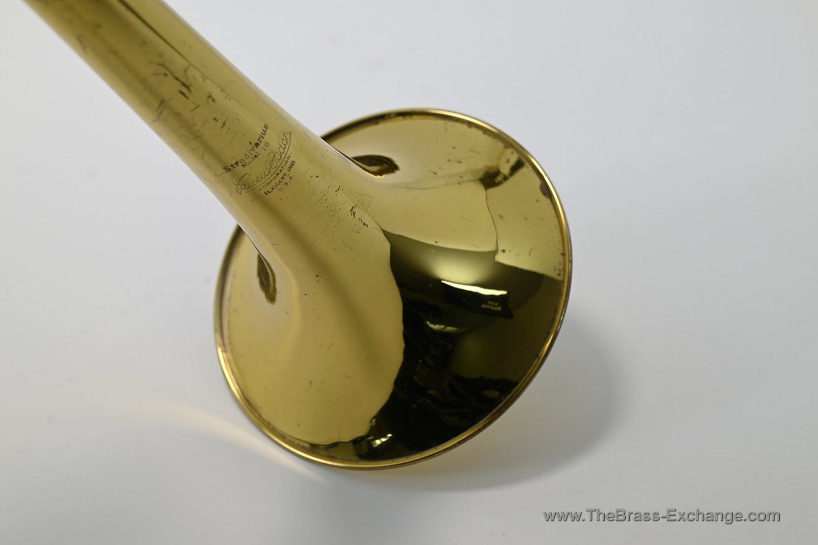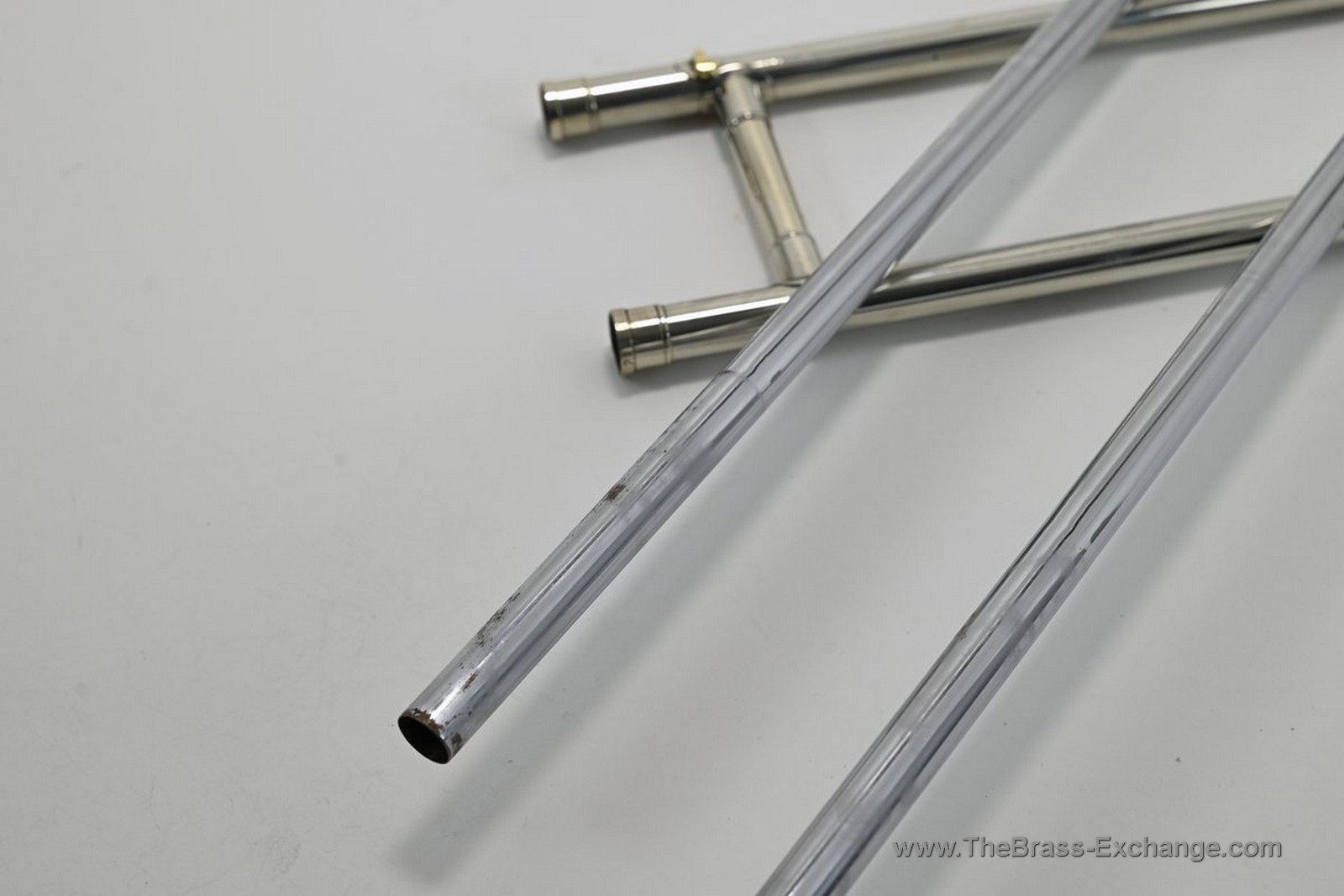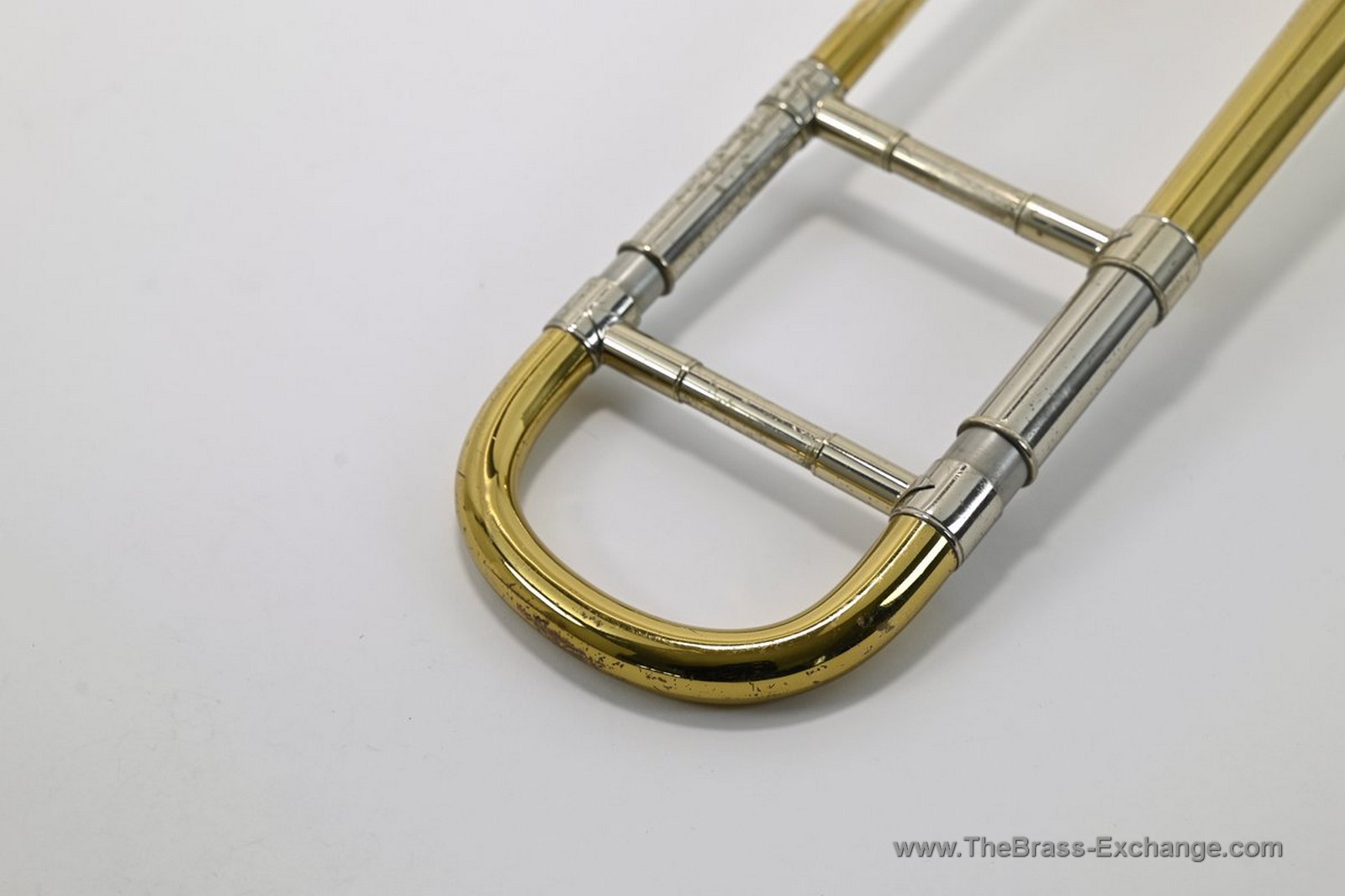 The lower inner slide tube shows visible plating wear. With proper lubrication the slide remains very playable and smooth in normal use, but players who require a near-perfect slide may wish to consider that detail. Many excellent vintage horns—including some personal favorites that have passed through the shop—show similar wear yet continue to perform reliably for years.