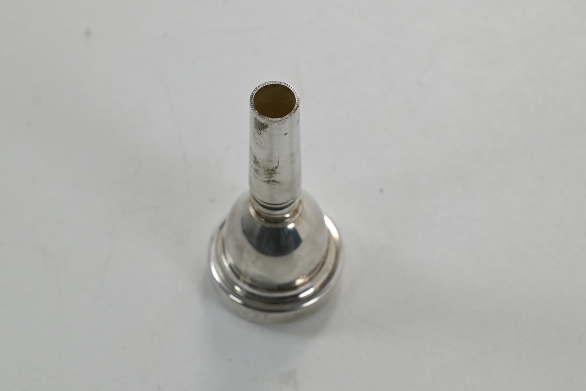 This Bach 2G bass trombone mouthpiece is lightly used and in perfect condition. Considered one of the smaller bass trombone mouthpieces, it is an excellent choice for tenor trombonists doubling on bass or as a transitional size between tenor and full bass setups. Many instructors also recommend the 2G as a practice aid for symphonic tenor players, since it encourages more air flow and strengthens low-register playing.