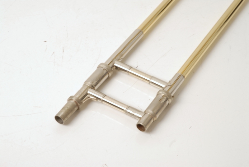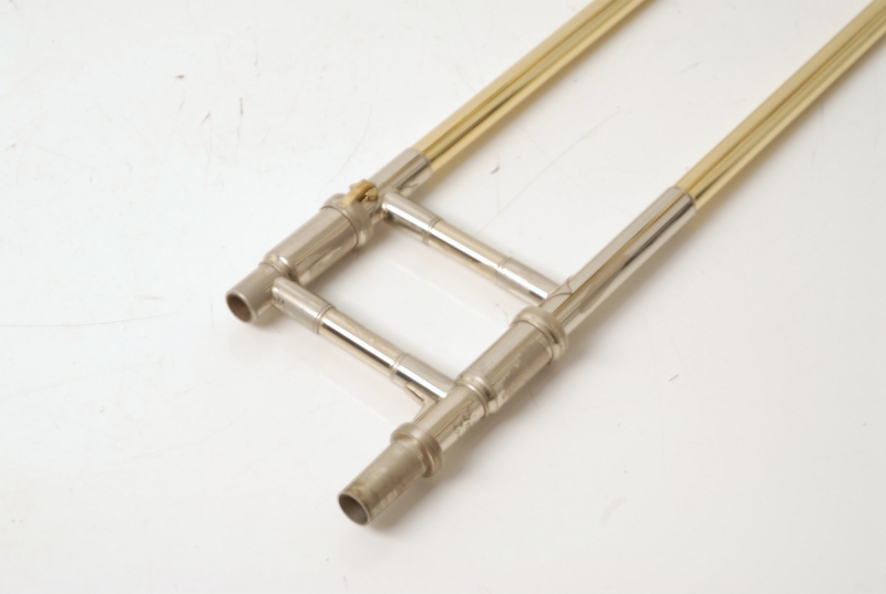 This example, built in the 1990s, features its original 8-inch yellow brass bell and a .525 medium-bore handslide. It retains all original parts and lacquer, with no signs of major damage or prior repairs. Typical of working instruments from this era, there is light lacquer wear and minor acid bleed around the bell rim — purely cosmetic and consistent with genuine stage use.