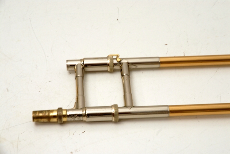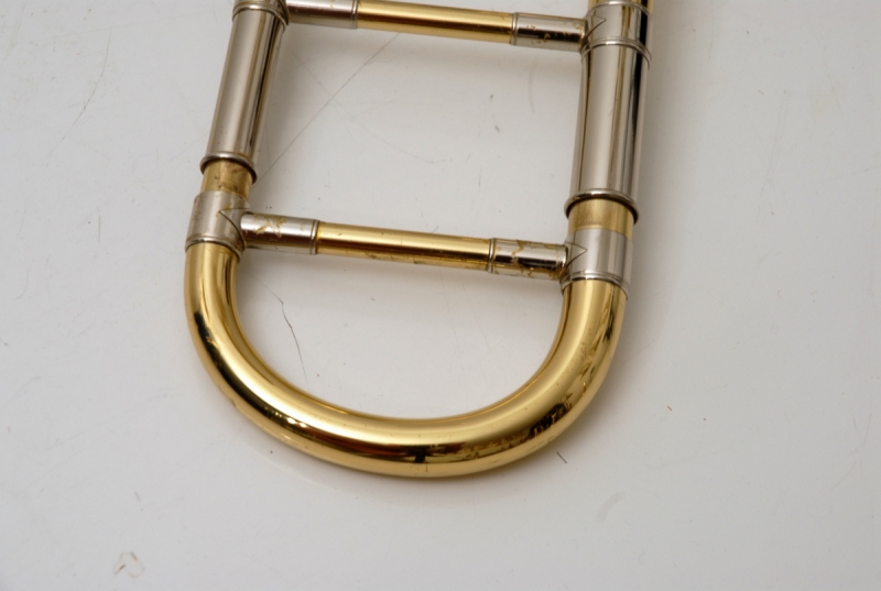 The .525 bore handslide is entirely original, including the leadpipe and end crook. The inner tubes are smooth and without corrosion, while the water key assembly was professionally reattached and relacquered during shop service. The slide action is excellent, requiring no further work to reach peak playability.
