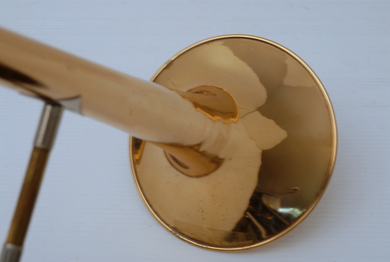 This Bach 36 straight tenor trombone was made during the legendary Mt. Vernon, New York era, dating to approximately 1960. It features the classic 8" bell and a standard-weight .525 bore slide—hallmarks of the original 36 design. While the bell is not stamped with a "G" for gold brass, the alloy exhibits a warmer tone than typical yellow brass, suggesting a higher copper content. The sound is velvety, smooth, and rich—ideal for nuanced playing in both solo and ensemble settings.