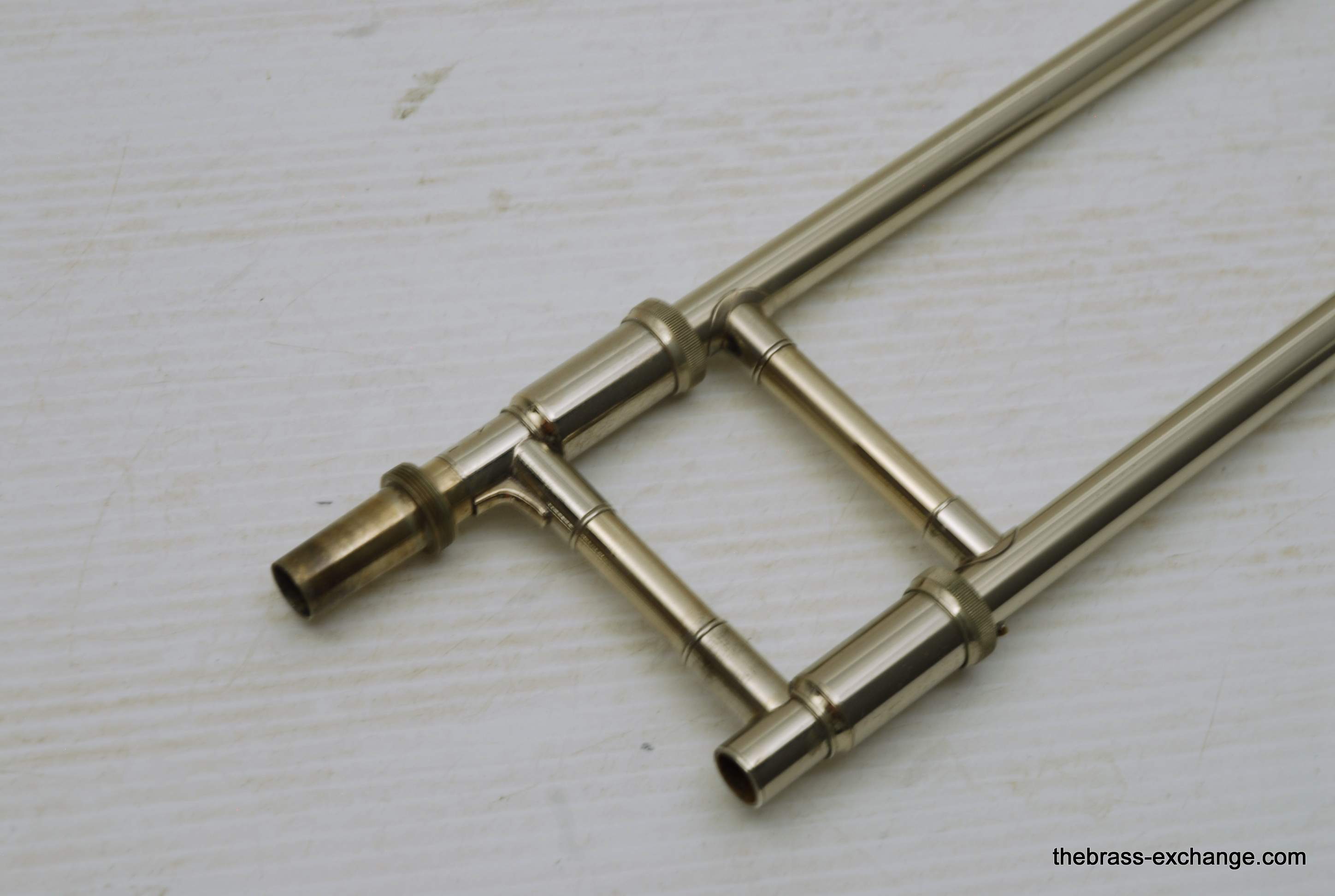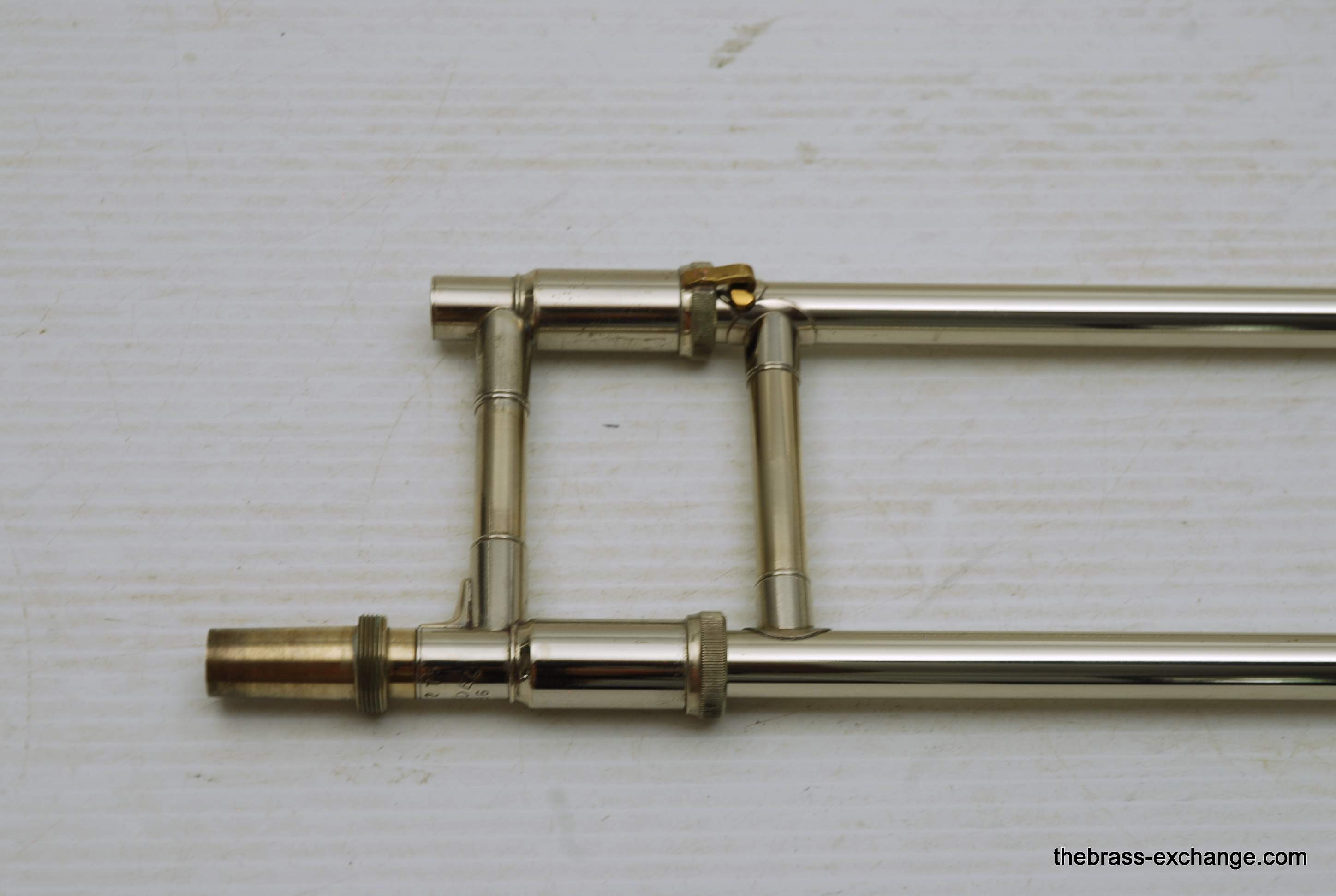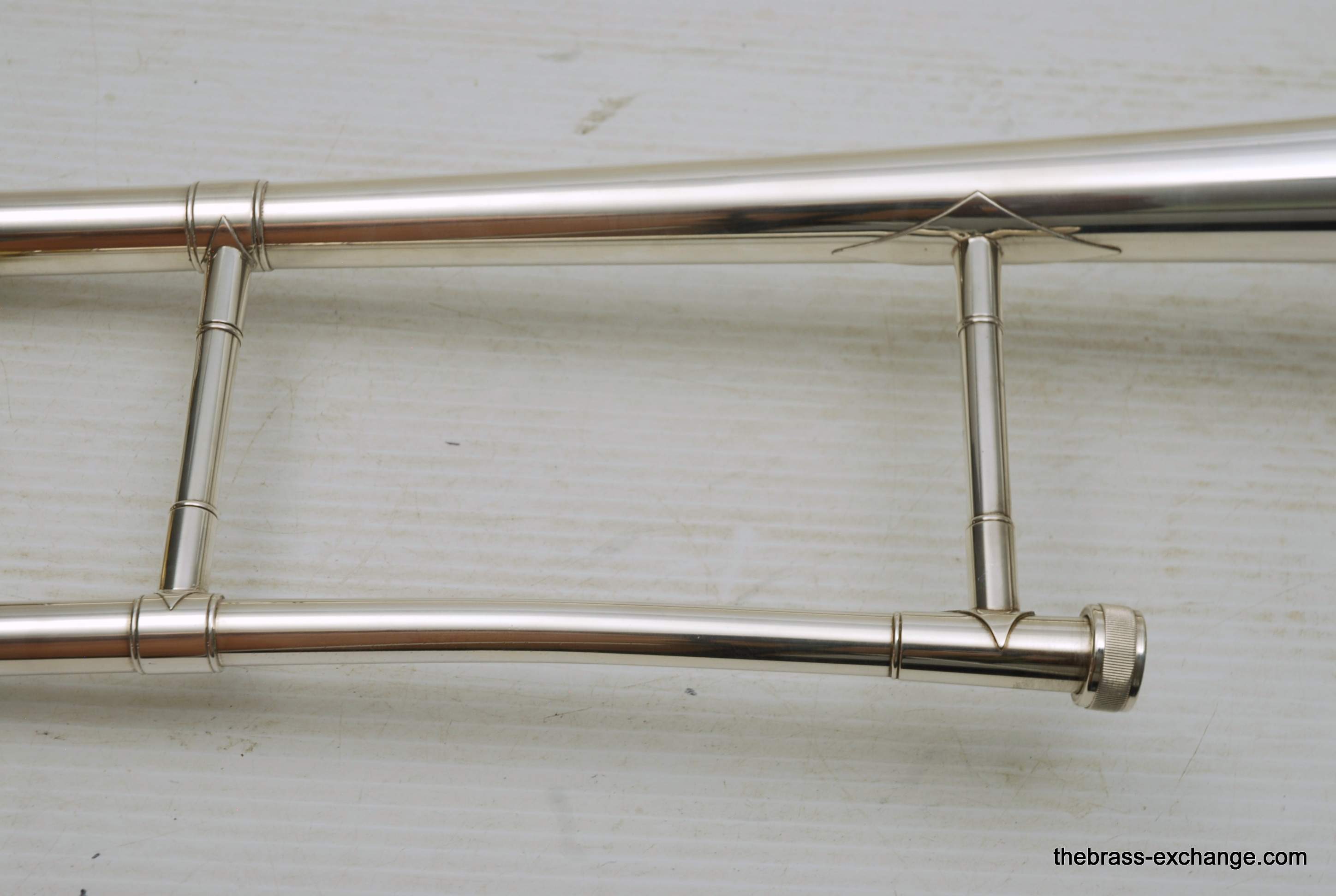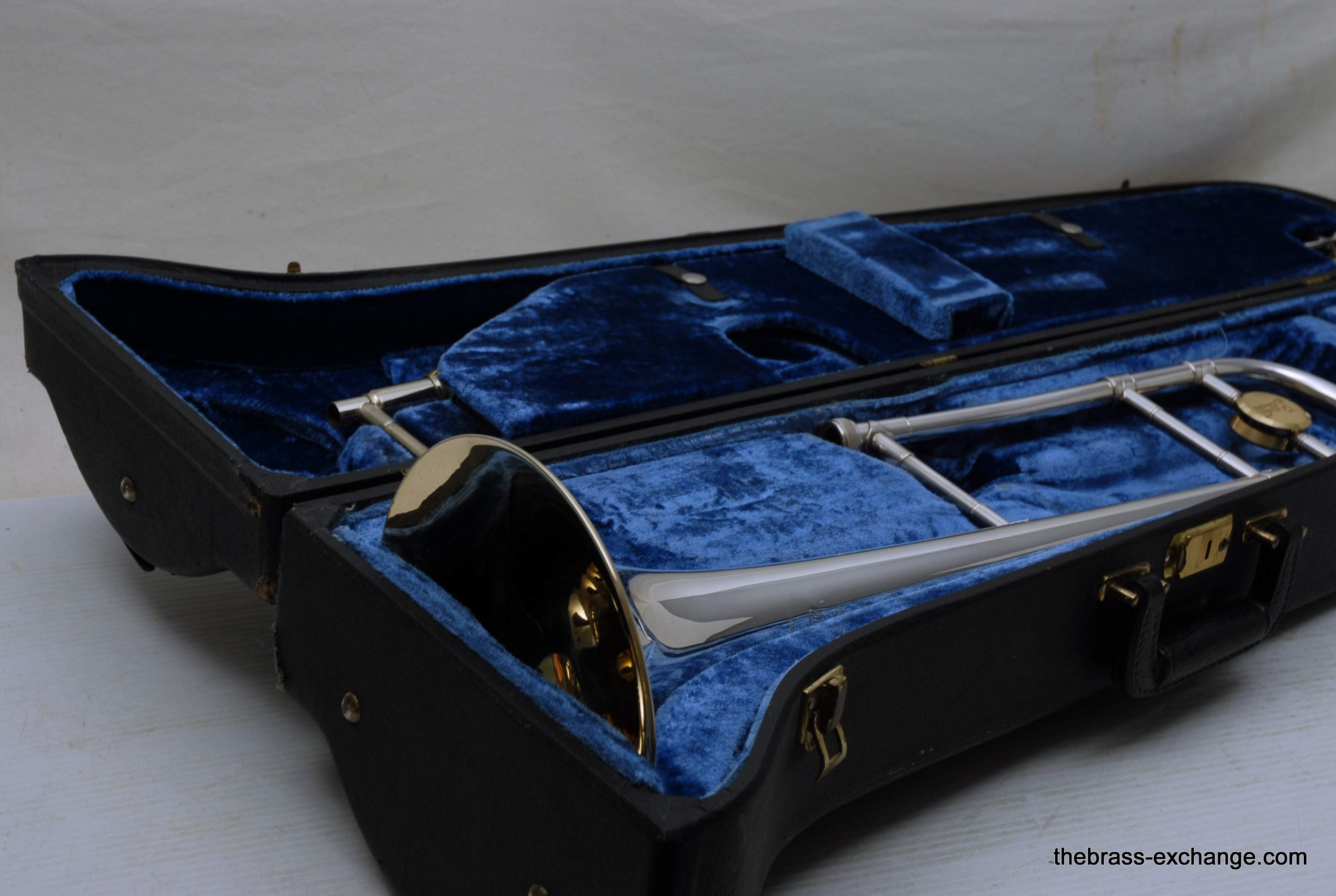 Bach 36 STraight Tenor, Sterling Silver Bell with Gold wash inner bell, Lightweight nickel silver slide, original French style case. Super Mint Condition, looks and plays perfectly, never damaged or repaired. SN 19275. Amazing playing .525 bore, has 8" sterling silver bell. Made in the mid 1970's. Everything is original on this trombone. It will not dissapoint. This is the type of horn that you can push to the limit and the sound keeps getting bigger and wider. Would be perfect for a medium bore Jazz guy looking to push it to the extreme. No service needs to improve slide or anything else on this horn. To keep our price in perspective: A new straight 36 model with LT slide today sells for over $3600. They don't make this model with sterling silver any longer. Other manufacturers that do make sterling bells generally have a $1500-1600 upcharge for sterling silver. For example a 3B Brass today is $2829 while a 3B Sterling is $4469. In stock for immediate delivery.