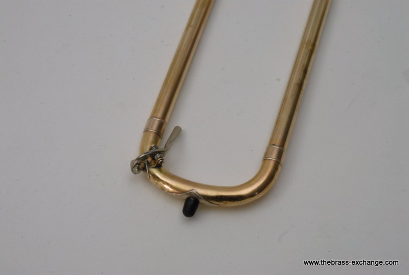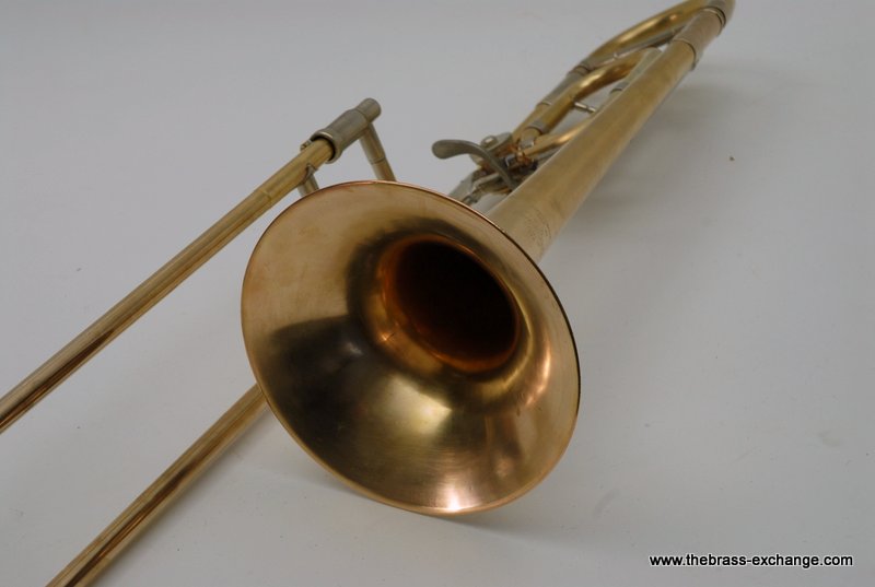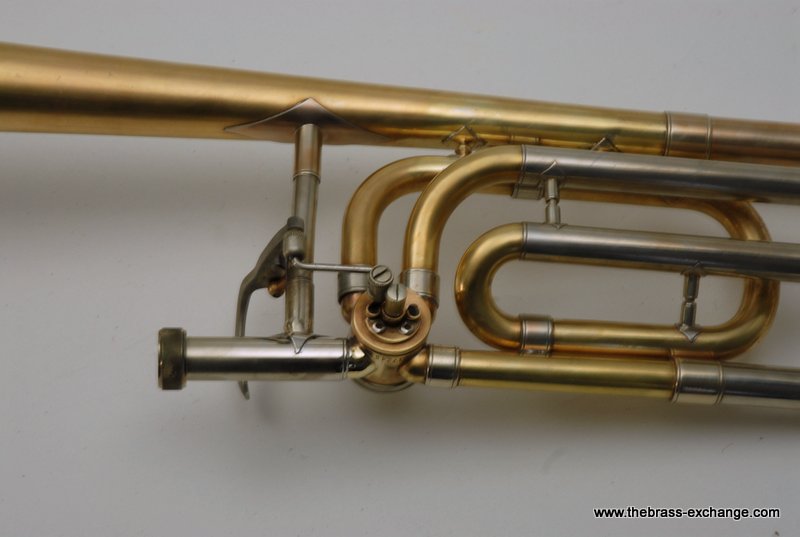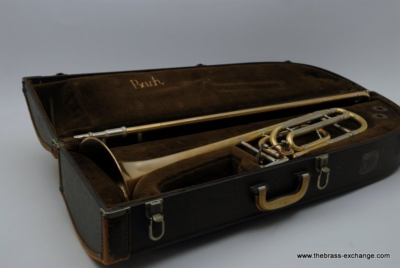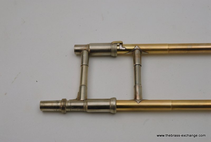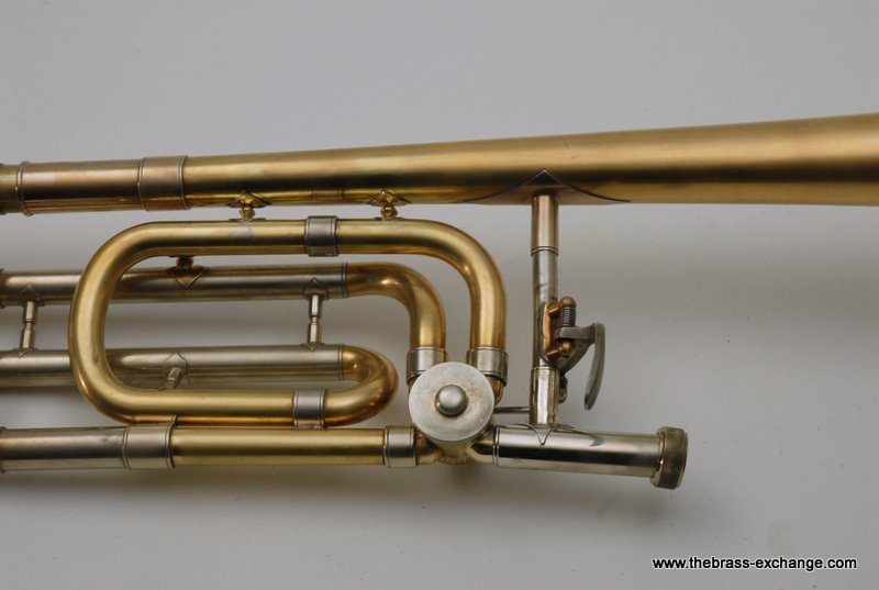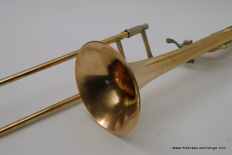 Bach 36B SN 40934 Made around 1979-1980. Is in unlacquered brass. Just had full shop service here including chemical bath. Appears to have slightly higher copper content in bell but not full on gold brass. It could be that the color is a result of our chemical dip. I am pretty sure that it is yellow brass. I played it in lesson teaching here and like it. The grip width when you hold it seems wider, but not much. It is a slightly different slide than the other 36/36B horns that we have seen here. The big difference is no nickel oversleeves at the top of the slide. But, the outer tubes aren't like the ones when standard slides have the sleeves removed to make them light weight. It was definitely made this way. You have to be ok with unlacquered to enjoy this instrument. It's going to tarnish in time. The only minor defect that I noticed was smooth plating wear on the inner tubes. It's just the way it is on this horn, but easy to overcome because it plays so proper. Would have been a major upgrade for me when I was an 8th grader. No hesitation to recommend this horn for any advancing player wanting to play on something pro level. Can use any small shank mouthpiece but Bach 6/12 or 5G would be the best choices to make it fully resonate.