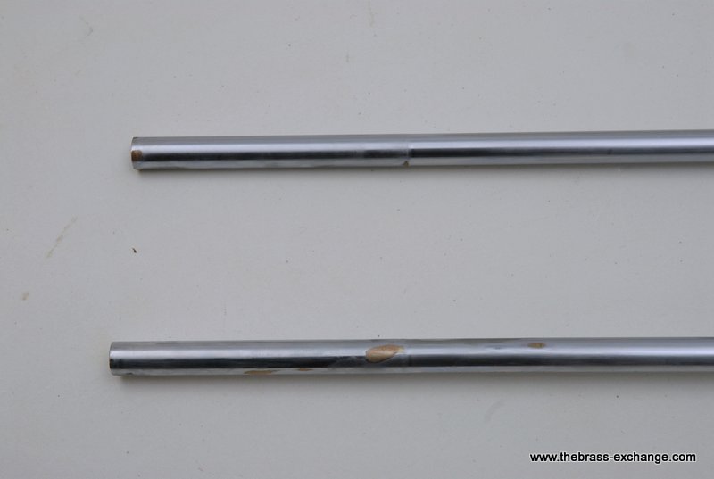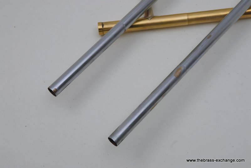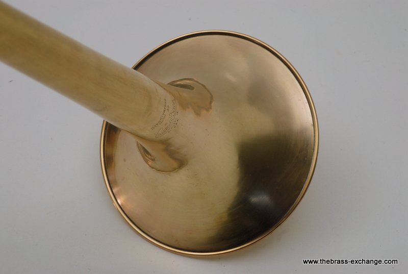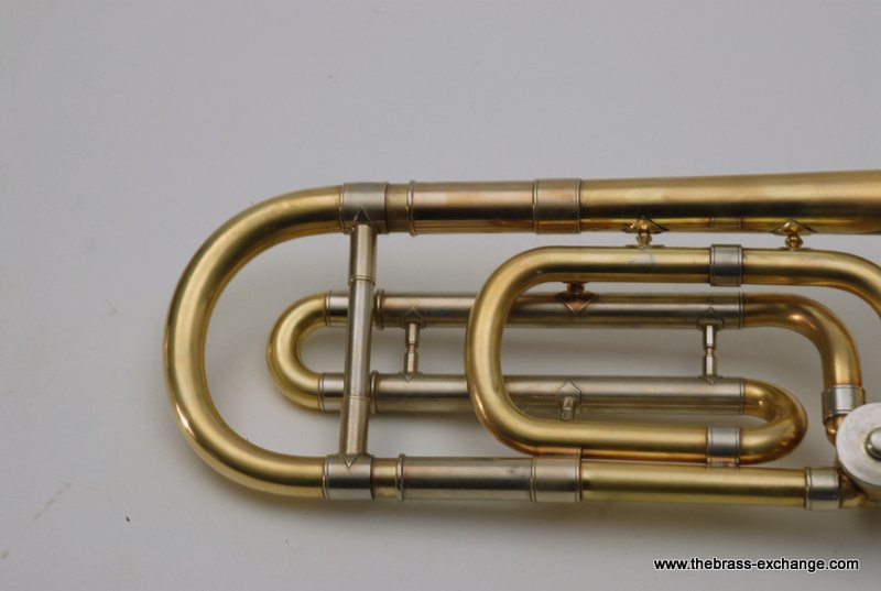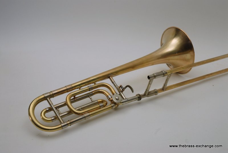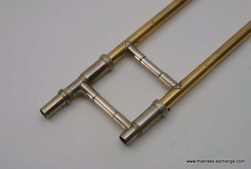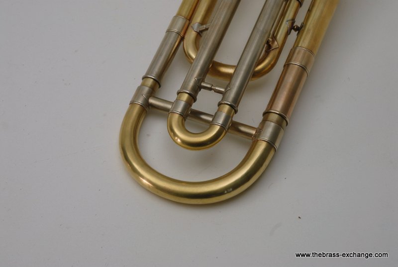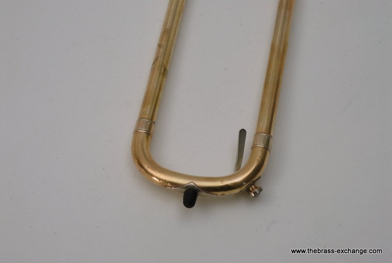Bach 36B SN 40934 Made around 1979-1980. Is in unlacquered brass. Just had full shop service here including chemical bath. Appears to have slightly higher copper content in bell but not full on gold brass. It could be that the color is a result of our chemical dip. I am pretty sure that it is yellow brass. I played it in lesson teaching here and like it. The grip width when you hold it seems wider, but not much. It is a slightly different slide than the other 36/36B horns that we have seen here. The big difference is no nickel oversleeves at the top of the slide. But, the outer tubes aren't like the ones when standard slides have the sleeves removed to make them light weight. It was definitely made this way. You have to be ok with unlacquered to enjoy this instrument. It's going to tarnish in time. The only minor defect that I noticed was smooth plating wear on the inner tubes. It's just the way it is on this horn, but easy to overcome because it plays so proper. Would have been a major upgrade for me when I was an 8th grader. No hesitation to recommend this horn for any advancing player wanting to play on something pro level. Can use any small shank mouthpiece but Bach 6/12 or 5G would be the best choices to make it fully resonate.