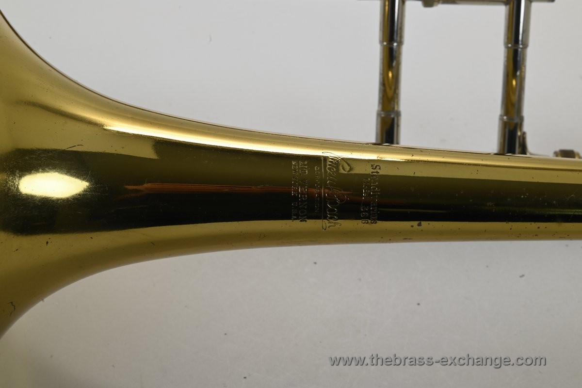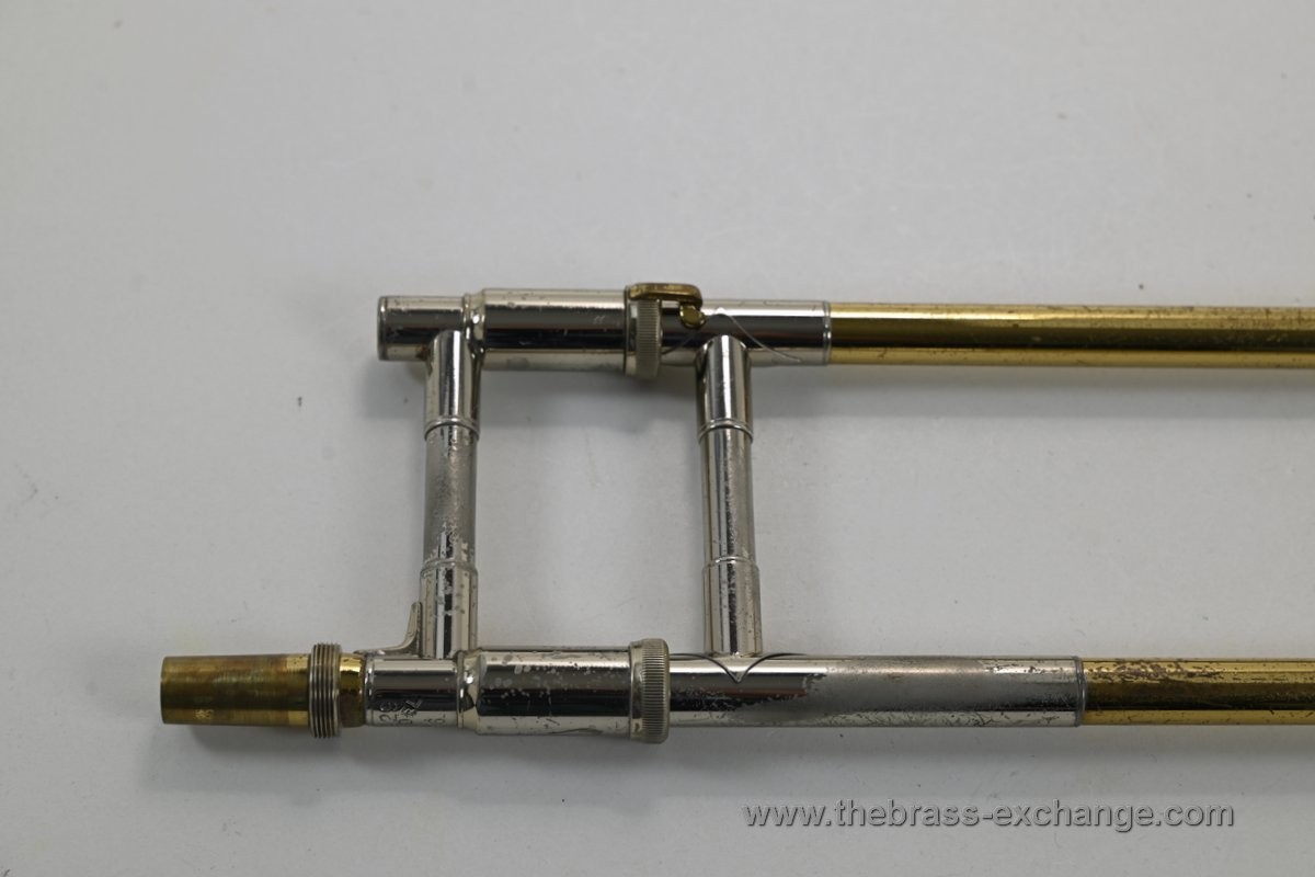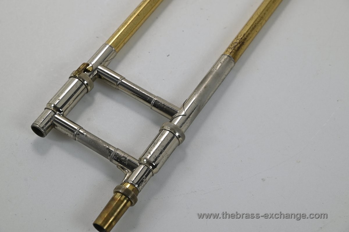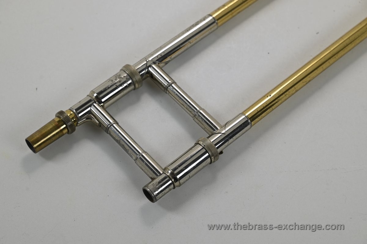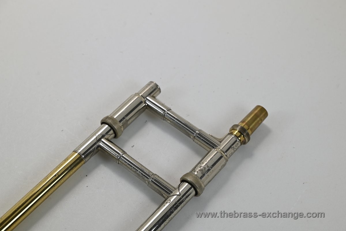 Condition: The inner slide tubes are straight, with no plating defects, and have excellent alignment—about as good as a slide can get. The valve is very quick and quiet, with perfect compression. There are no dents or structural flaws anywhere on the instrument. Cosmetically, it shows light lacquer loss in common handling areas but retains its classic visual appeal. The original Mt. Vernon-era case is included and remains in excellent condition. It plays like a dream and will not disappoint.
