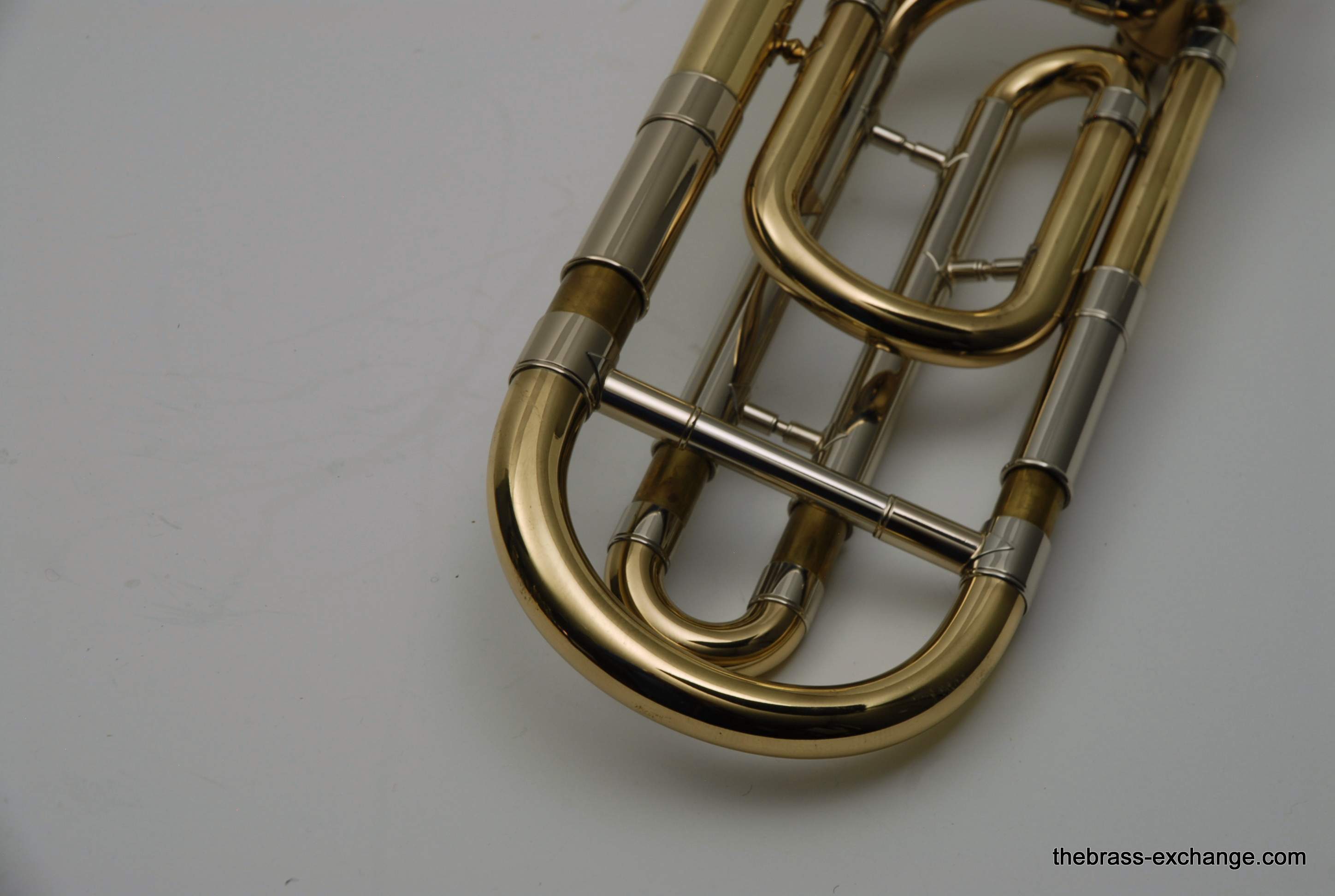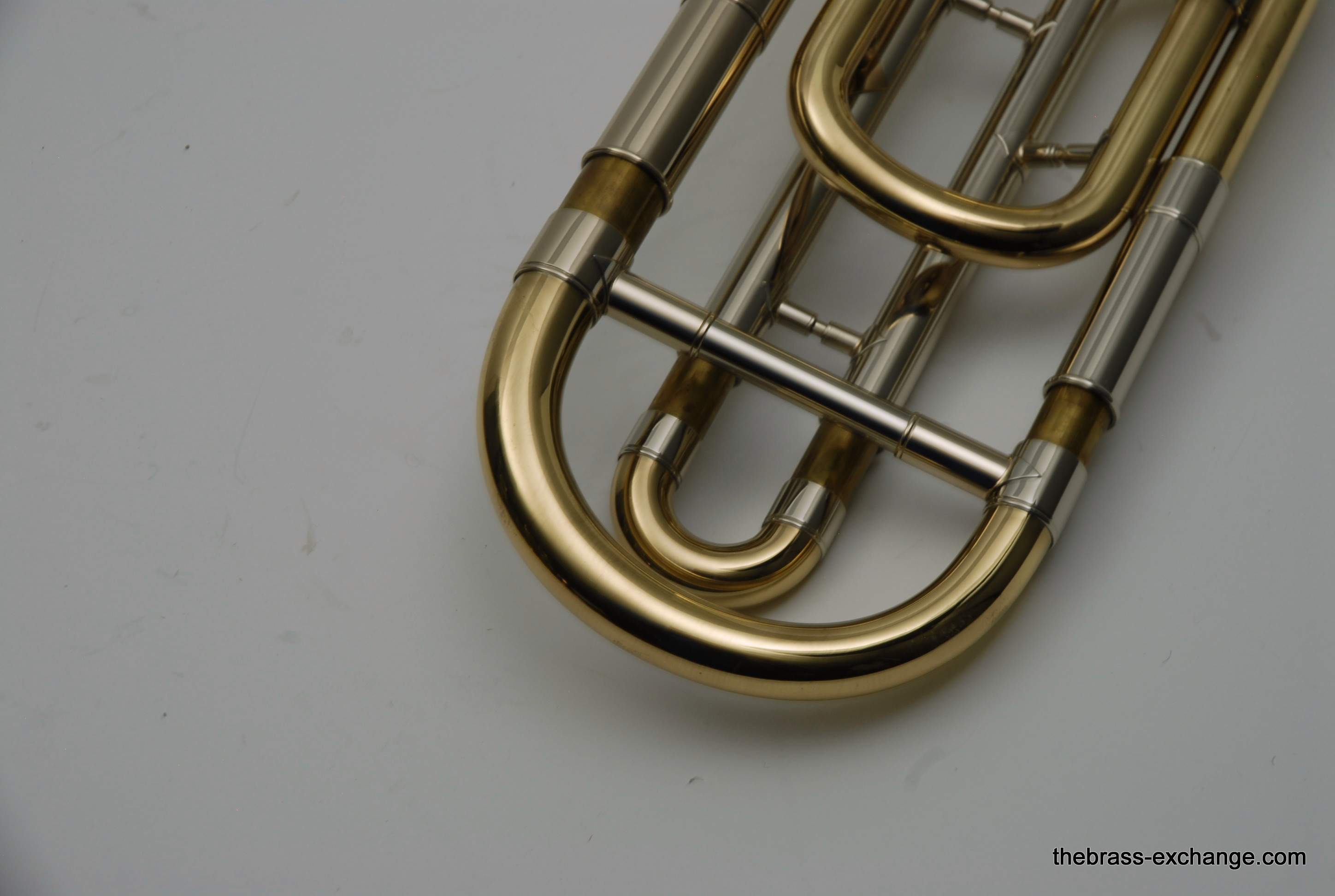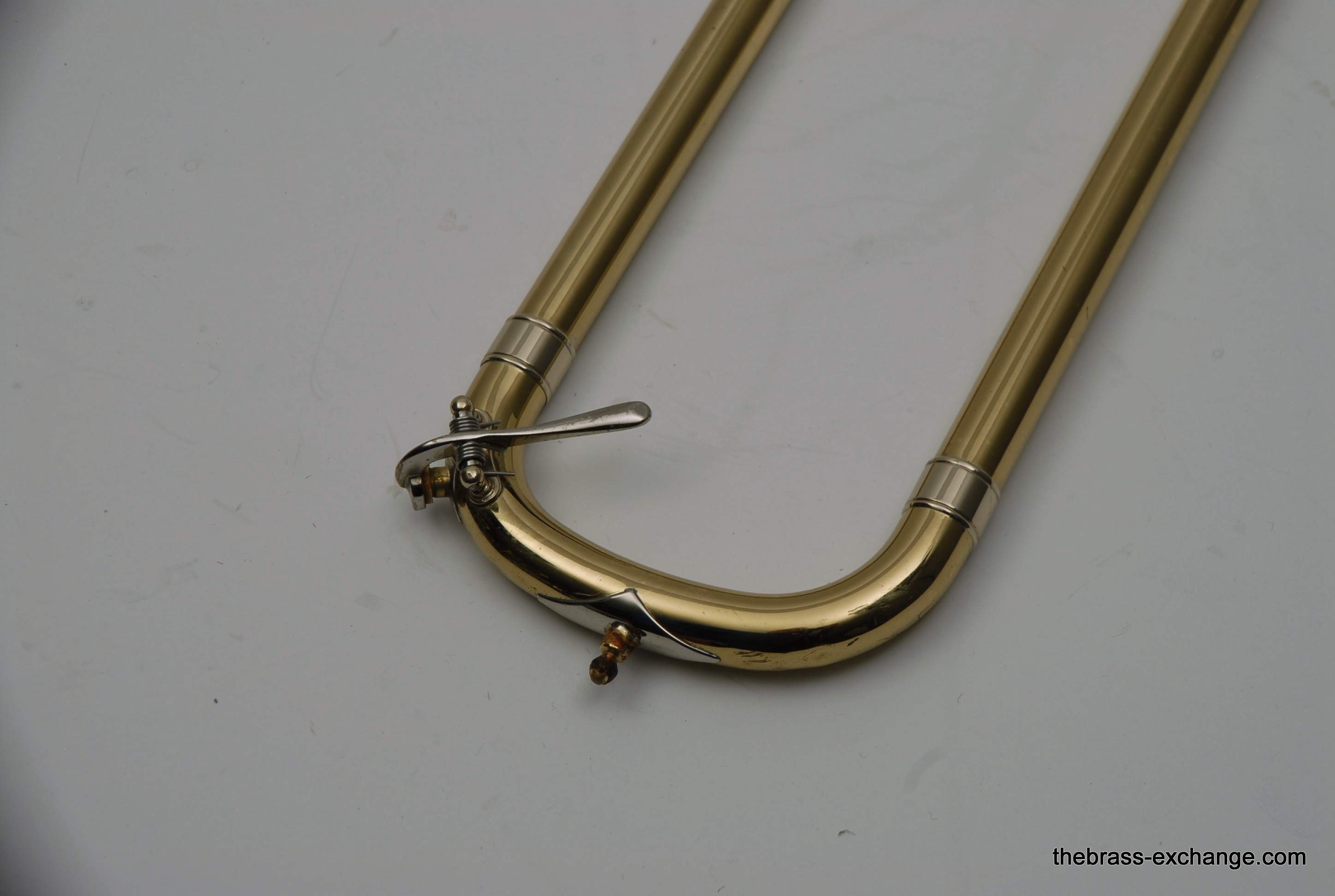 Bach 36B SN 97142, super mint example made in 1990. Features the traditional rotor valve, standard weight slide (.525" bore), and an 8" yellow brass bell. The 36B is one of the most popular tenor trombone models ever produced and remains in production today. This particular instrument was owned by a single adult player and shows minimal use — lacquer is nearly perfect, the handslide is flawless, and there are no dents or dings. The rotor functions exceptionally well.