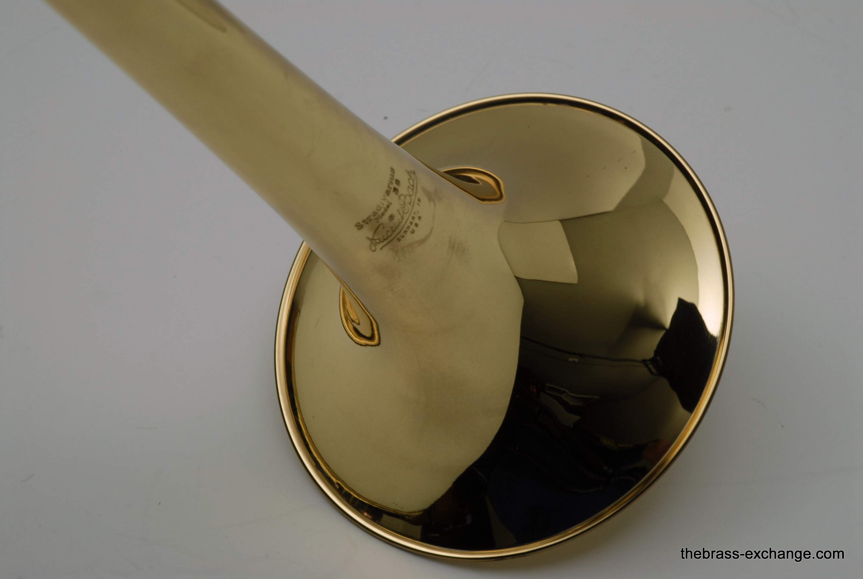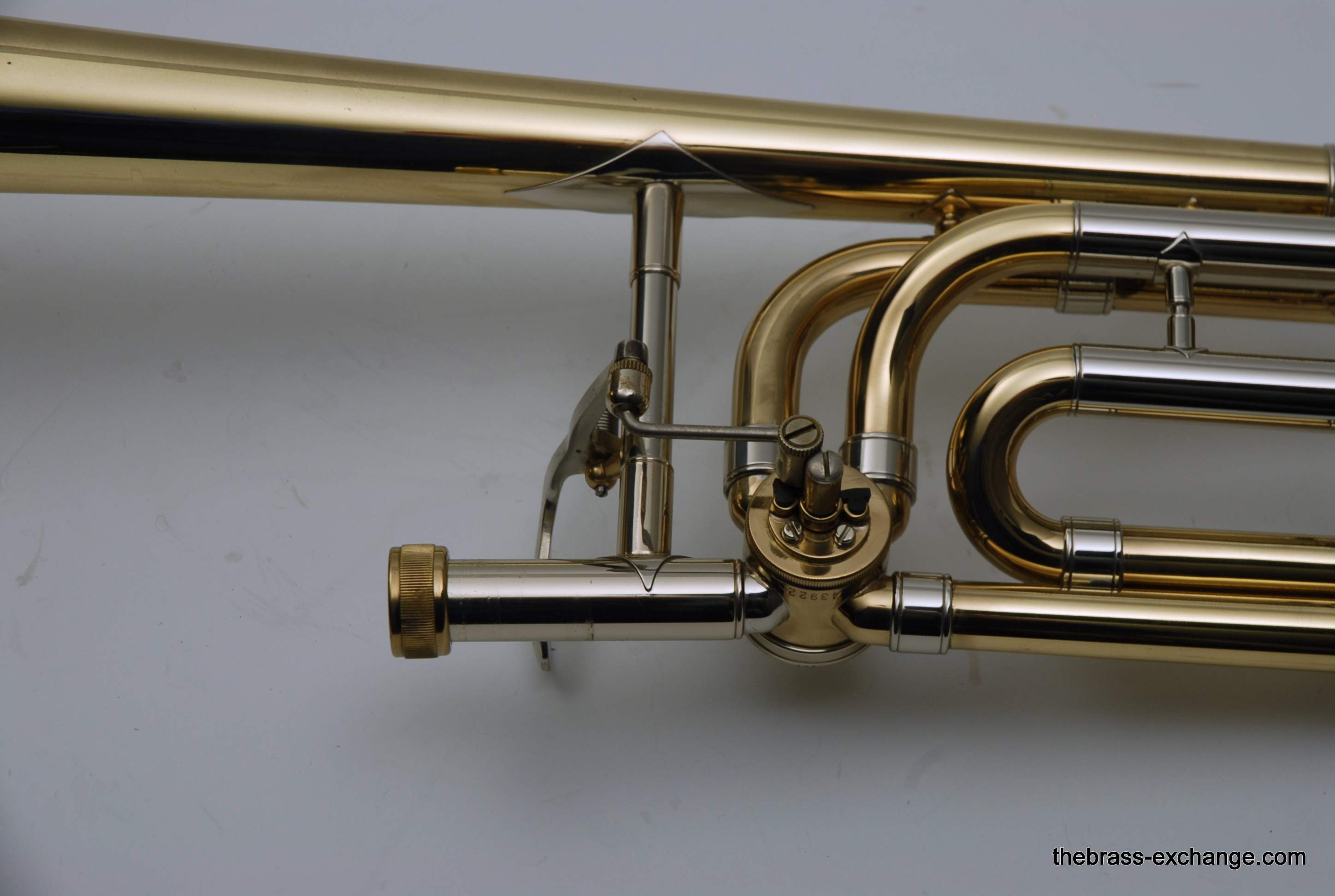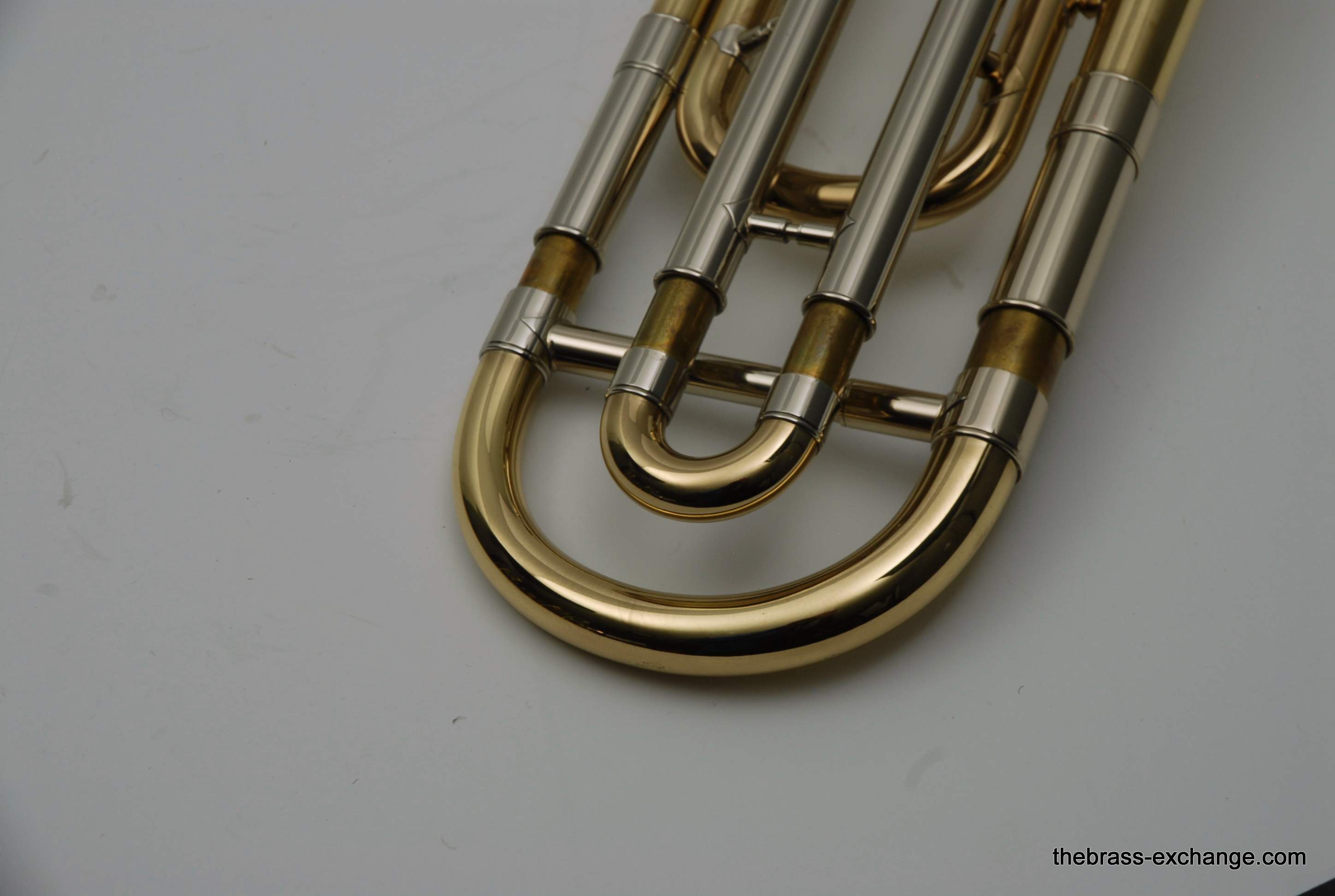 Bach 36B SN 97142, super mint example made in 1990. Features the traditional rotor valve, standard weight slide (.525" bore), and an 8" yellow brass bell. The 36B is one of the most popular tenor trombone models ever produced and remains in production today. This particular instrument was owned by a single adult player and shows minimal use — lacquer is nearly perfect, the handslide is flawless, and there are no dents or dings. The rotor functions exceptionally well.