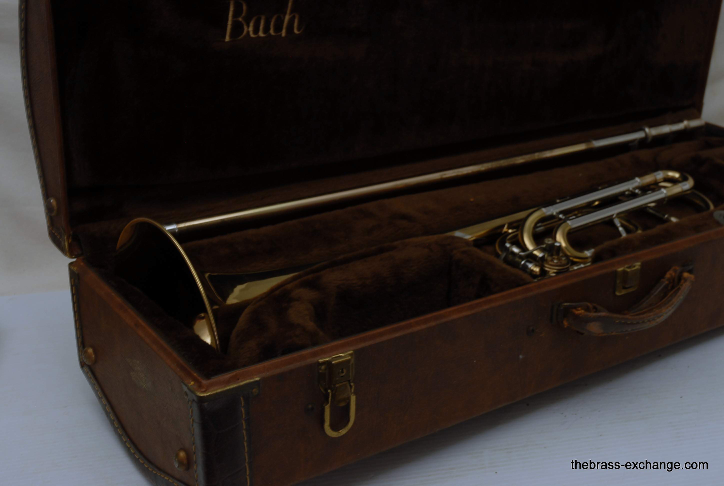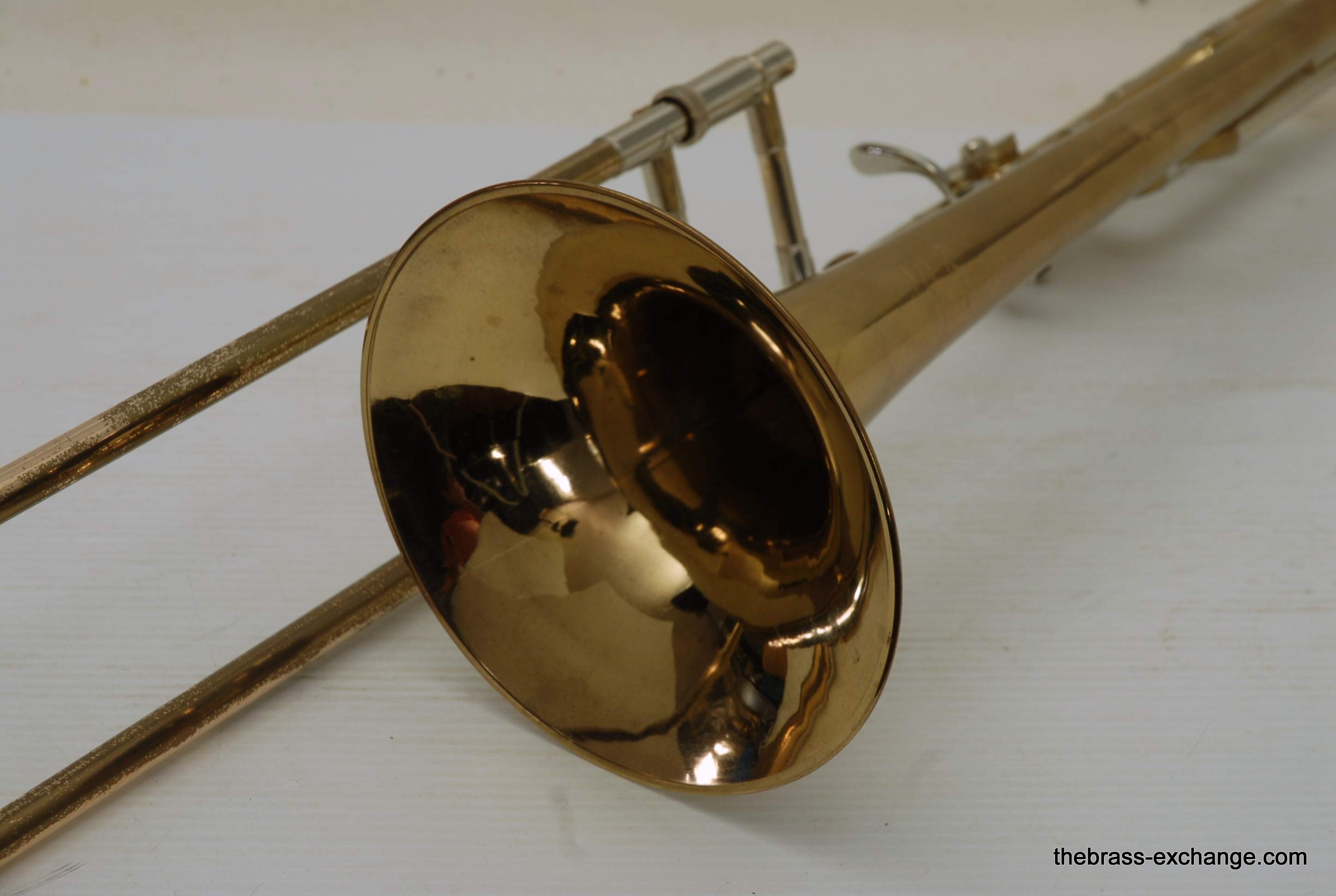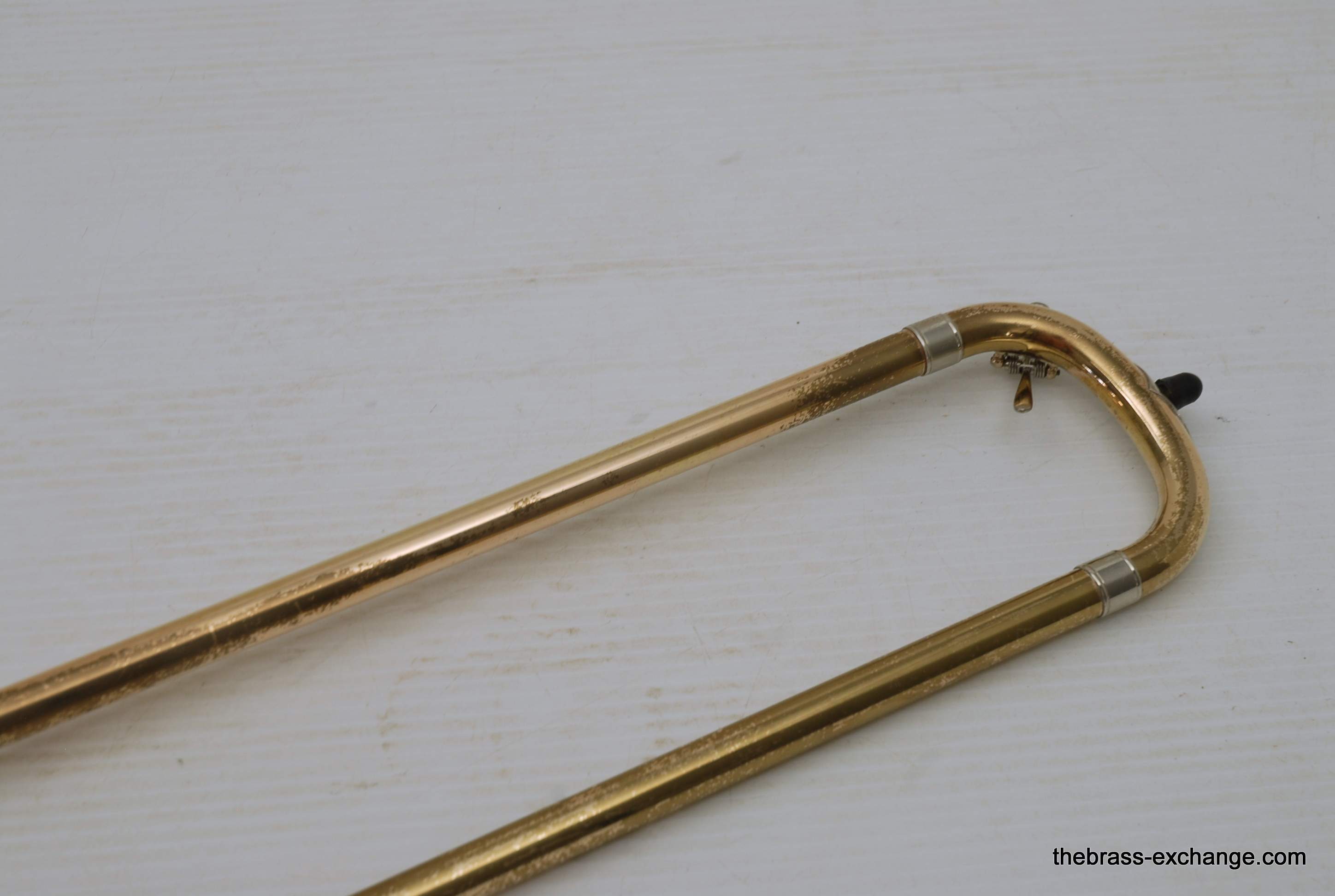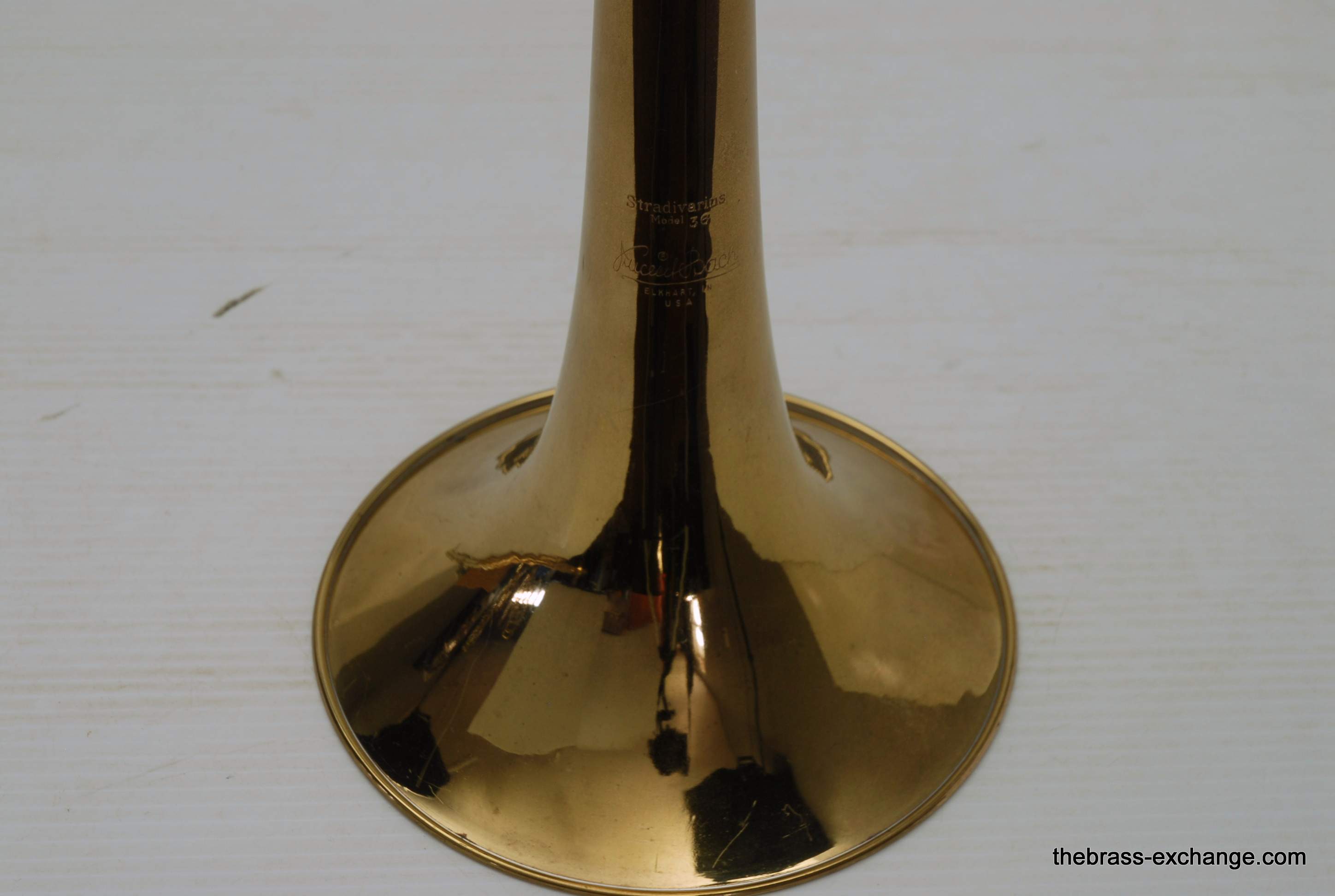 Trombones made by Vincent Bach in the Early 1980's were excellent instruments.  This 36B is a  Single owner horn, well cared for, maintained, never damaged.  Has had full shop service here including chemical bath.  Handslide is very good and plays like a dream.  Has 8" yellow brass bell and is .525 bore.  Vincent Bach felt that the 36B was the ideal size trombone for orchestra and band.  It's bigger than a small bore, but not quite as big as a large more, that's right, is a medium bore size.  Perfect for anyone looking to play something a little smaller than full .547.  Many pro orchestra guys are using .525's these days with the demands of contemporary programming.  It's nice to have the option to play something a little smaller.  All original parts and lacquer.  Still a good looking horn, some outer slide lacquer loss, but not too bad. will not dissapoint.