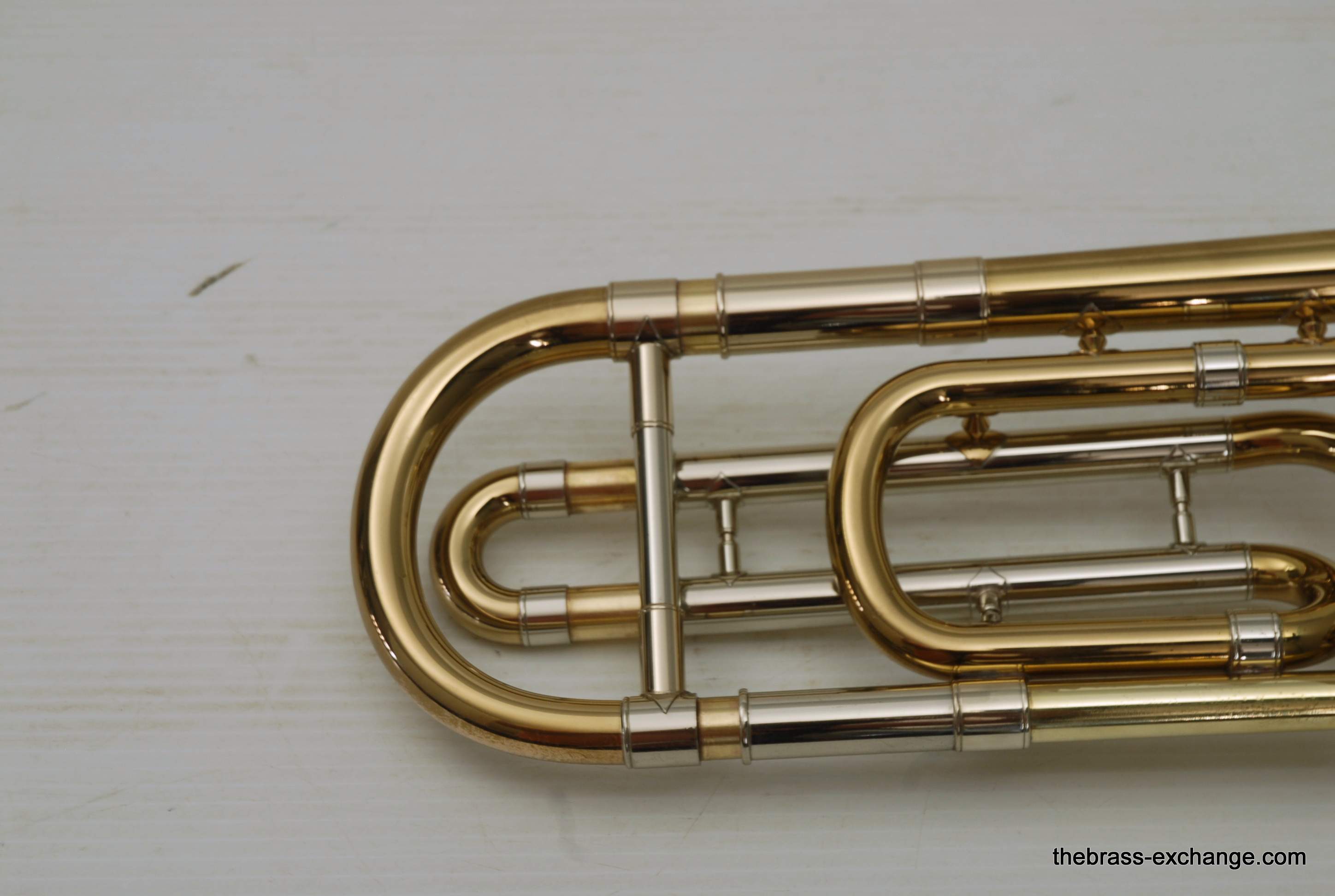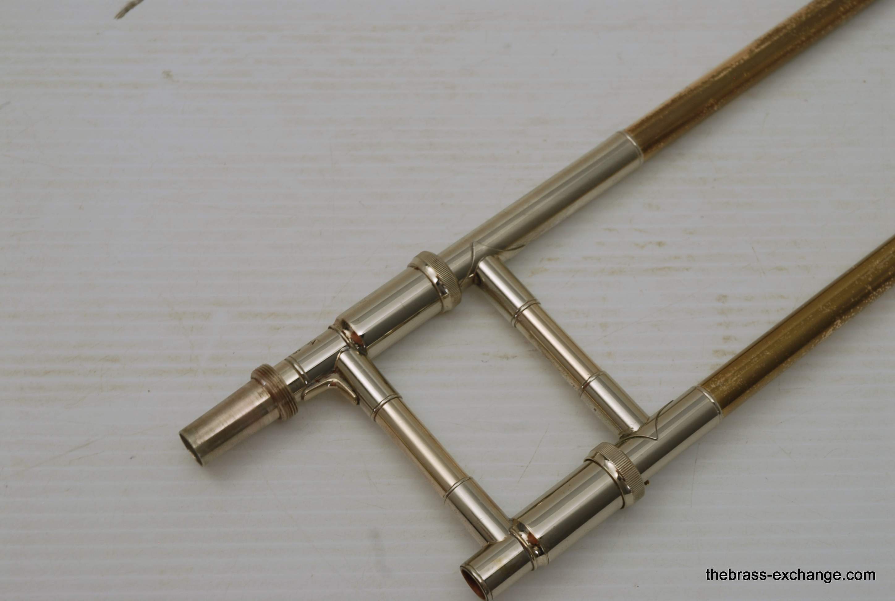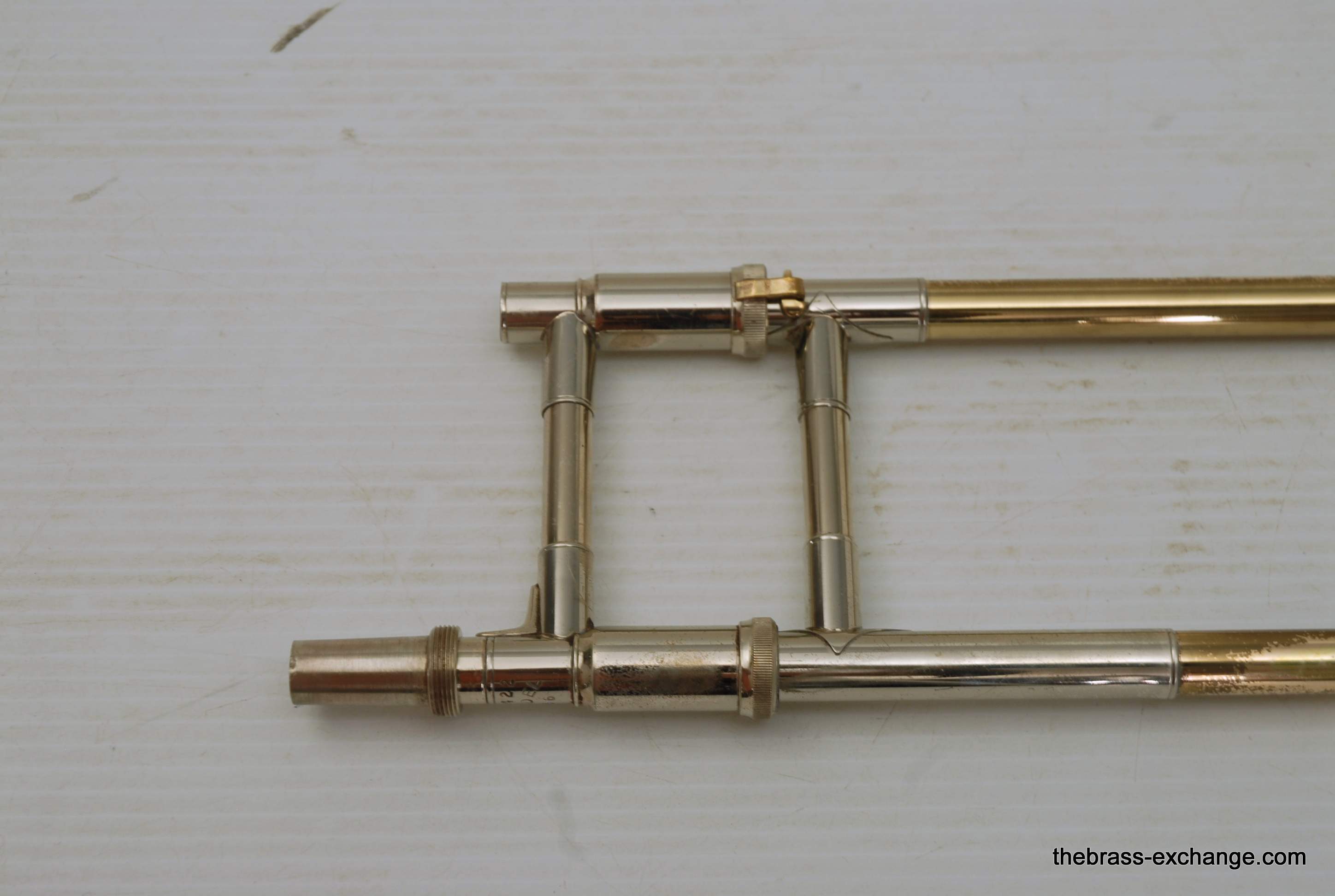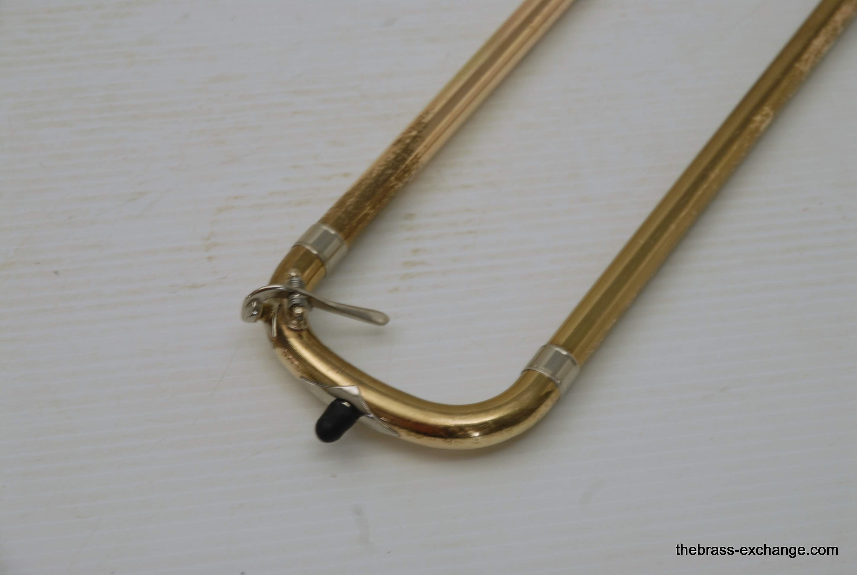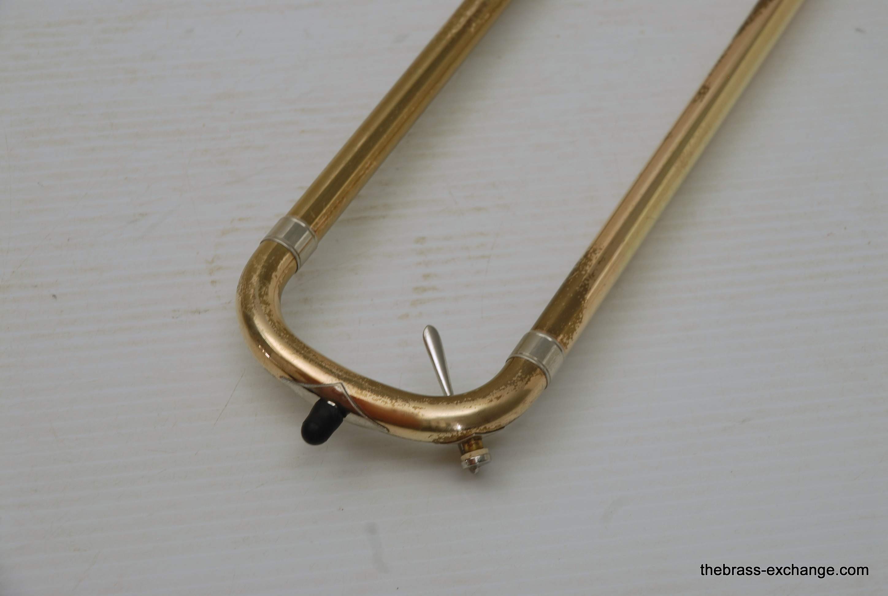 Trombones made by Vincent Bach in the Early 1980's were excellent instruments.  This 36B is a  Single owner horn, well cared for, maintained, never damaged.  Has had full shop service here including chemical bath.  Handslide is very good and plays like a dream.  Has 8" yellow brass bell and is .525 bore.  Vincent Bach felt that the 36B was the ideal size trombone for orchestra and band.  It's bigger than a small bore, but not quite as big as a large more, that's right, is a medium bore size.  Perfect for anyone looking to play something a little smaller than full .547.  Many pro orchestra guys are using .525's these days with the demands of contemporary programming.  It's nice to have the option to play something a little smaller.  All original parts and lacquer.  Still a good looking horn, some outer slide lacquer loss, but not too bad. will not dissapoint.