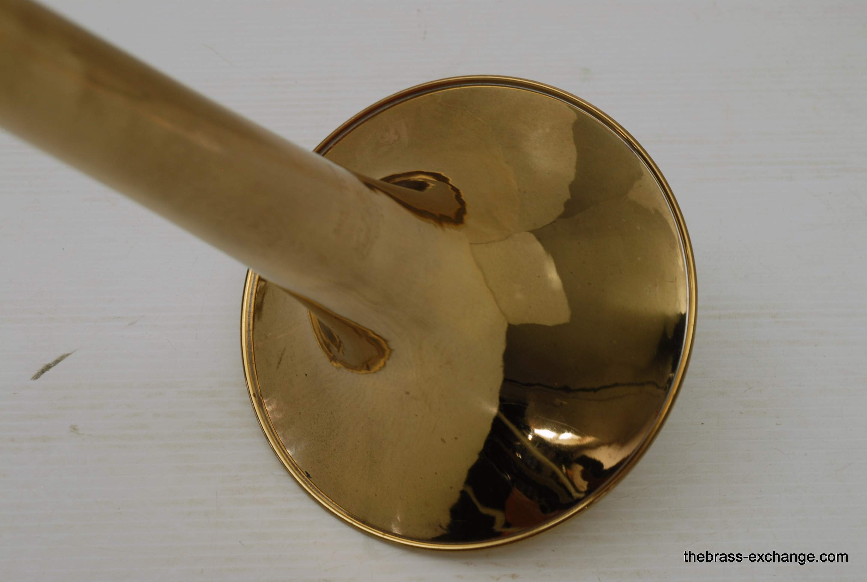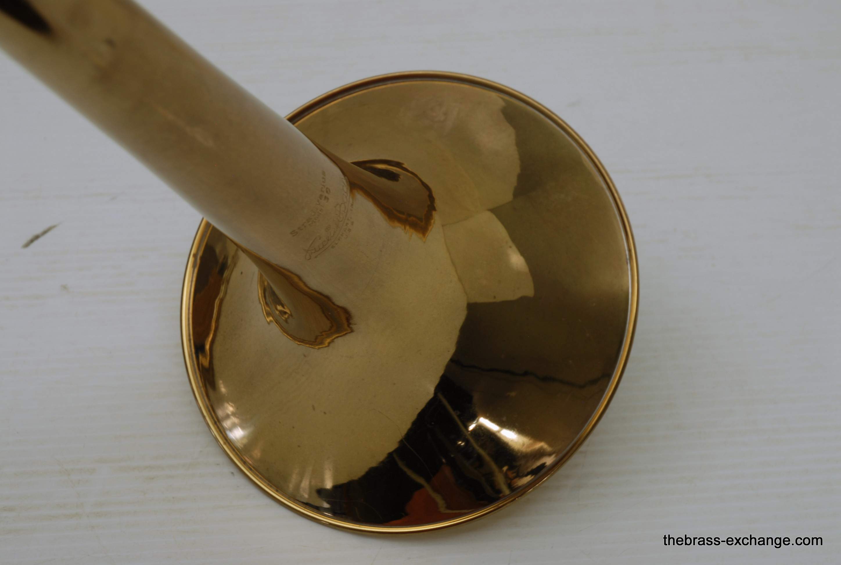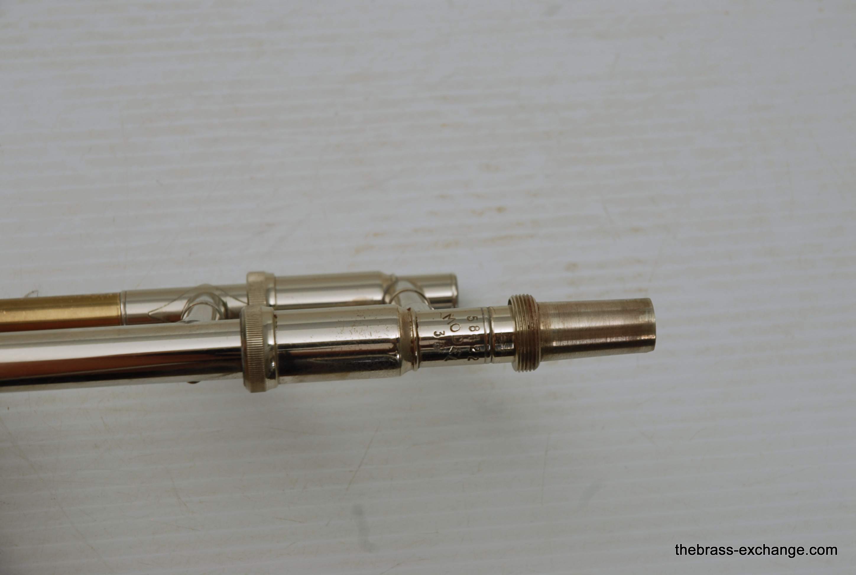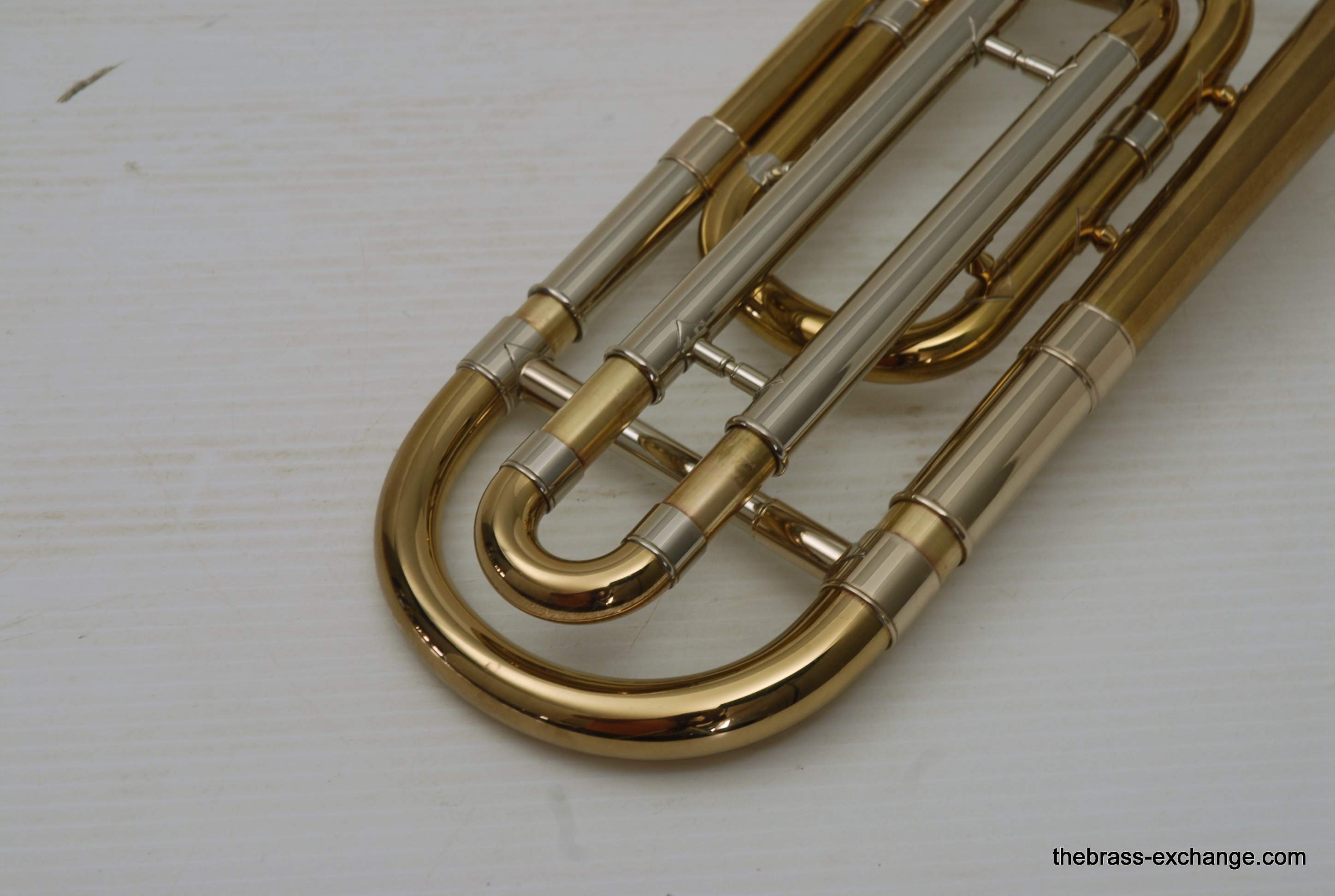 Trombones made by Vincent Bach in the Early 1980's were excellent instruments.  This 36B is a  Single owner horn, well cared for, maintained, never damaged.  Has had full shop service here including chemical bath.  Handslide is very good and plays like a dream.  Has 8" yellow brass bell and is .525 bore.  Vincent Bach felt that the 36B was the ideal size trombone for orchestra and band.  It's bigger than a small bore, but not quite as big as a large more, that's right, is a medium bore size.  Perfect for anyone looking to play something a little smaller than full .547.  Many pro orchestra guys are using .525's these days with the demands of contemporary programming.  It's nice to have the option to play something a little smaller.  All original parts and lacquer.  Still a good looking horn, some outer slide lacquer loss, but not too bad. will not dissapoint.