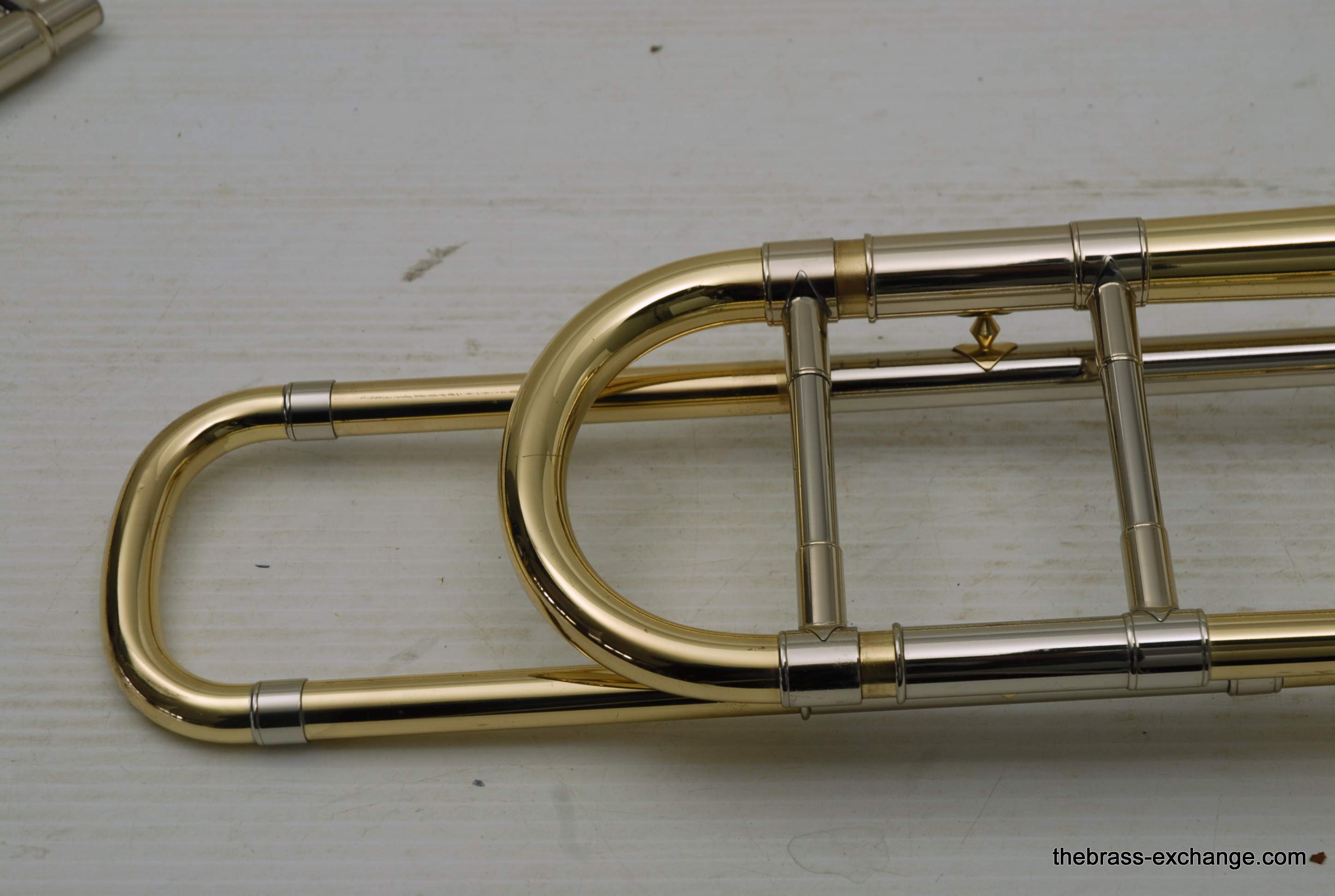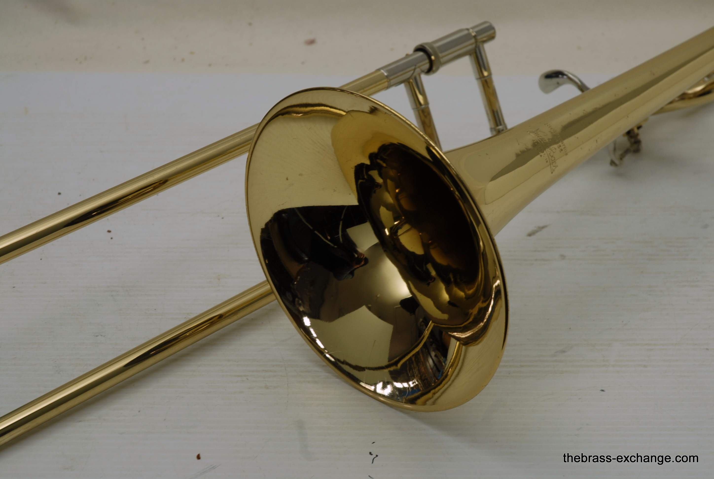 Bach 36BO Medium Bore Tenor, Made in the 1990's. Has 8" yellow brass bell, with standard weight .525 handslide. This is the ultimate all around tenor for just about any type of playing. You can play big with it or more compact, just swap mouthpieces. I like it with a 6 1/2 or a 5G small shank. Open wrap rotor valve section plays... well.. open. This horn has not been damaged and repaired. All original parts and lacquer. Minor dings removed and has had full shop service with chemical bath. This would be an ideal choice for a come back guy who wants to start playing again, but doesn't want to go all the way to a .547 like the 42B. Vincent Bach is known to have said that the model 36 is the ideal size trombone for the orchestra, and that goes for pit orchestra, and studio too. Case also in excellent condition. Mouthpiece Not included. In-stock for immediate delivery.