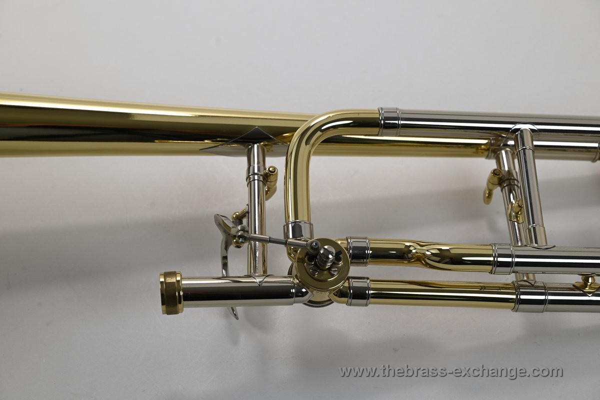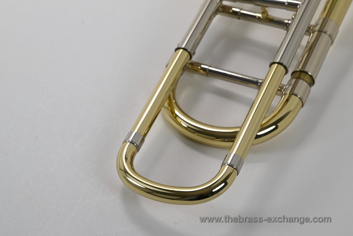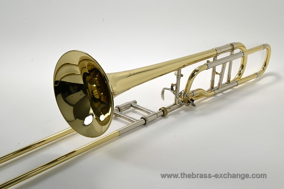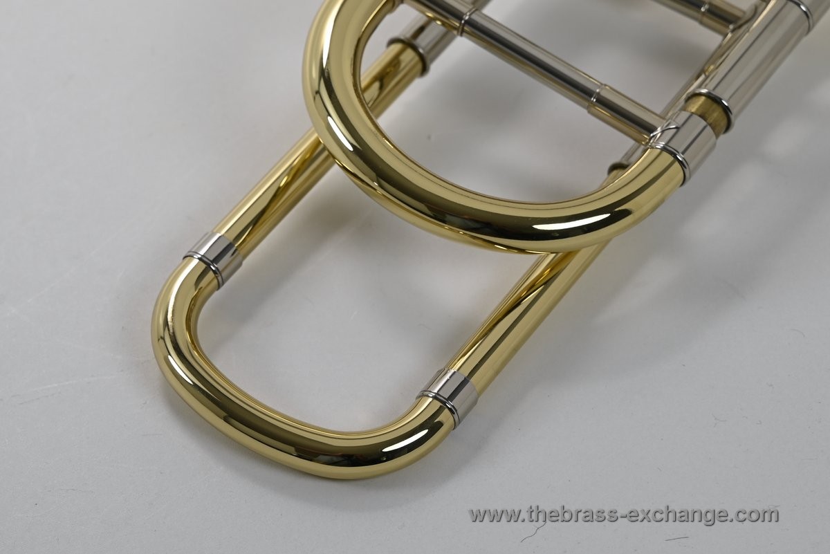 It features the classic 8″ yellow-brass bell, a .525-bore standard-weight handslide, yellow-brass tuning slide, and a removable open-wrap F-attachment.
