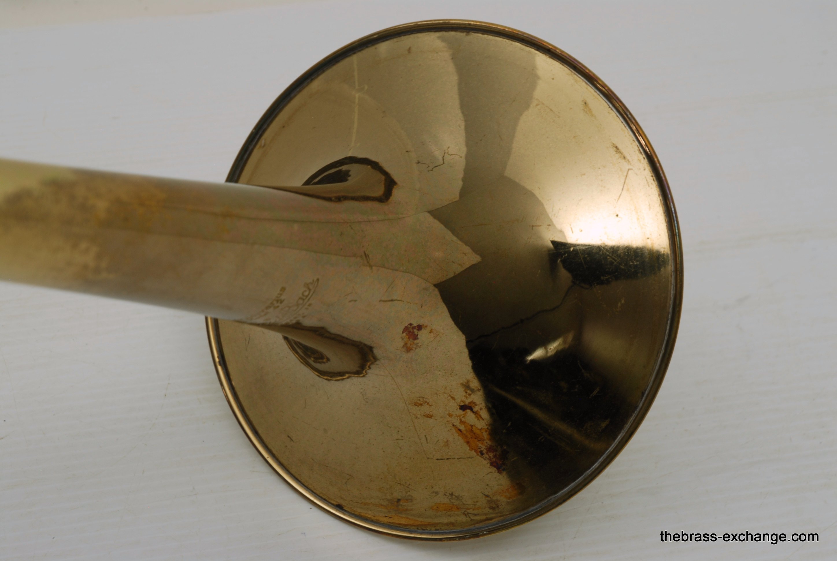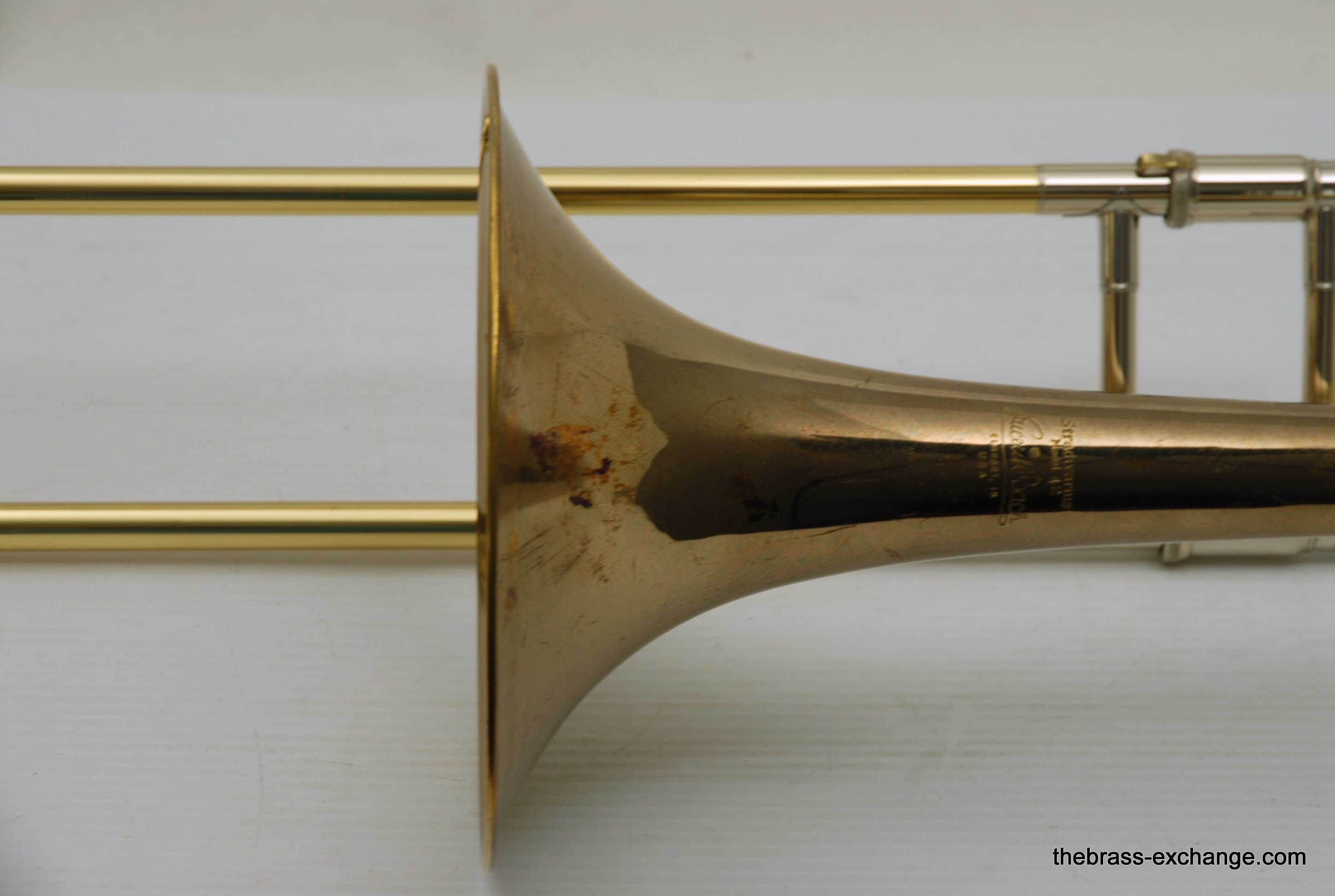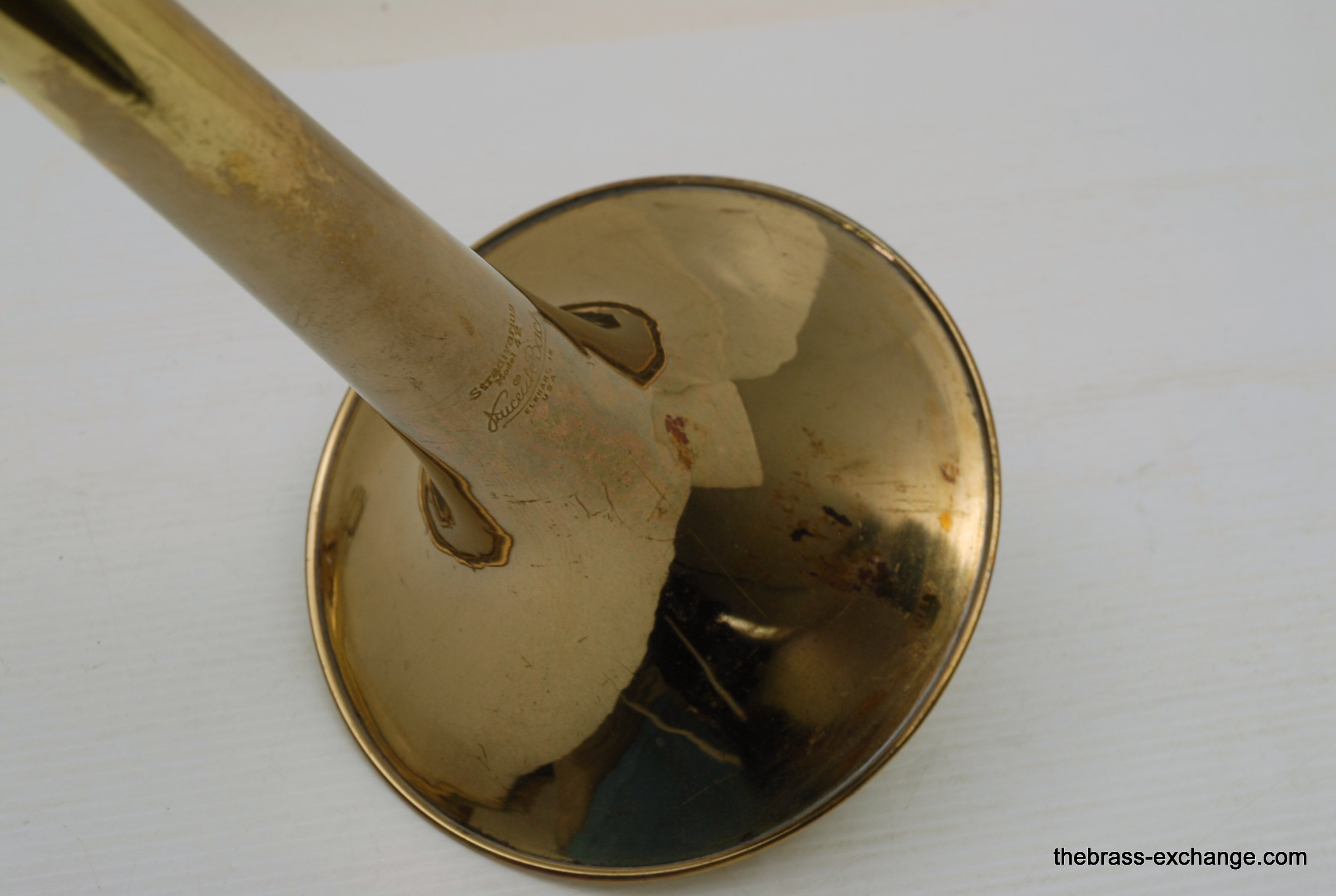 Bach 42 Straight large bore tenor trombone from the late 1970's, S/N 33,XXX. This is a great playing Bach. Bell/Slide are straight, lacquer is all original and about 70%. Has had previous repair, dent removal, but no bell damage or crease. It plays simply great, rich gorgeous Bach overtones. Would be a great choice for anyone looking to play without a trigger. Would even be a fantastic large bore jazz horn. Original case included. In-stock for immediate delivery.