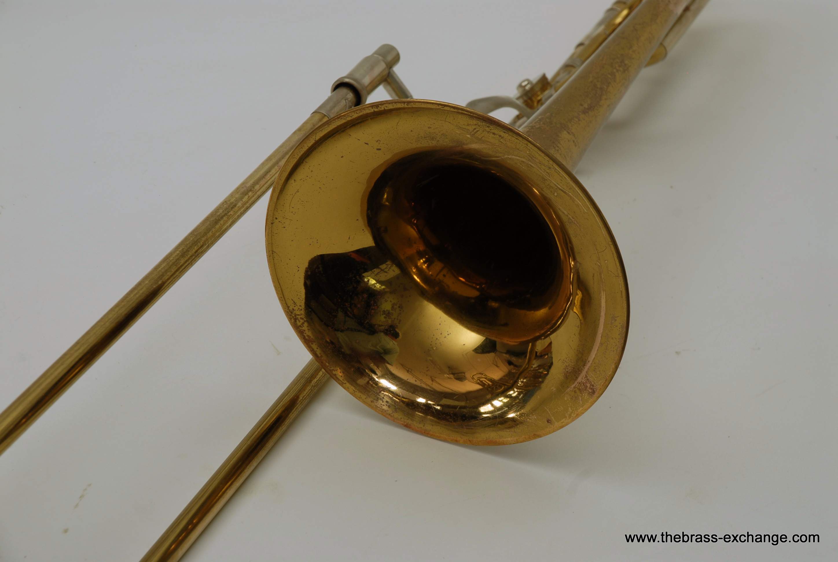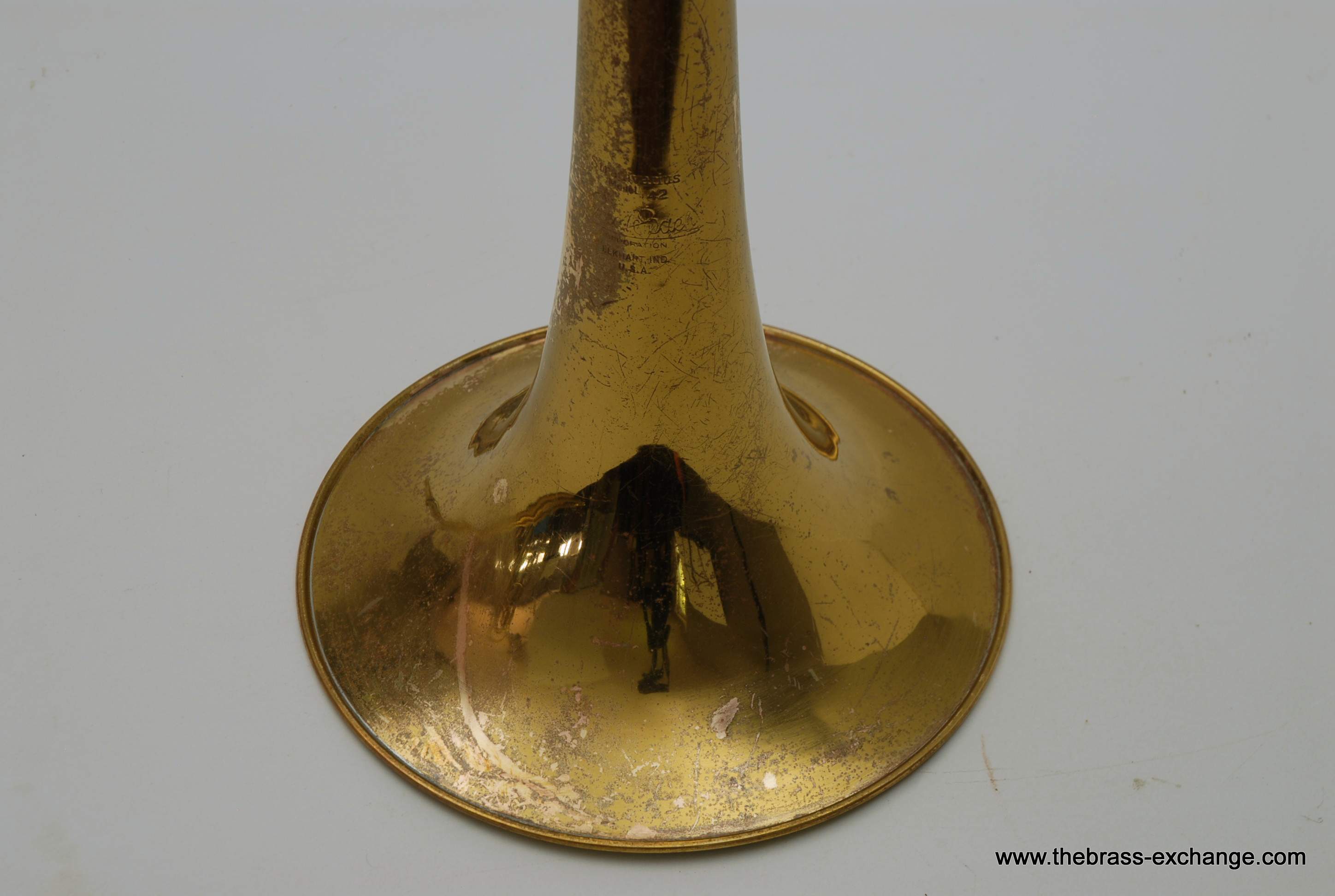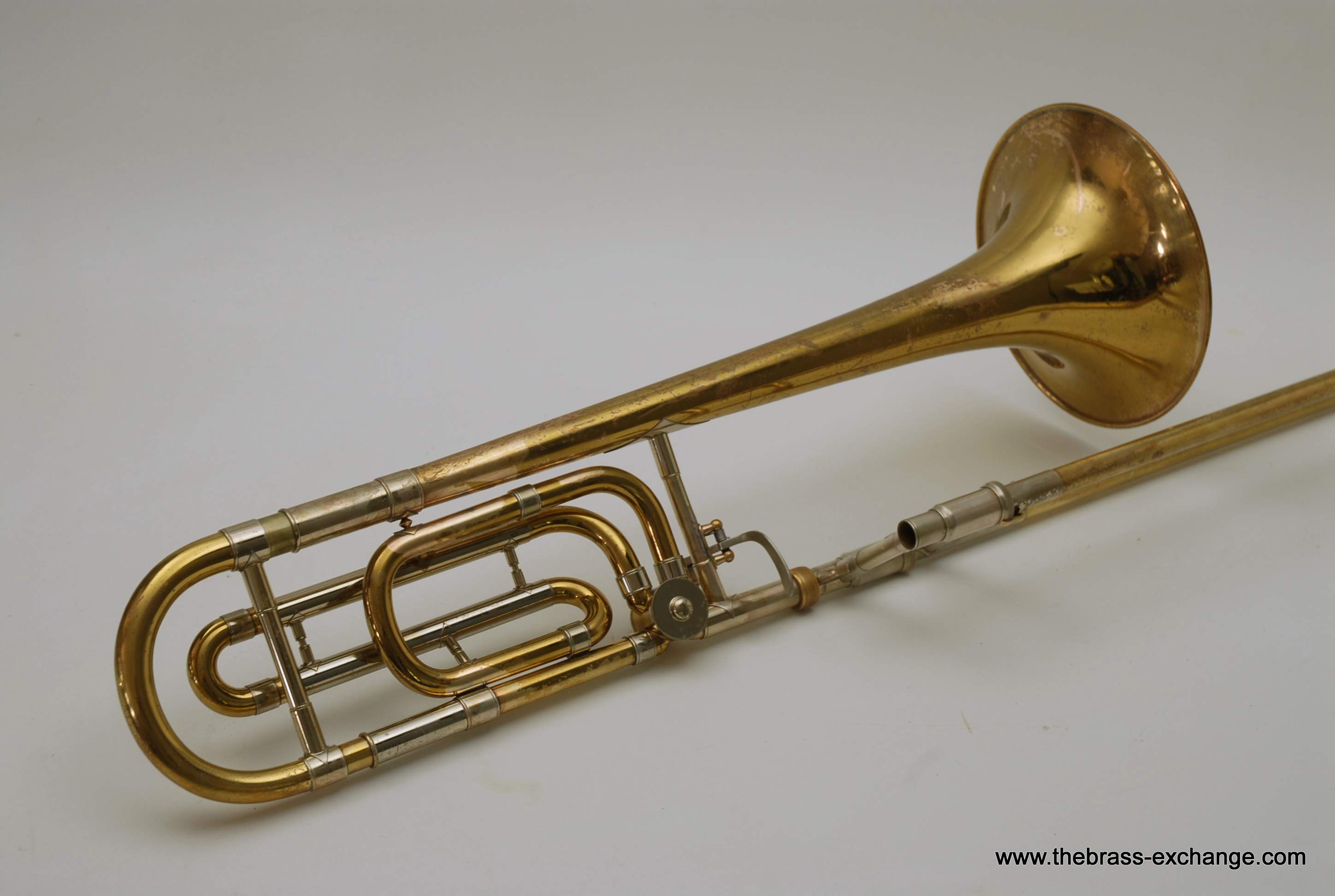 Bach 42B SN 23132 Made in the 1970's. Traditional wrap, yellow brass bell 8.5" with standard weight handslide. Has had full shop service here including chemical bath. Dents and dings have been removed. Considerable lacquer wear, but still plays like a beast. Has a great slide. No inner tube plating loss or any red rot. Would be a perfect pro level trigger horn for any player on a budget. Original case.