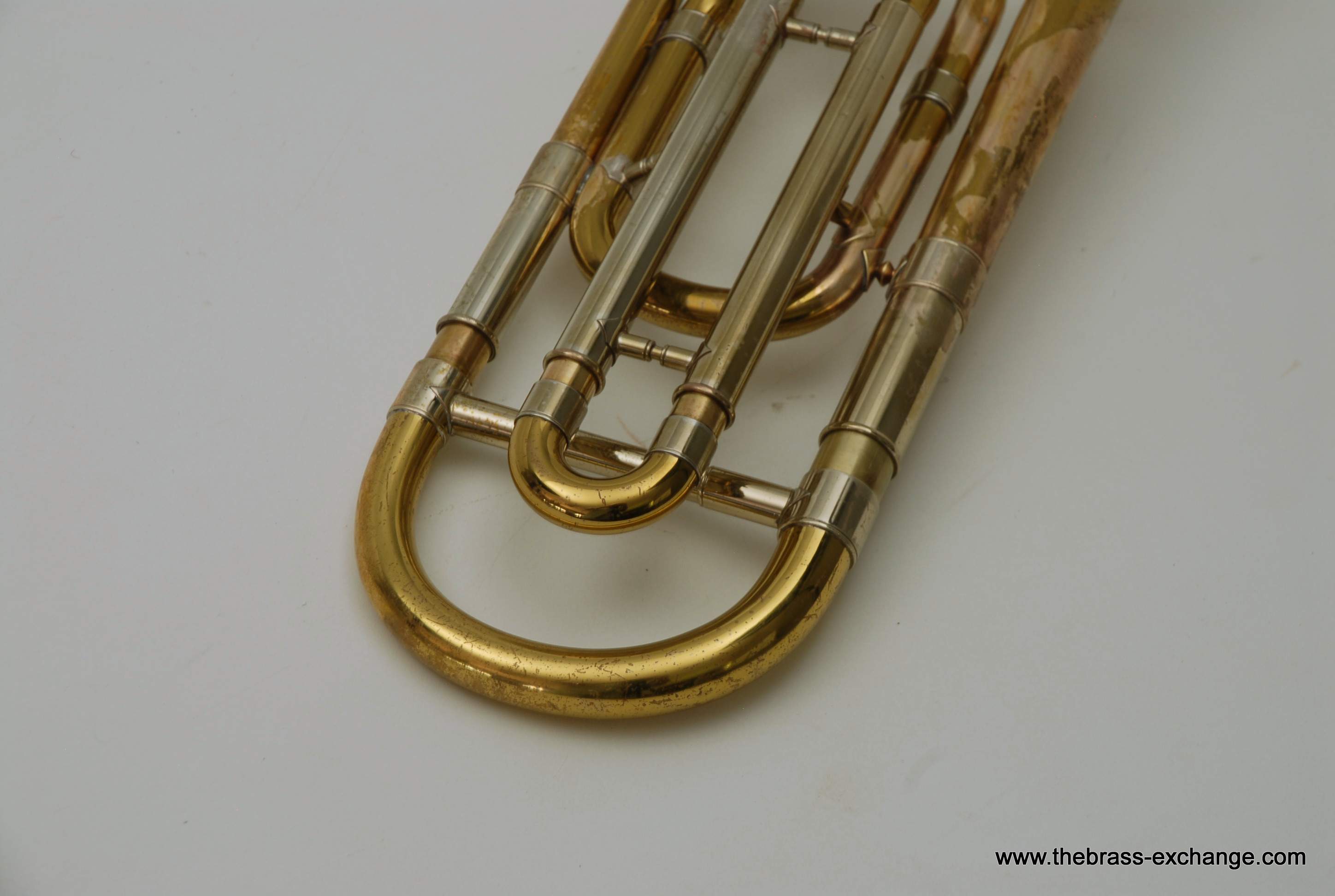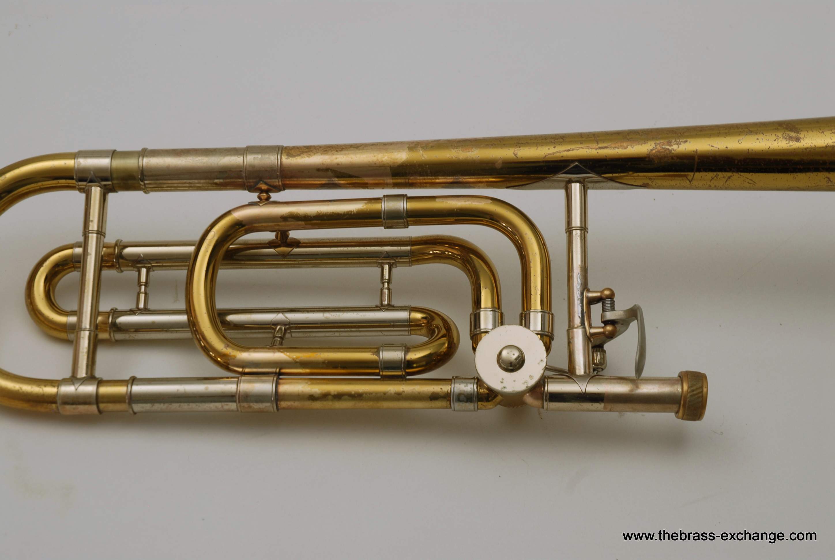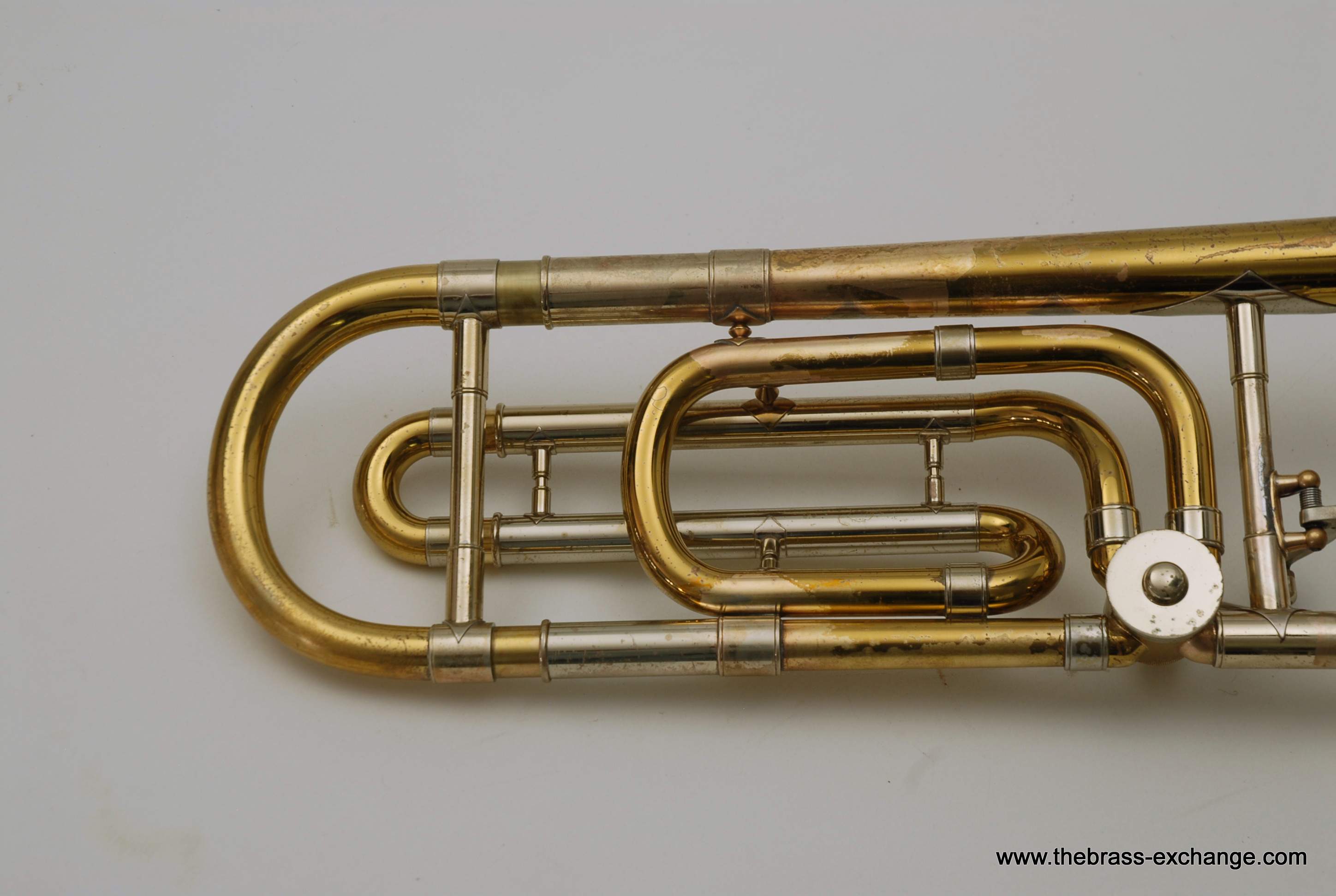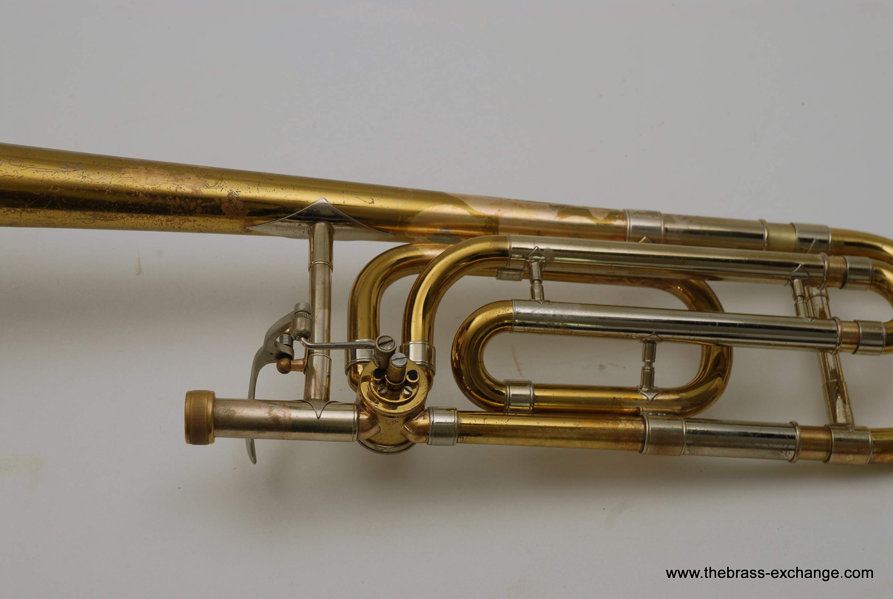 Bach 42B SN 23132 Made in the 1970's. Traditional wrap, yellow brass bell 8.5" with standard weight handslide. Has had full shop service here including chemical bath. Dents and dings have been removed. Considerable lacquer wear, but still plays like a beast. Has a great slide. No inner tube plating loss or any red rot. Would be a perfect pro level trigger horn for any player on a budget. Original case.