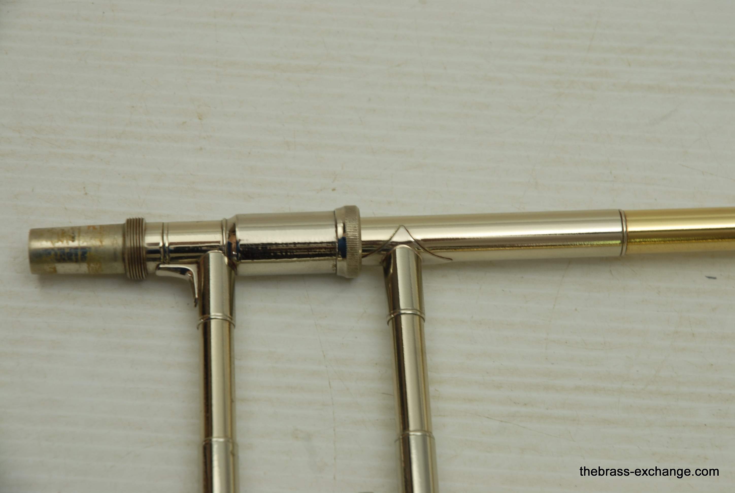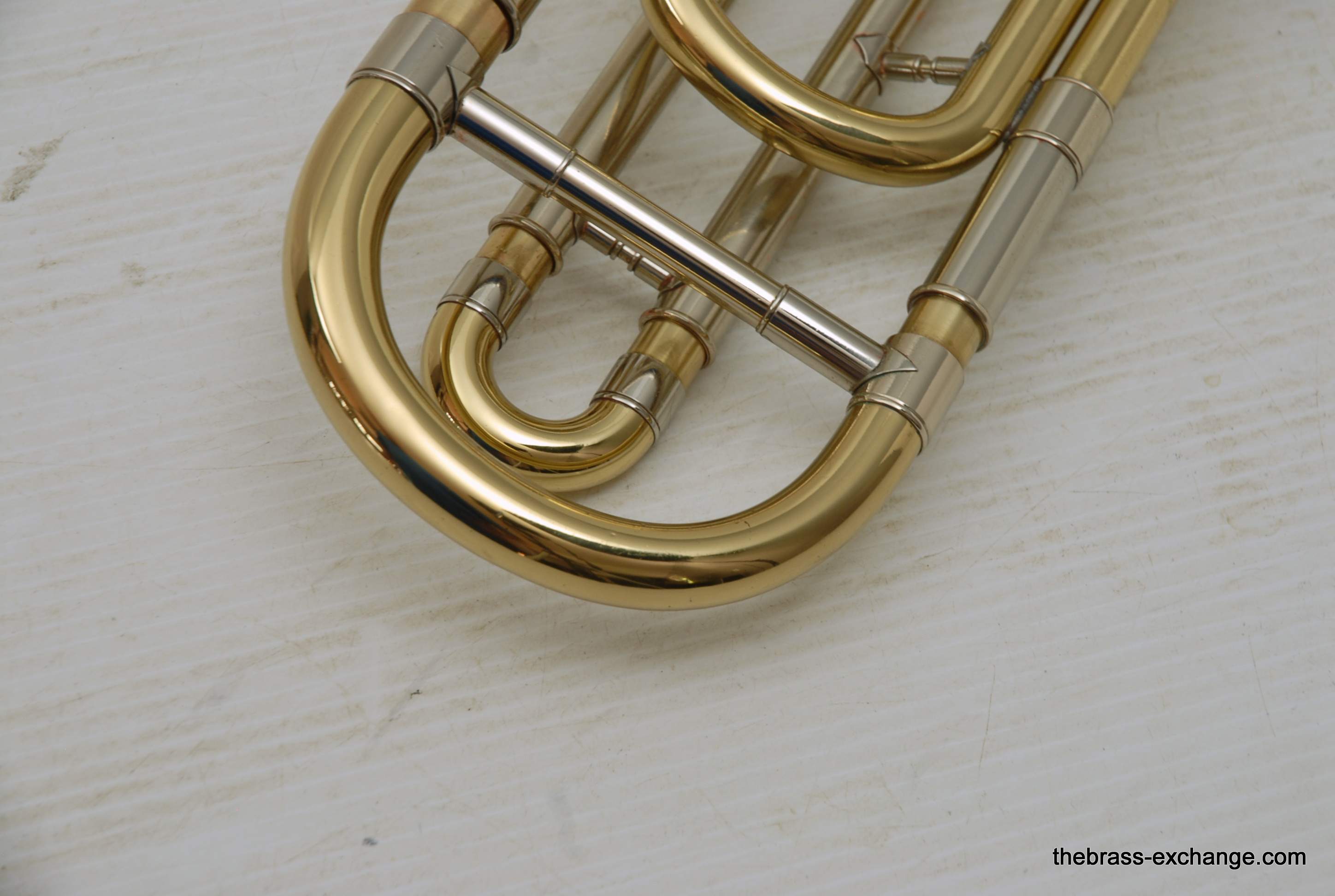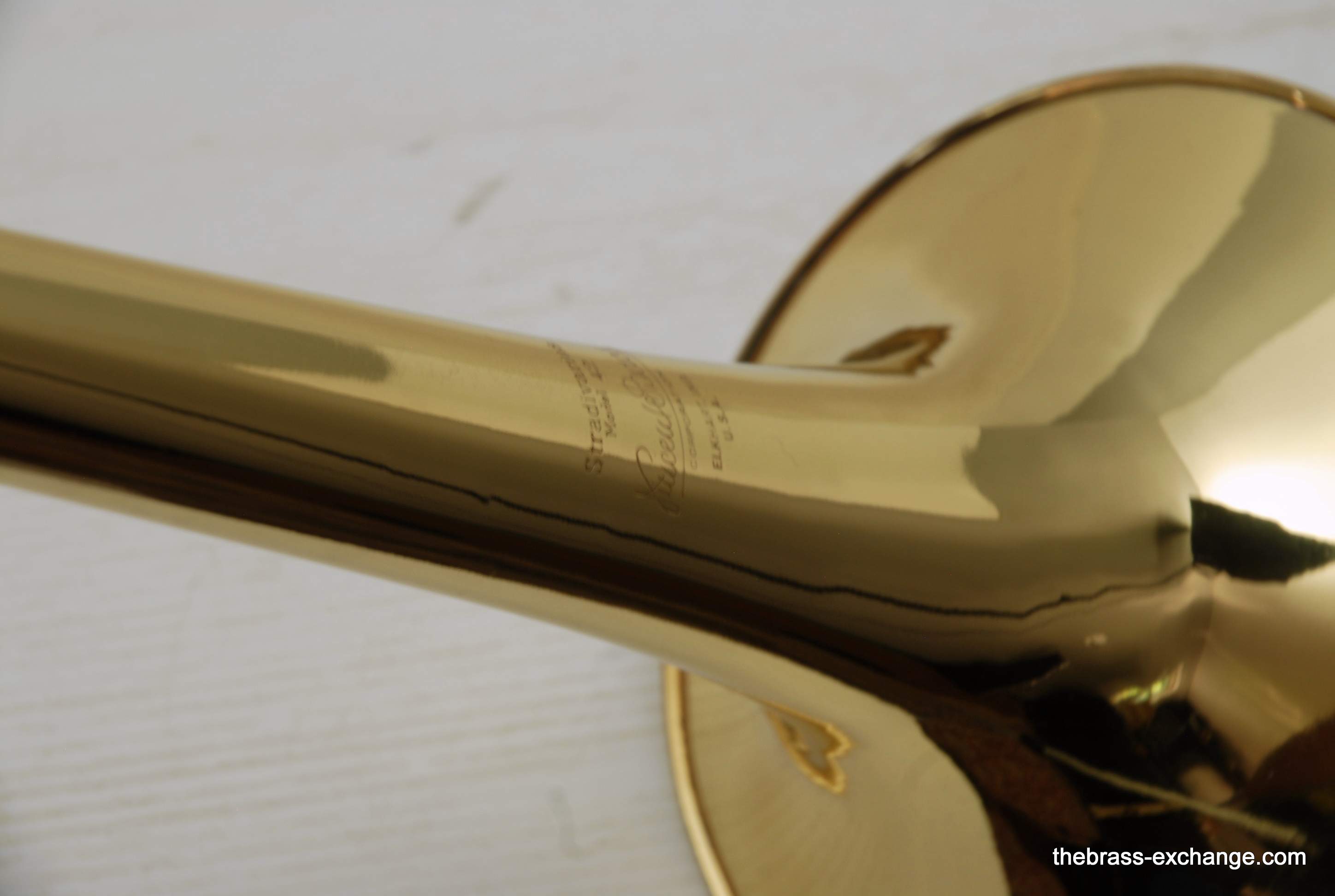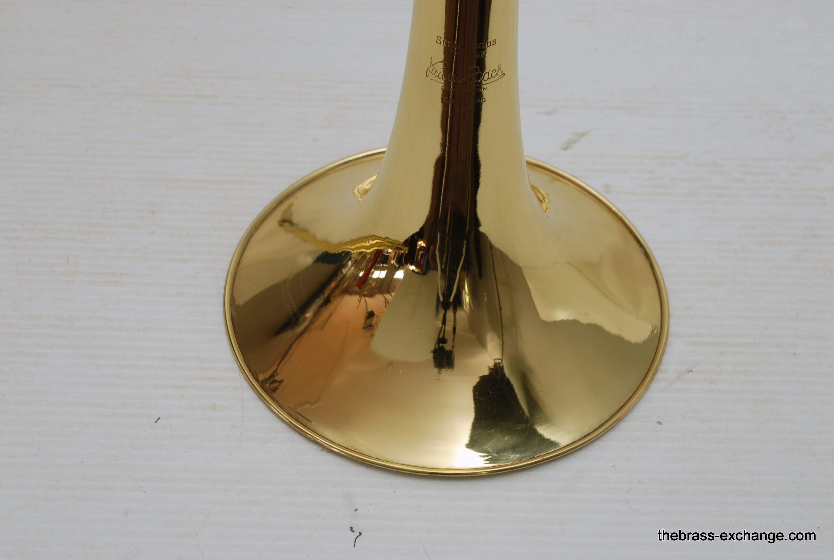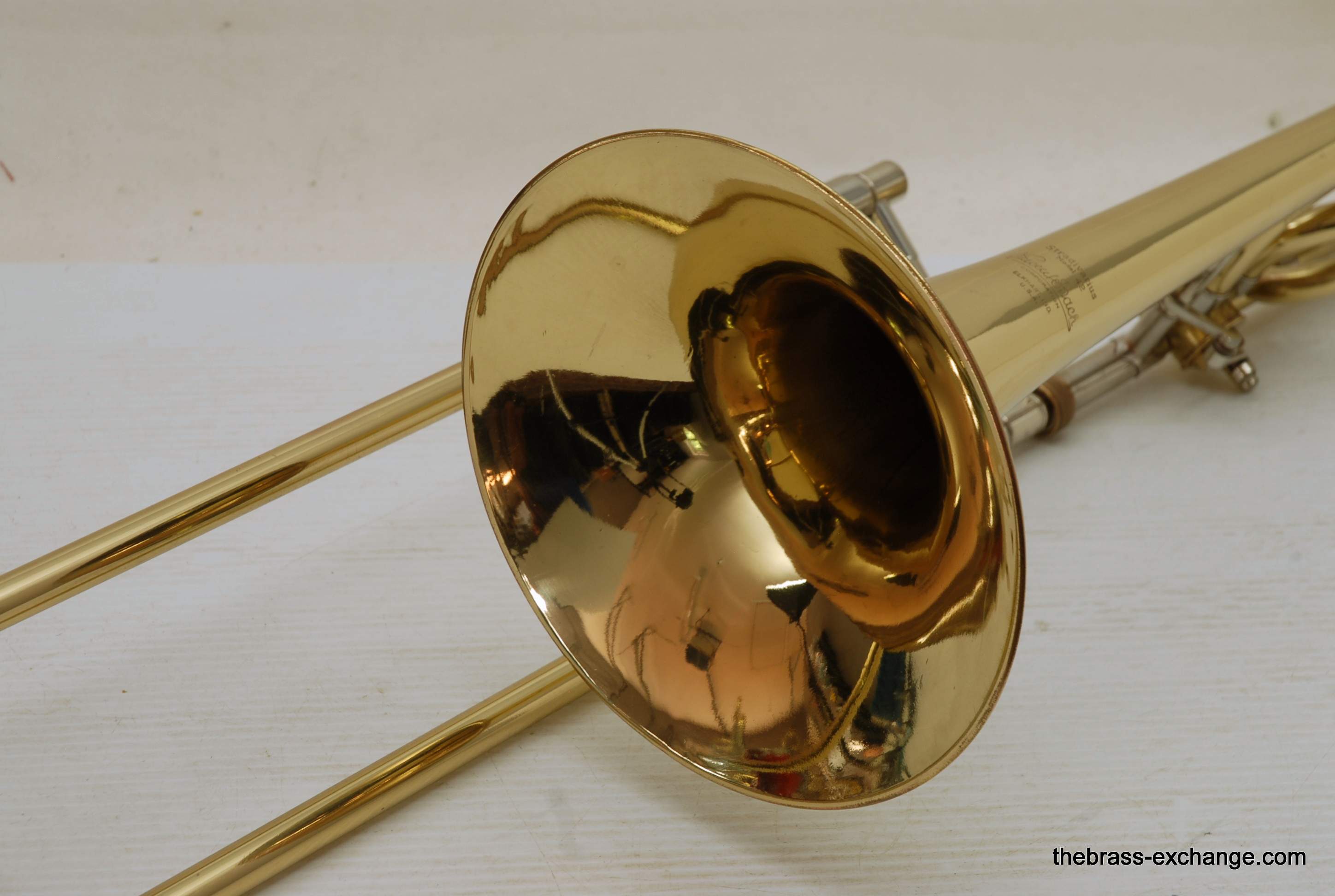 Bach 42B Corporation Era Make, Vintage 1974. SN 17103.  This is the classic 42B with 8.5" one-piece yellow brass bell, traditional rotor, standard weight slide.  Has had full shop service, including chemical bath, rotor service, slide adjusted.  Has had a previous new lacquer job, excellent quality work.   This horn plays proper, sounds gorgeous and looks terrific.  The slide is very good, falls freely with gravity.  High level players with super selective slide expectations may feel that a slide tech could get a little more out of it, but it is totally playable as is.  It's not a 10 out of 10 currently, but has potential, probably an 8 right now.  If you really like the horn you could take it to your slide guy for additional set up, or send it in to us and will do it for an additional cost.  Includes a new Marco Magi Lighweight Series Case with back pack strap option, included.  This is a one of a kind case and is new, just arrived from Italy.  It has the NN series main panels and burgundy top and bottom panels.  Is a gorgeous lightweight hard shell case that will not disappoint, is considerably lighter than the NN custom series.  Overall it is a great horn.  Would be ideal for an advancing player looking for a first pro level horn, or a serious Bach collector player looking for something special.  In-stock for immediate delivery.