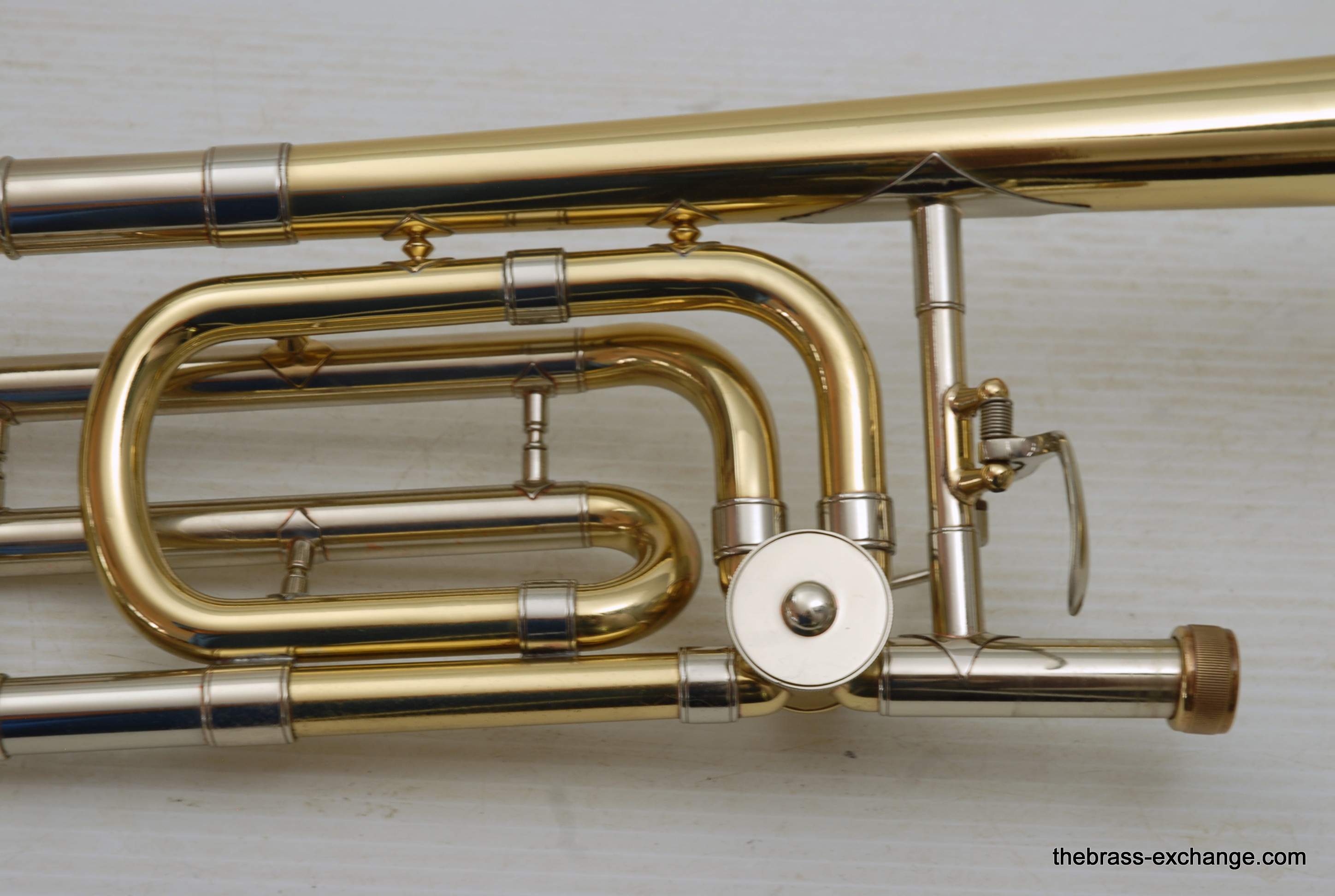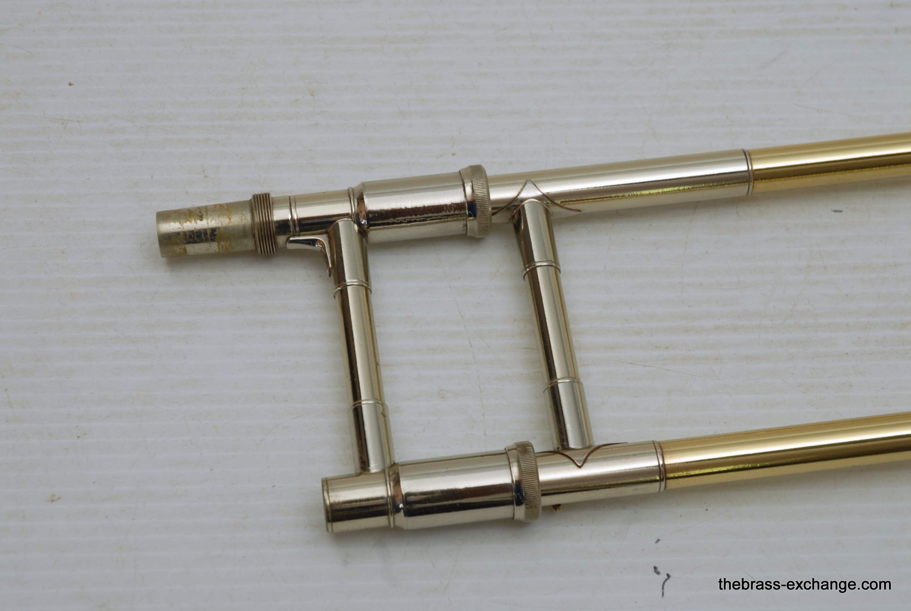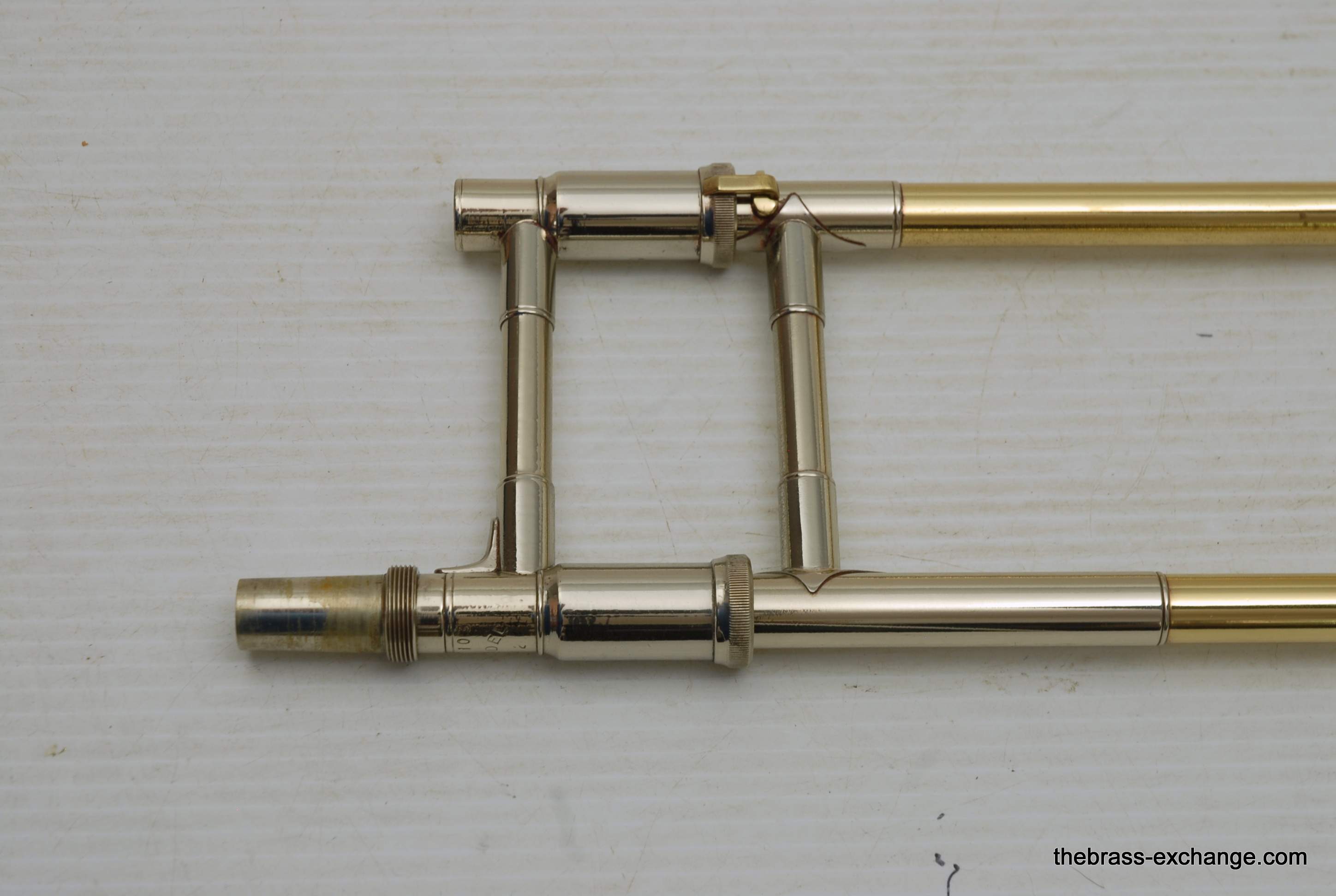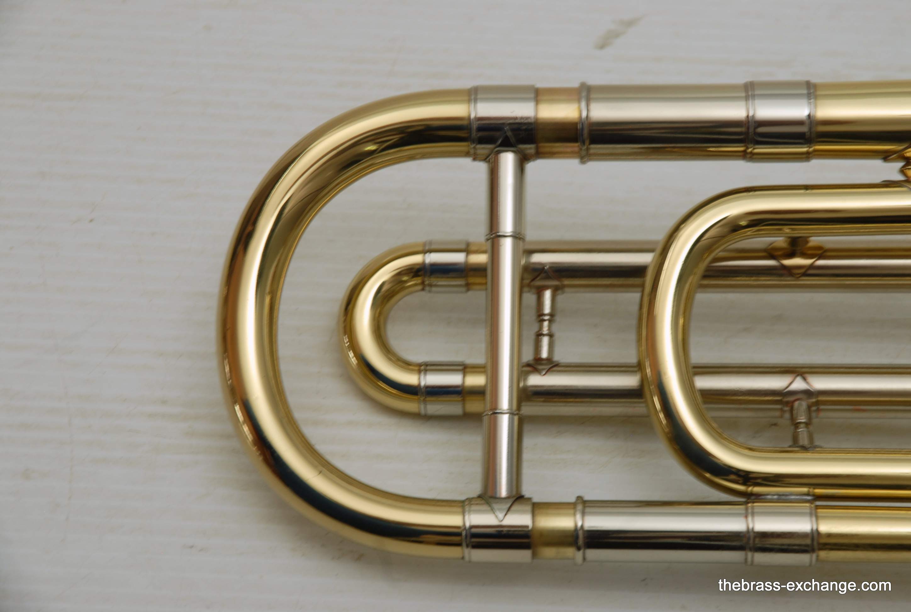 Bach 42B Corporation Era Make, Vintage 1974. SN 17103.  This is the classic 42B with 8.5" one-piece yellow brass bell, traditional rotor, standard weight slide.  Has had full shop service, including chemical bath, rotor service, slide adjusted.  Has had a previous new lacquer job, excellent quality work.   This horn plays proper, sounds gorgeous and looks terrific.  The slide is very good, falls freely with gravity.  High level players with super selective slide expectations may feel that a slide tech could get a little more out of it, but it is totally playable as is.  It's not a 10 out of 10 currently, but has potential, probably an 8 right now.  If you really like the horn you could take it to your slide guy for additional set up, or send it in to us and will do it for an additional cost.  Includes a new Marco Magi Lighweight Series Case with back pack strap option, included.  This is a one of a kind case and is new, just arrived from Italy.  It has the NN series main panels and burgundy top and bottom panels.  Is a gorgeous lightweight hard shell case that will not disappoint, is considerably lighter than the NN custom series.  Overall it is a great horn.  Would be ideal for an advancing player looking for a first pro level horn, or a serious Bach collector player looking for something special.  In-stock for immediate delivery.