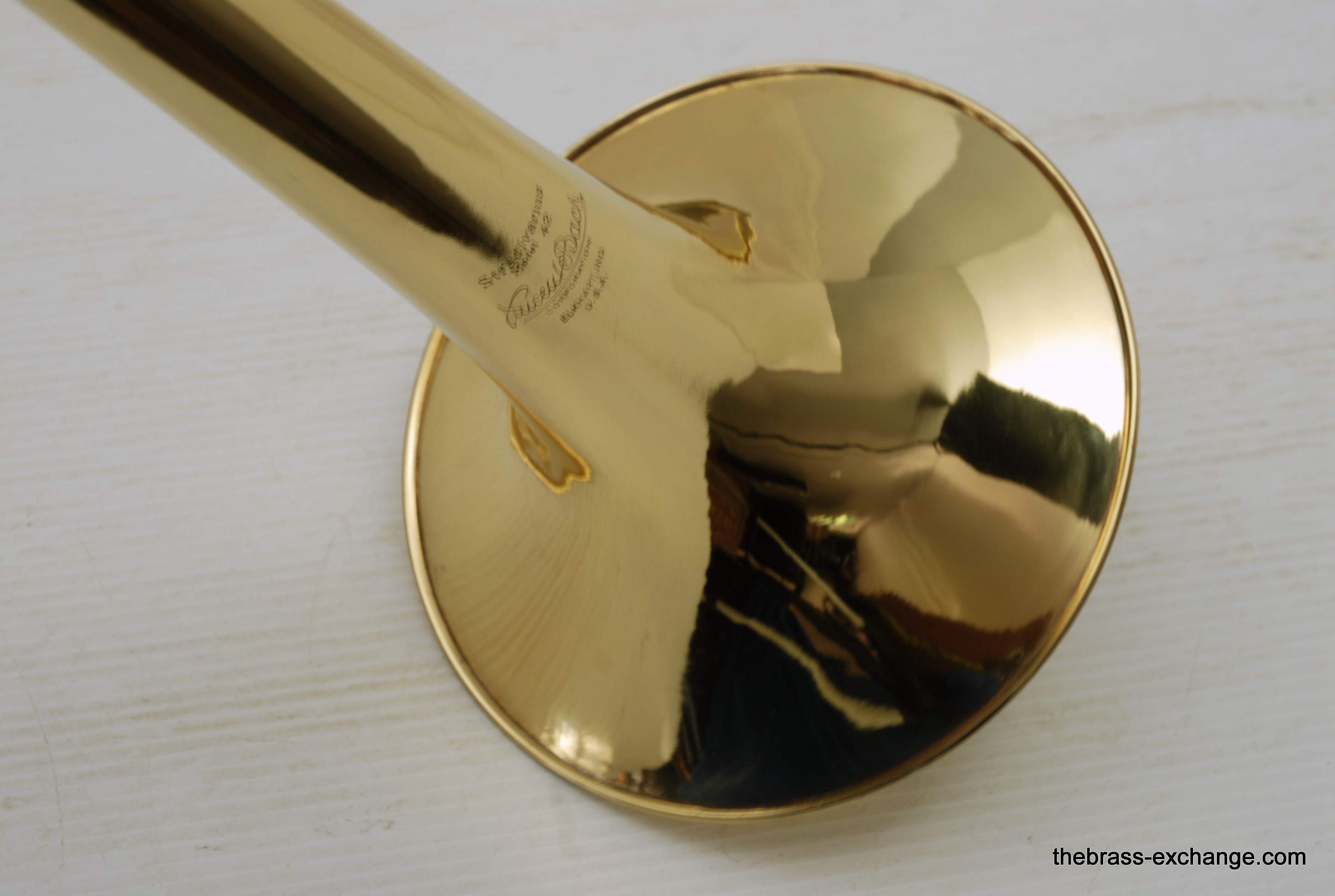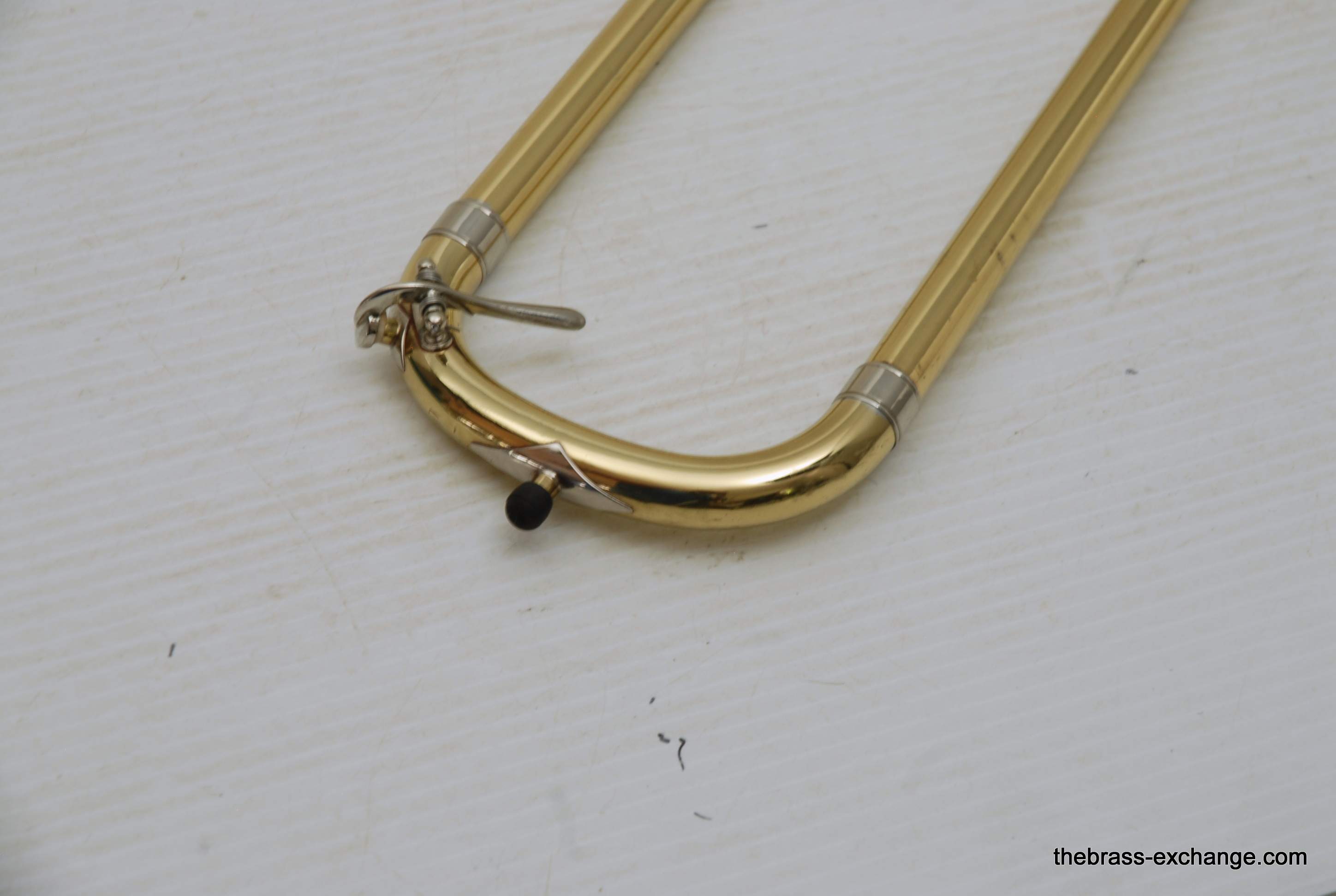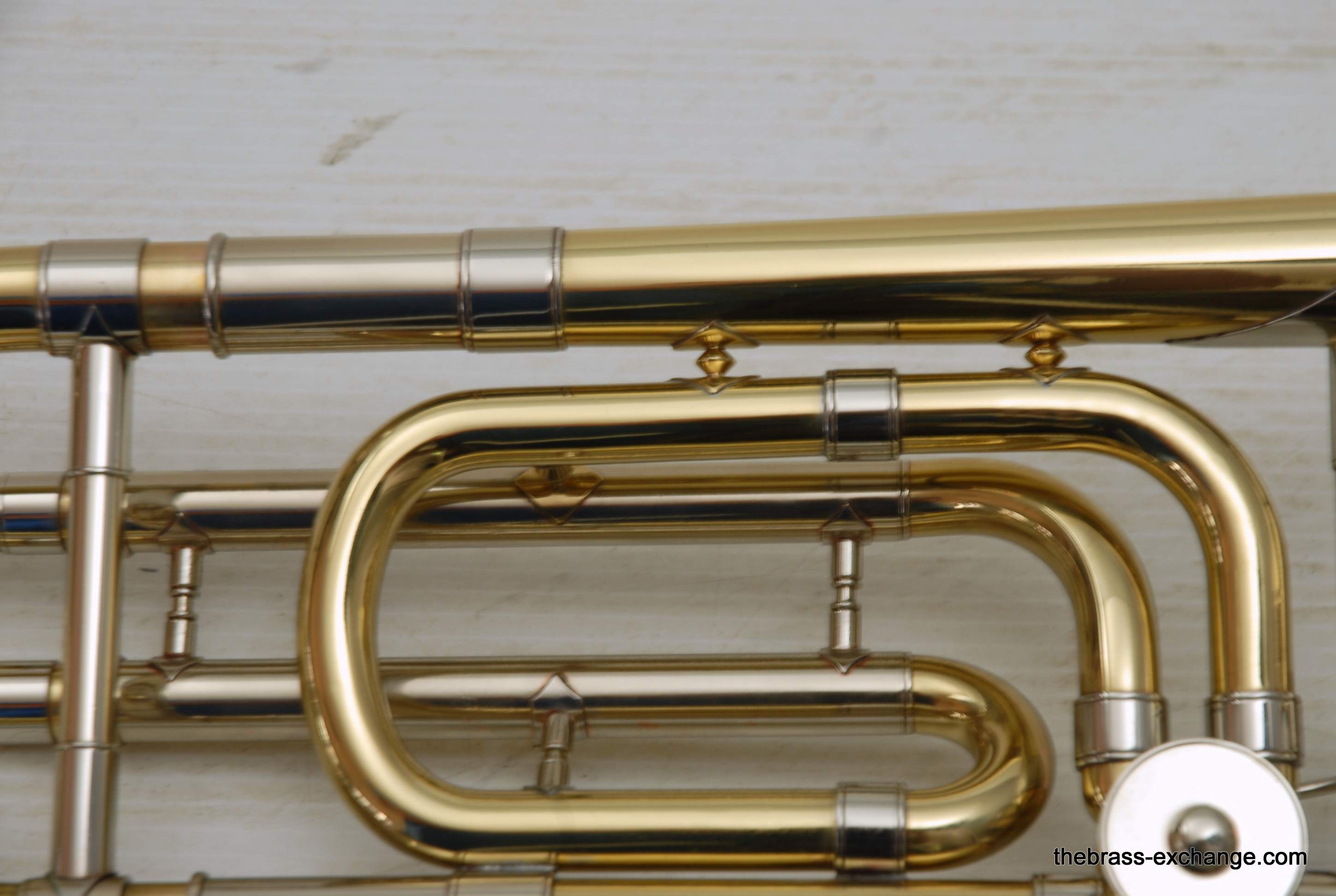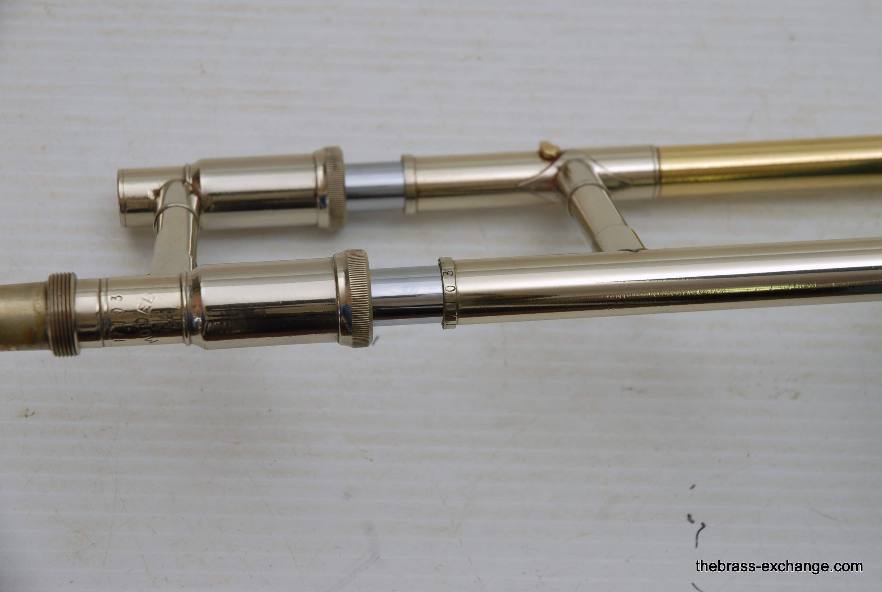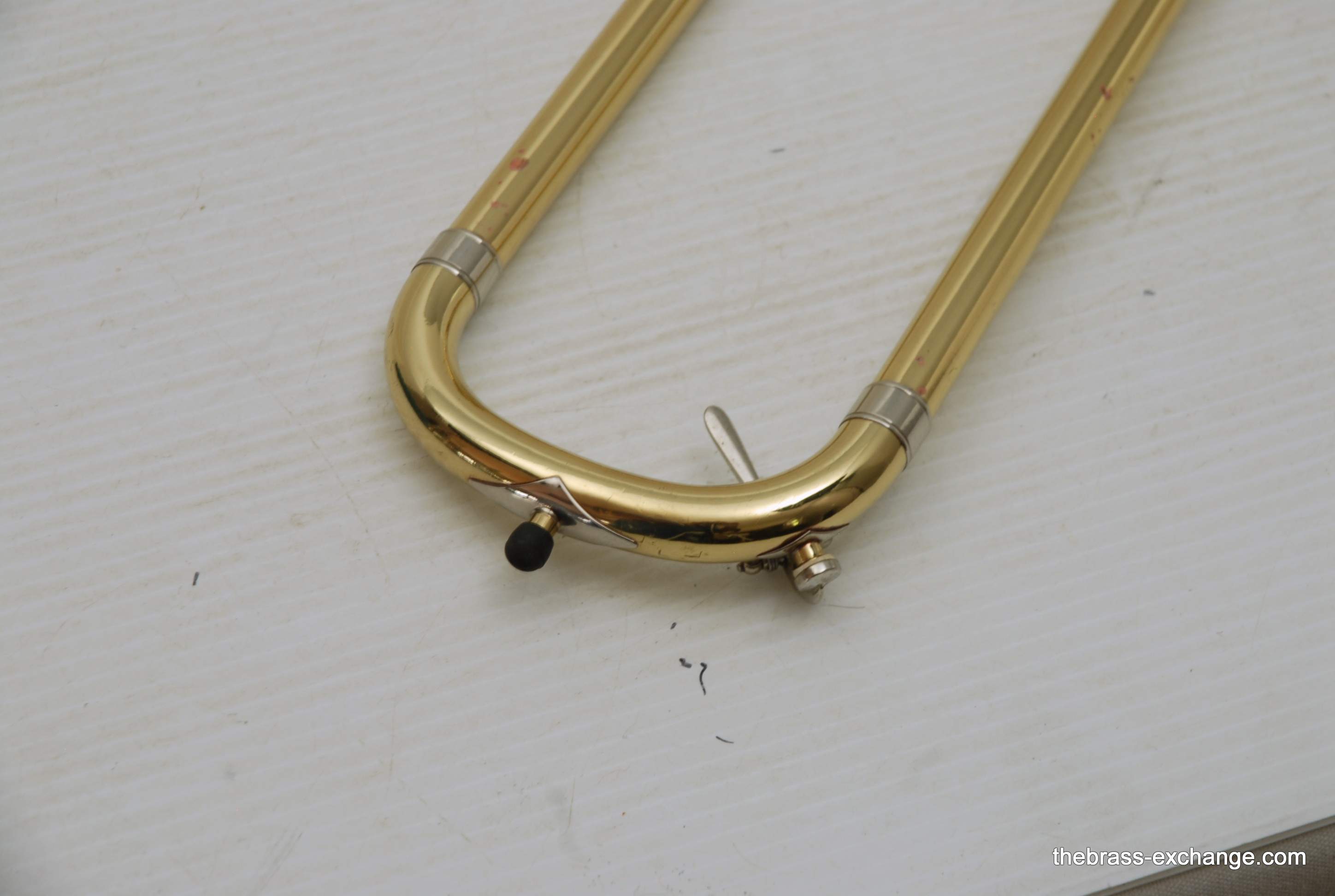 Bach 42B Corporation Era Make, Vintage 1974. SN 17103.  This is the classic 42B with 8.5" one-piece yellow brass bell, traditional rotor, standard weight slide.  Has had full shop service, including chemical bath, rotor service, slide adjusted.  Has had a previous new lacquer job, excellent quality work.   This horn plays proper, sounds gorgeous and looks terrific.  The slide is very good, falls freely with gravity.  High level players with super selective slide expectations may feel that a slide tech could get a little more out of it, but it is totally playable as is.  It's not a 10 out of 10 currently, but has potential, probably an 8 right now.  If you really like the horn you could take it to your slide guy for additional set up, or send it in to us and will do it for an additional cost.  Includes a new Marco Magi Lighweight Series Case with back pack strap option, included.  This is a one of a kind case and is new, just arrived from Italy.  It has the NN series main panels and burgundy top and bottom panels.  Is a gorgeous lightweight hard shell case that will not disappoint, is considerably lighter than the NN custom series.  Overall it is a great horn.  Would be ideal for an advancing player looking for a first pro level horn, or a serious Bach collector player looking for something special.  In-stock for immediate delivery.