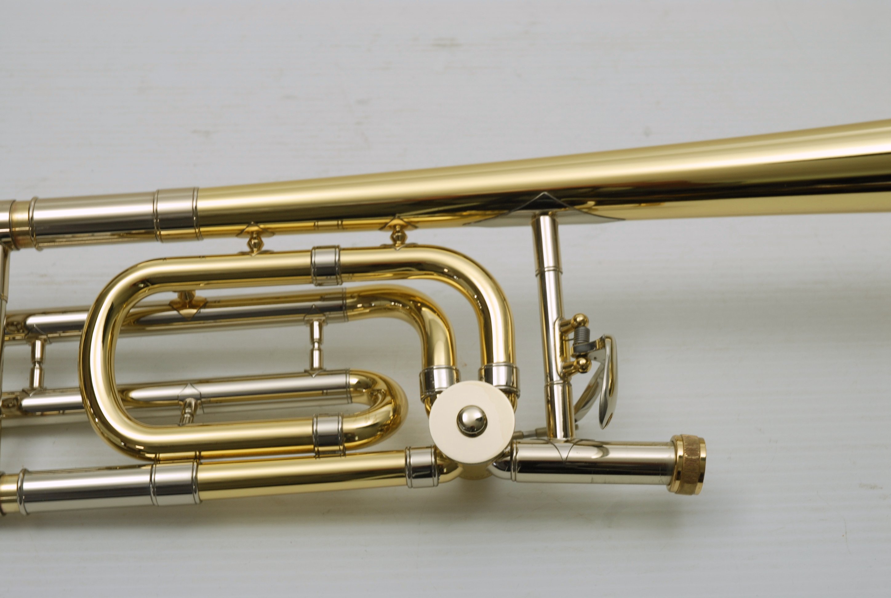 This traditional wrap model features the classic 8.5" yellow brass bell paired with a standard rotor valve, offering that broad, rich Bach sound that has become a benchmark for professional large bore tenor trombones. The standard weight 42 handslide is in excellent condition and moves effortlessly, requiring no additional service to improve playability.