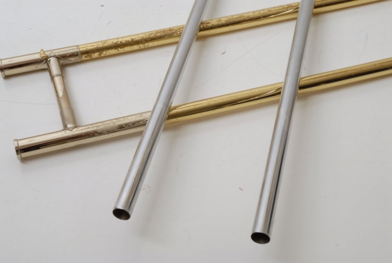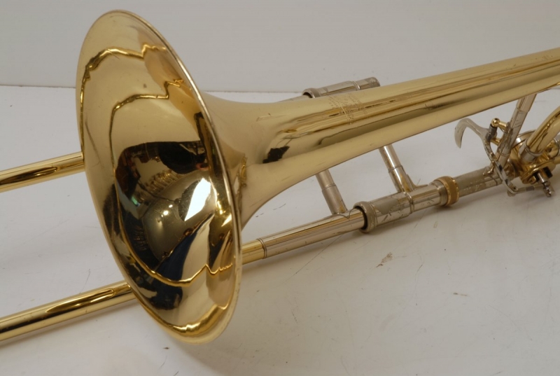 Bach 42BO Open Wrap with new iPac case by Protec. Freshly cleaned and serviced. Valve and slide are excellent- has great playbility. "Open Wrap" will ensure and "Open" sound in the trigger register, so it is described by many educators today, thus the popularity of the 42BO. Probably one of the most popular models widely used today. Has had a few dings taken out, some evidence of previous repair, still a solid player. Would make an excellent first trigger horn for an advancing student. Includes mouthpiece and trombone maintenance kit. This model sells new today for over $3000. Save Now, Play Great!