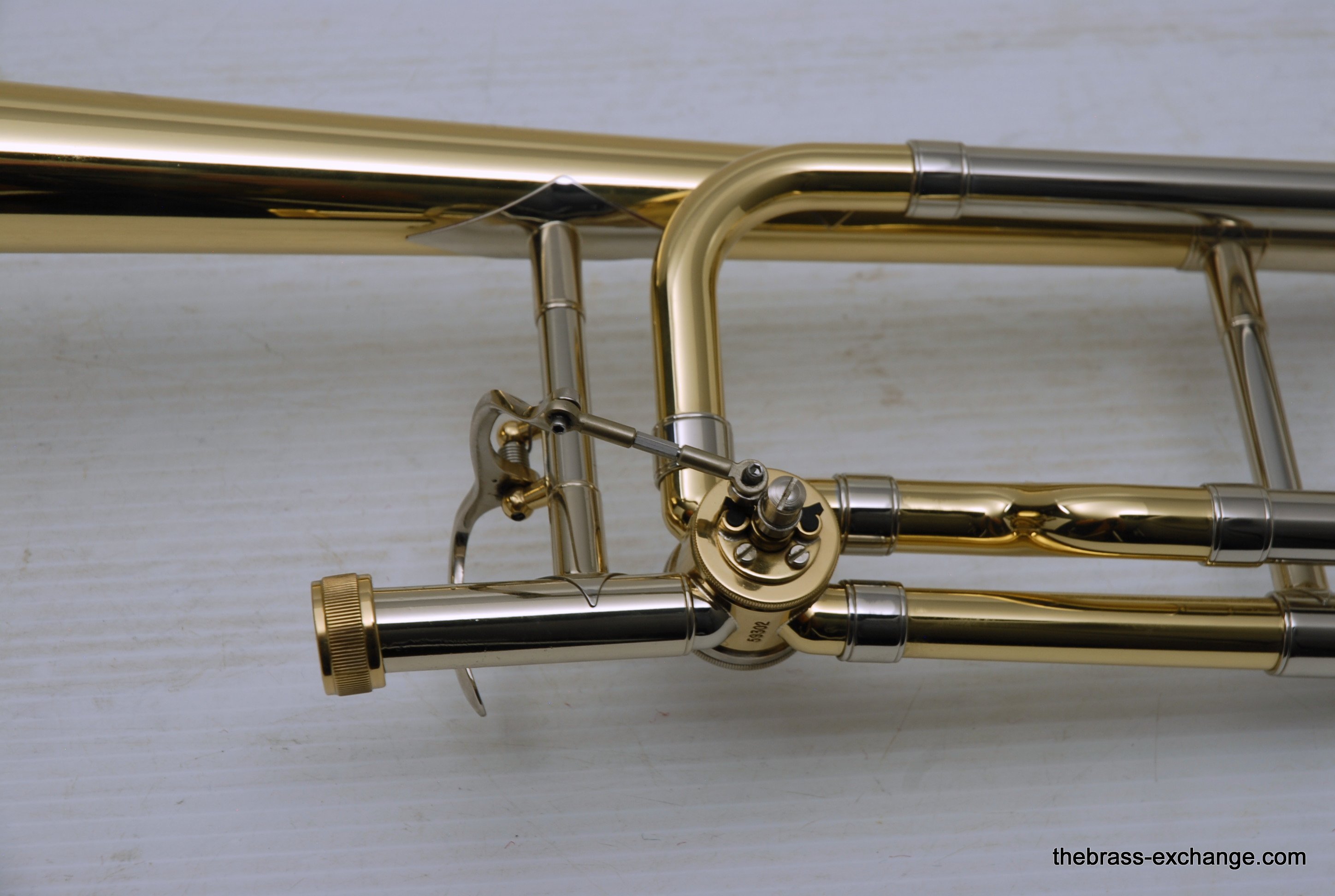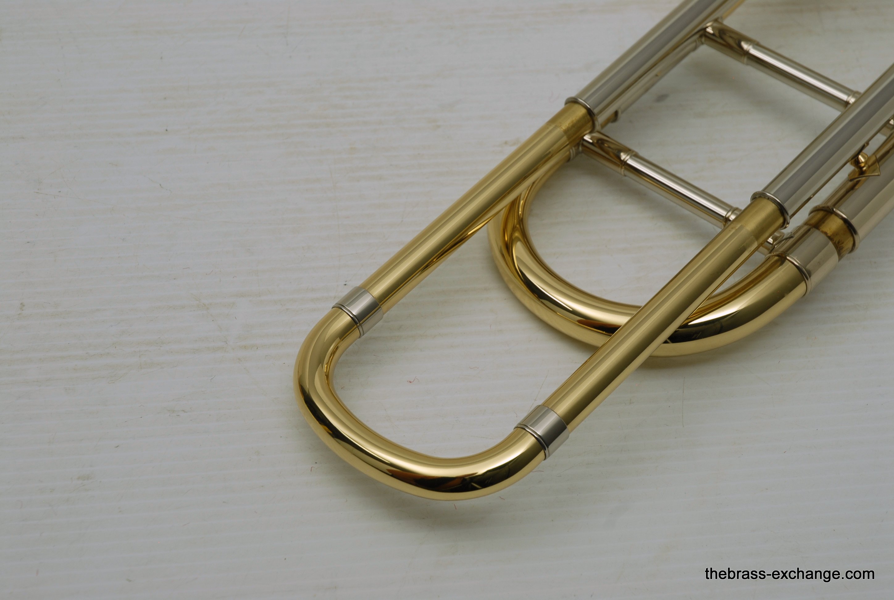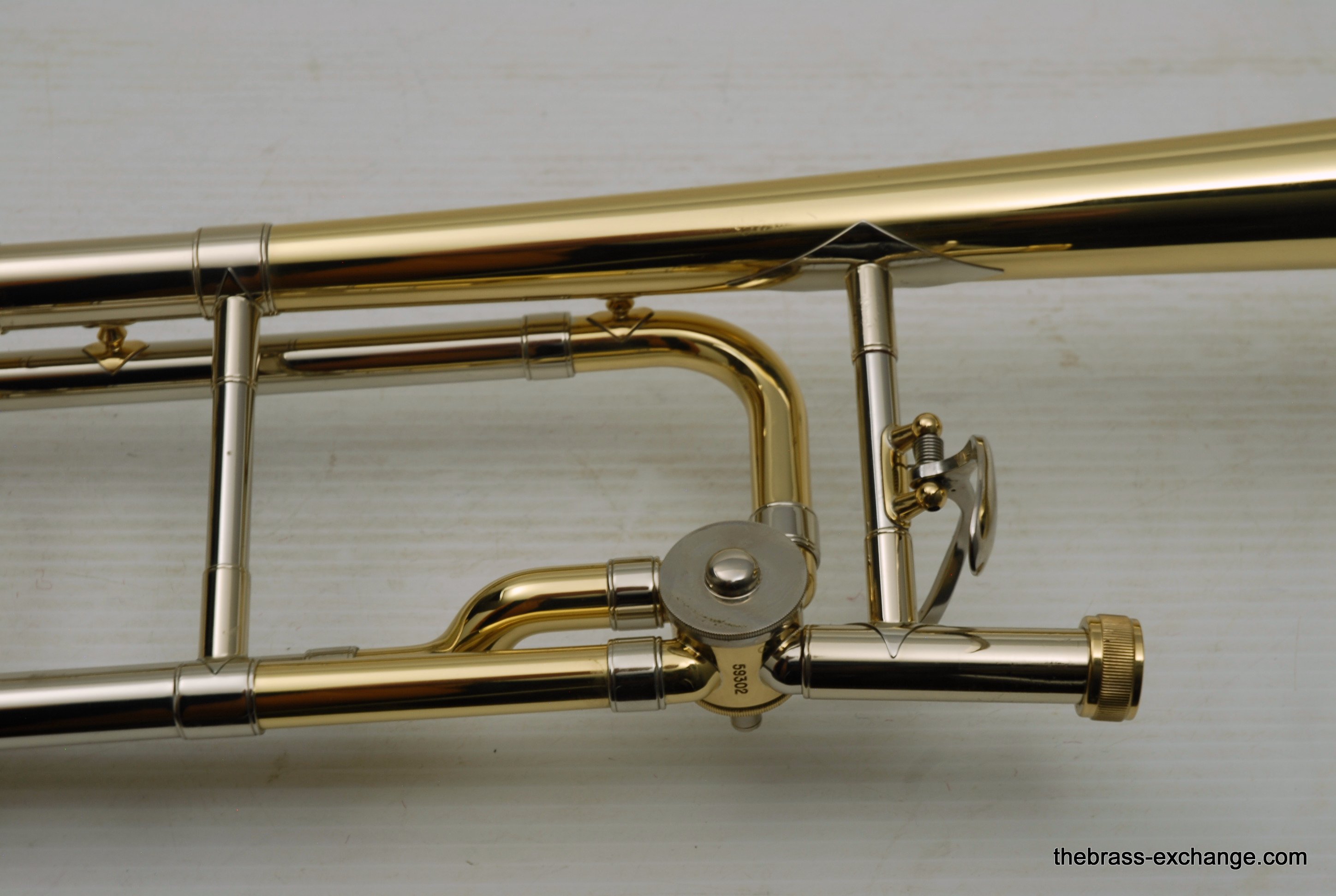 Bach 42BO with S/N 197xxx, this is the classic 42BO large bore tenor. Has 8.5" Yellow brass bell, .547 bore standard weight slide. Has not been used, really at all. You can tell once you look at it. Even the case handle still has the plastic on it. The case looks different than most of the Bach cases becuase this case was only available outside the U.S.  We checked it over, play tested, and conclude no issues with valve, slide, or lacquer. Any player looking for savings on a new 42BO will appreciate this one. Many Bach players today feel that the quality of Bach make has been inconsistent over the past few years. This one is most likely late 1990's and the quality is excellent. Once you play it you know. Handslide is super straight and without defect. Valve section is smooth and quiet. It's a good player. A new 42BO sells new today for $3400, some retailers offer a 10% on line discount, that makes the net cost $3060 plus tax. We believe that this is an excellent value at $2095 for a new 42BO. In-stock for immediate delivery.