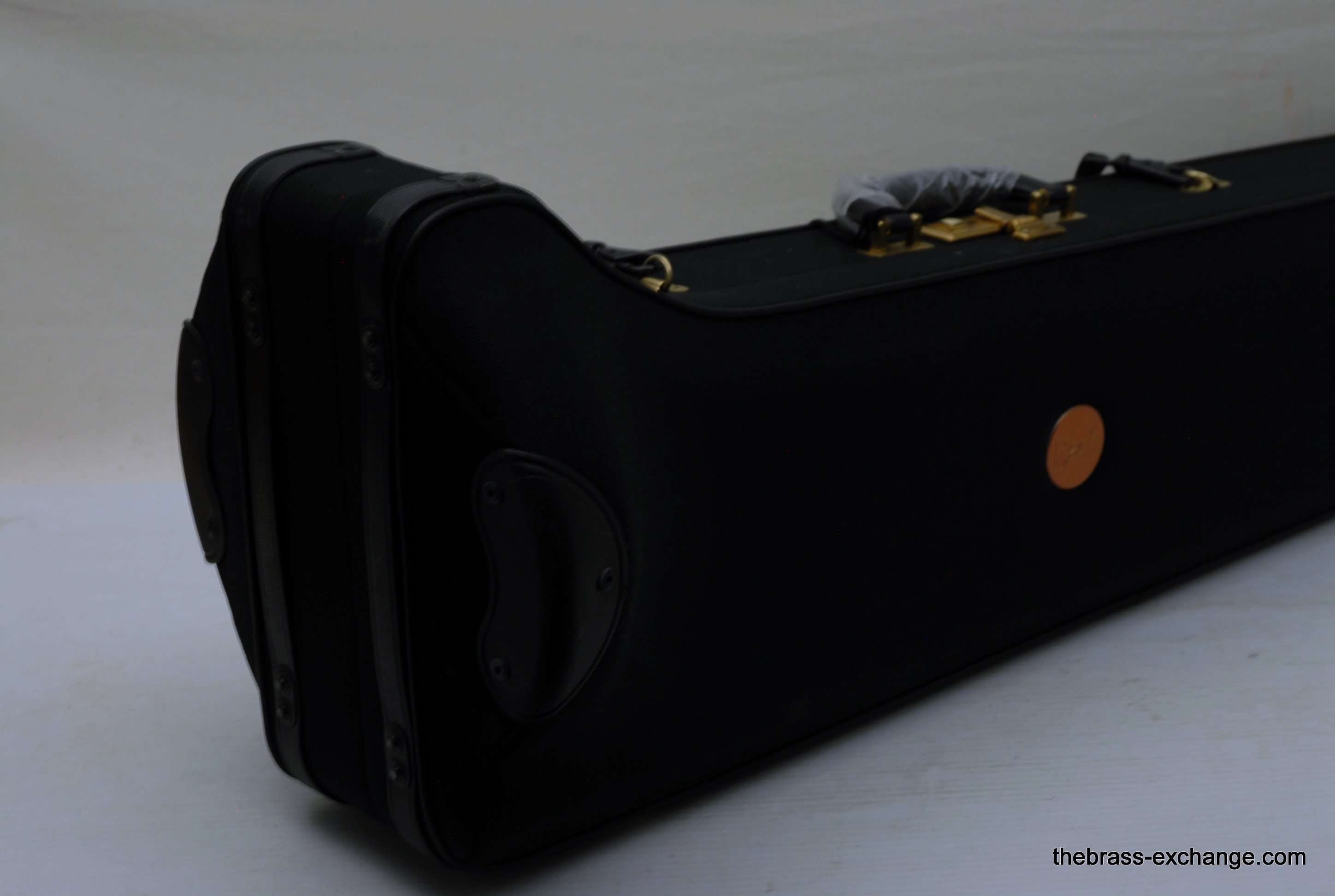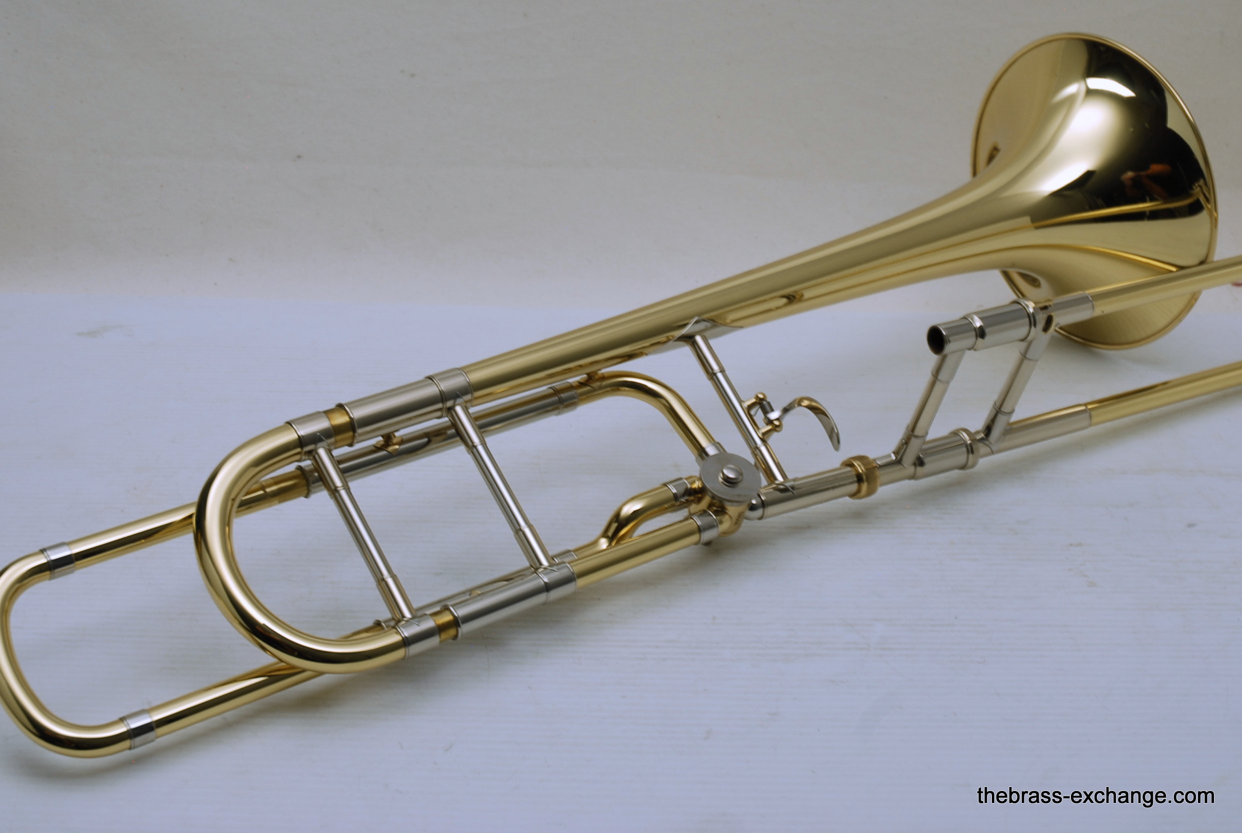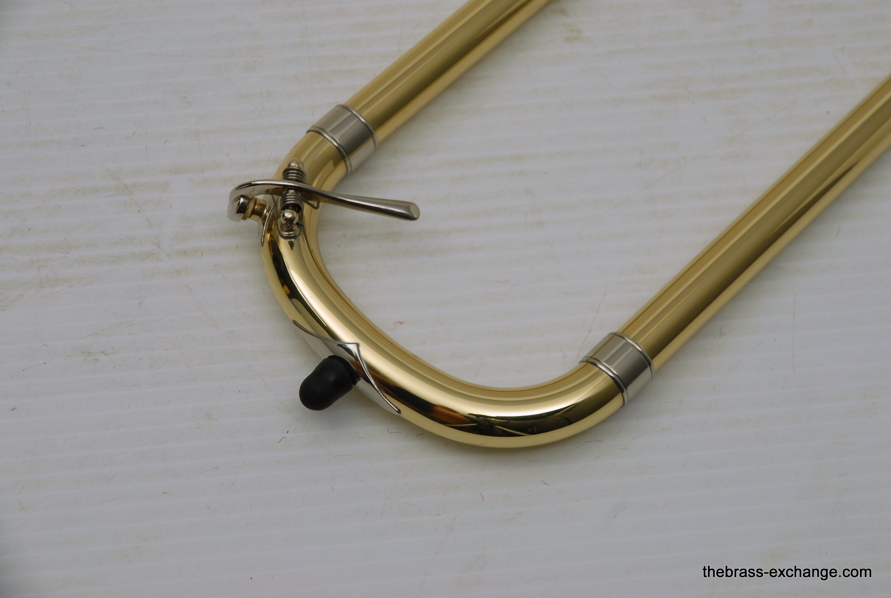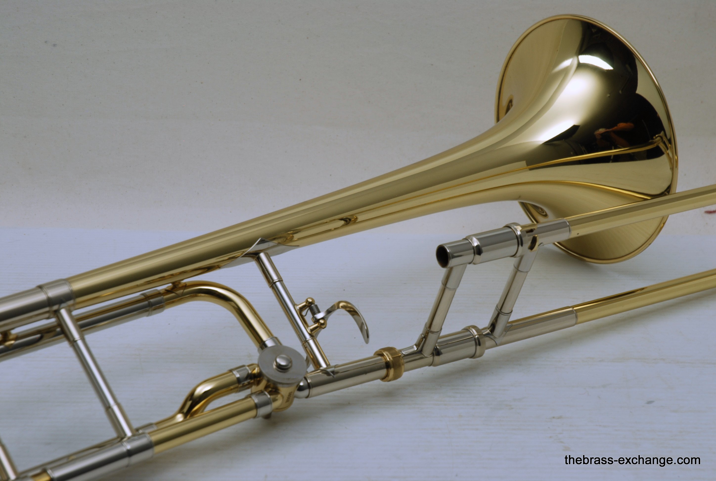 Bach 42BO with S/N 197xxx, this is the classic 42BO large bore tenor. Has 8.5" Yellow brass bell, .547 bore standard weight slide. Has not been used, really at all. You can tell once you look at it. Even the case handle still has the plastic on it. The case looks different than most of the Bach cases becuase this case was only available outside the U.S.  We checked it over, play tested, and conclude no issues with valve, slide, or lacquer. Any player looking for savings on a new 42BO will appreciate this one. Many Bach players today feel that the quality of Bach make has been inconsistent over the past few years. This one is most likely late 1990's and the quality is excellent. Once you play it you know. Handslide is super straight and without defect. Valve section is smooth and quiet. It's a good player. A new 42BO sells new today for $3400, some retailers offer a 10% on line discount, that makes the net cost $3060 plus tax. We believe that this is an excellent value at $2095 for a new 42BO. In-stock for immediate delivery.