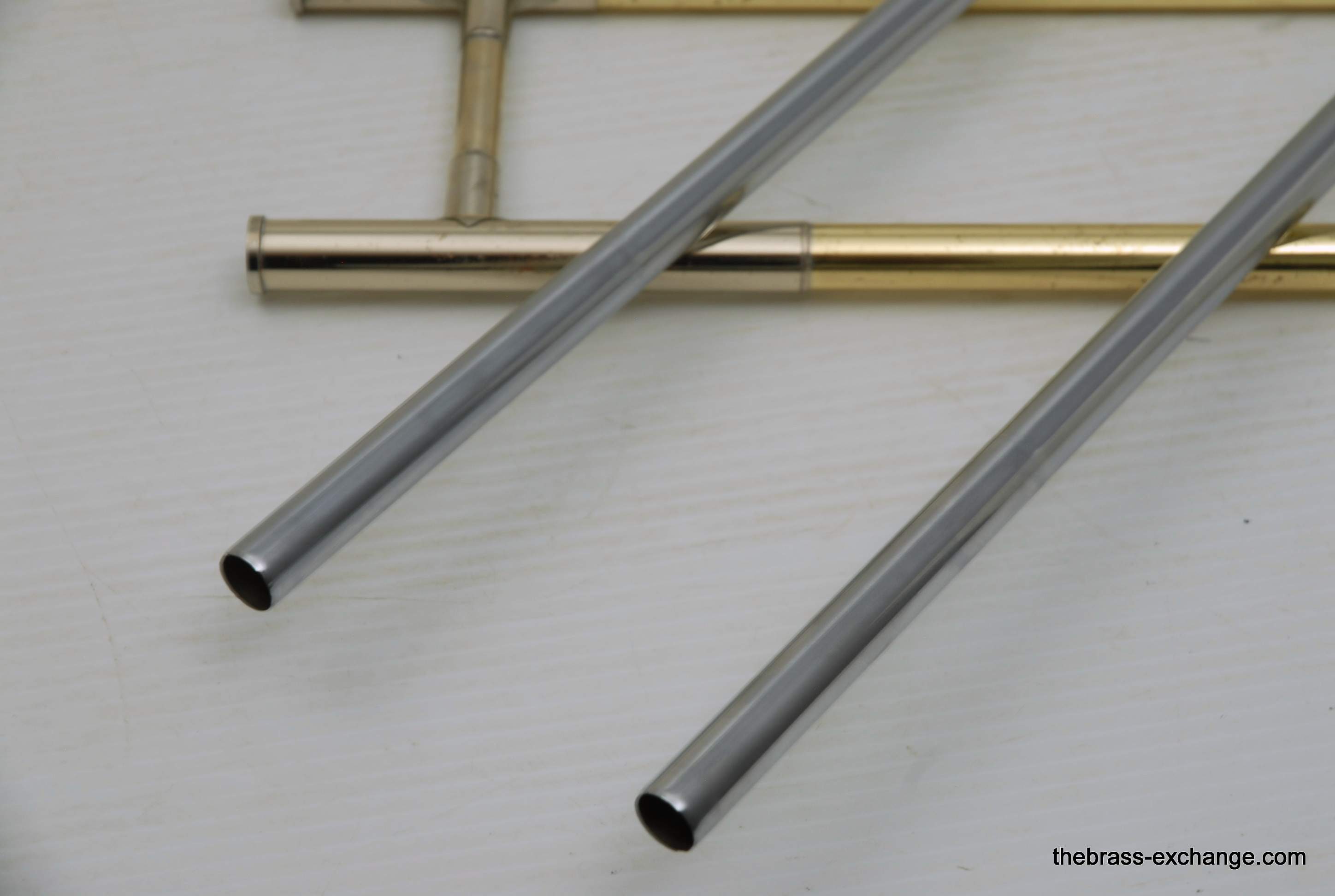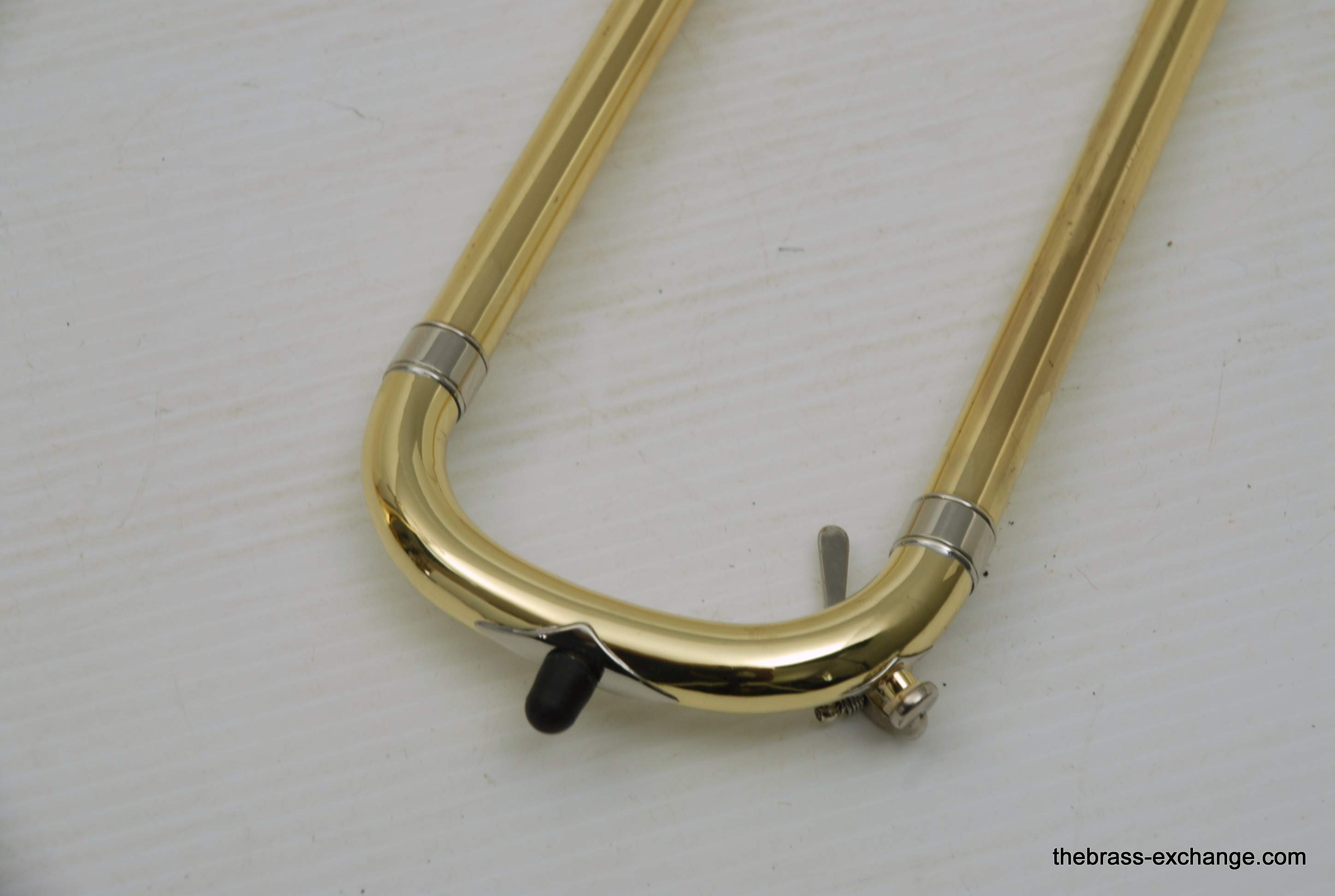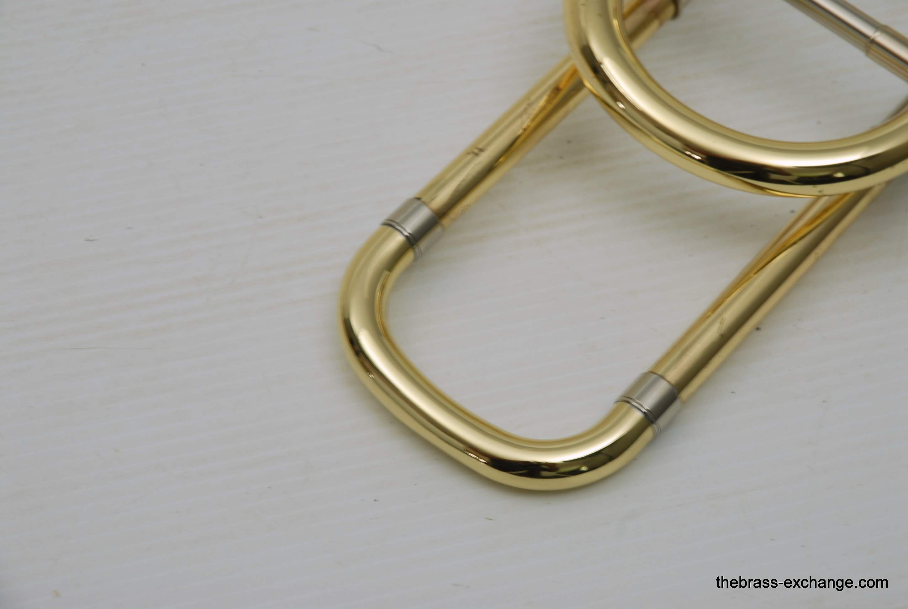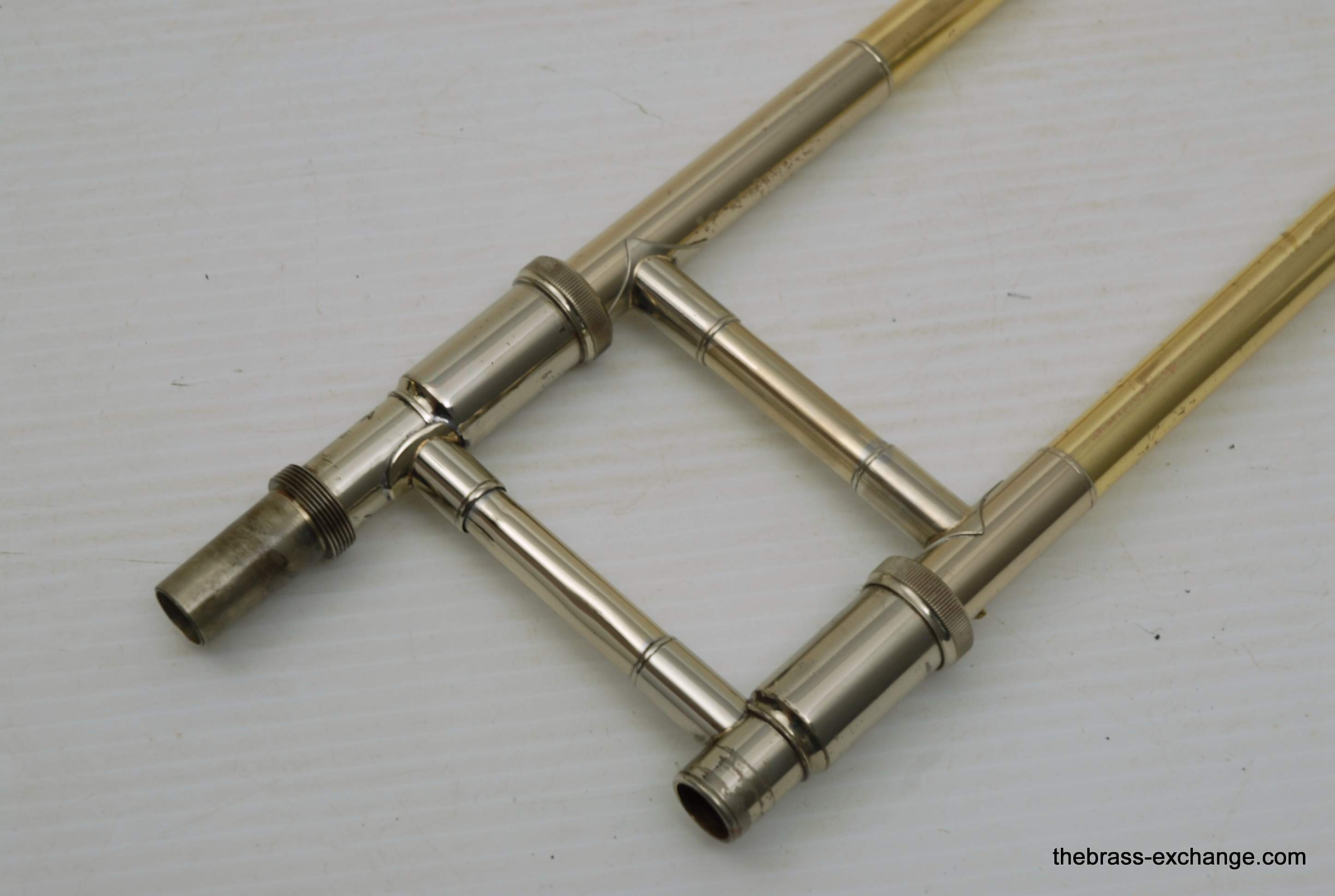 Bach 42BO Large Bore Tenor, Open Wrap Model from the mid 1990's.  This is the classic 42BO that is most reccomended by band directors and private teachers.  Has the classic 42B 8.5" yellow brass bell, standard weight large bore .547 handslide, and open wrap rotor.  Has had full shop service, chemical bath, relacquered F tuning slide, and handslide endcrook.  All other parts are original and original lacquer.  This is a very straight 42BO without any mechanical or issues with playability.  Scratches and worn look to the lacquer is the only issue, of course reflected in the price.  Comes with original case and mouthpiece.  Would be an excellent choice for a first pro-level large bore tenor for an advancing student, or any player looking to play a 42BO.  In stock for immediate delivery.
