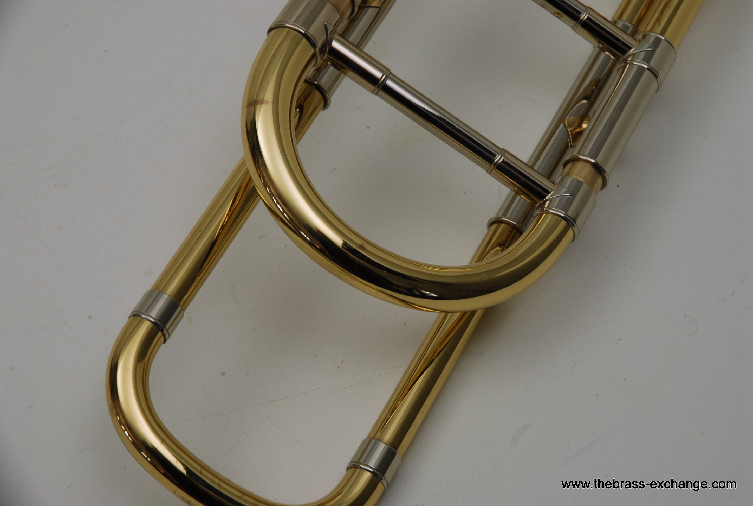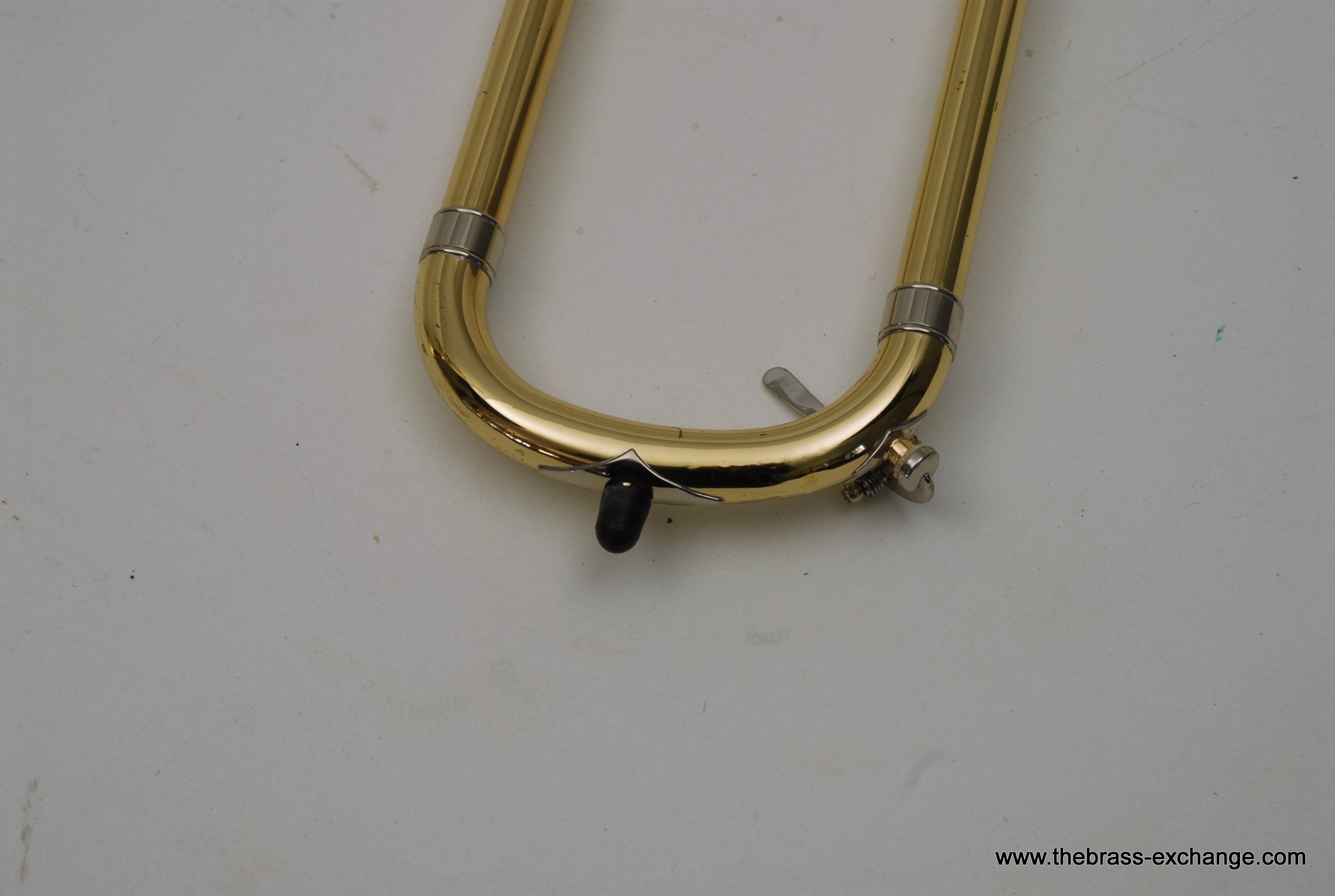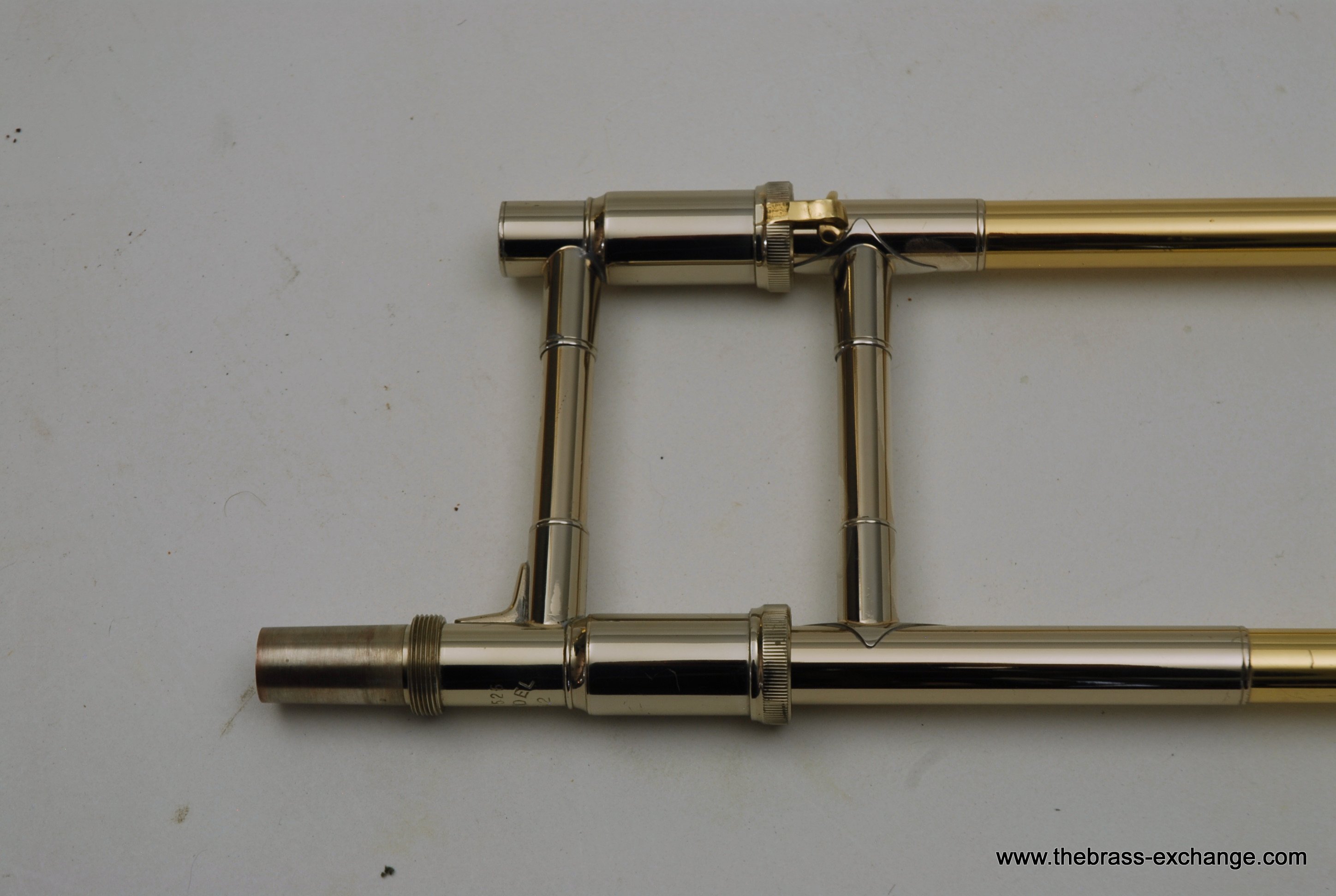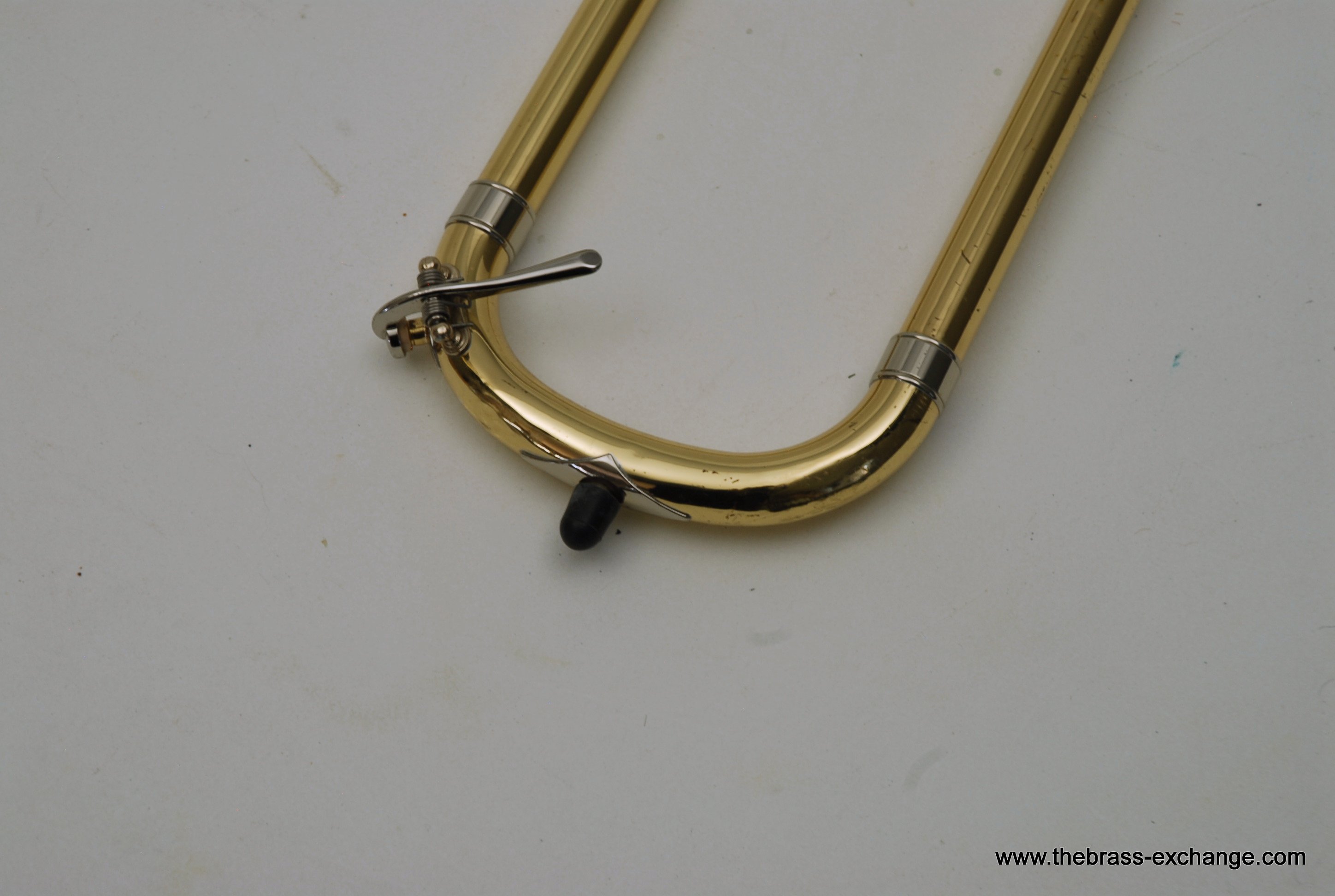 It is a single-owner trombone that has been carefully maintained since new. Recently serviced in our shop with a full chemical bath and complete inspection, it is playing exactly as it should — clean response, secure intonation, and free of any mechanical issues. The lacquer finish shows only minimal wear, giving the appearance and feel of a nearly new instrument.