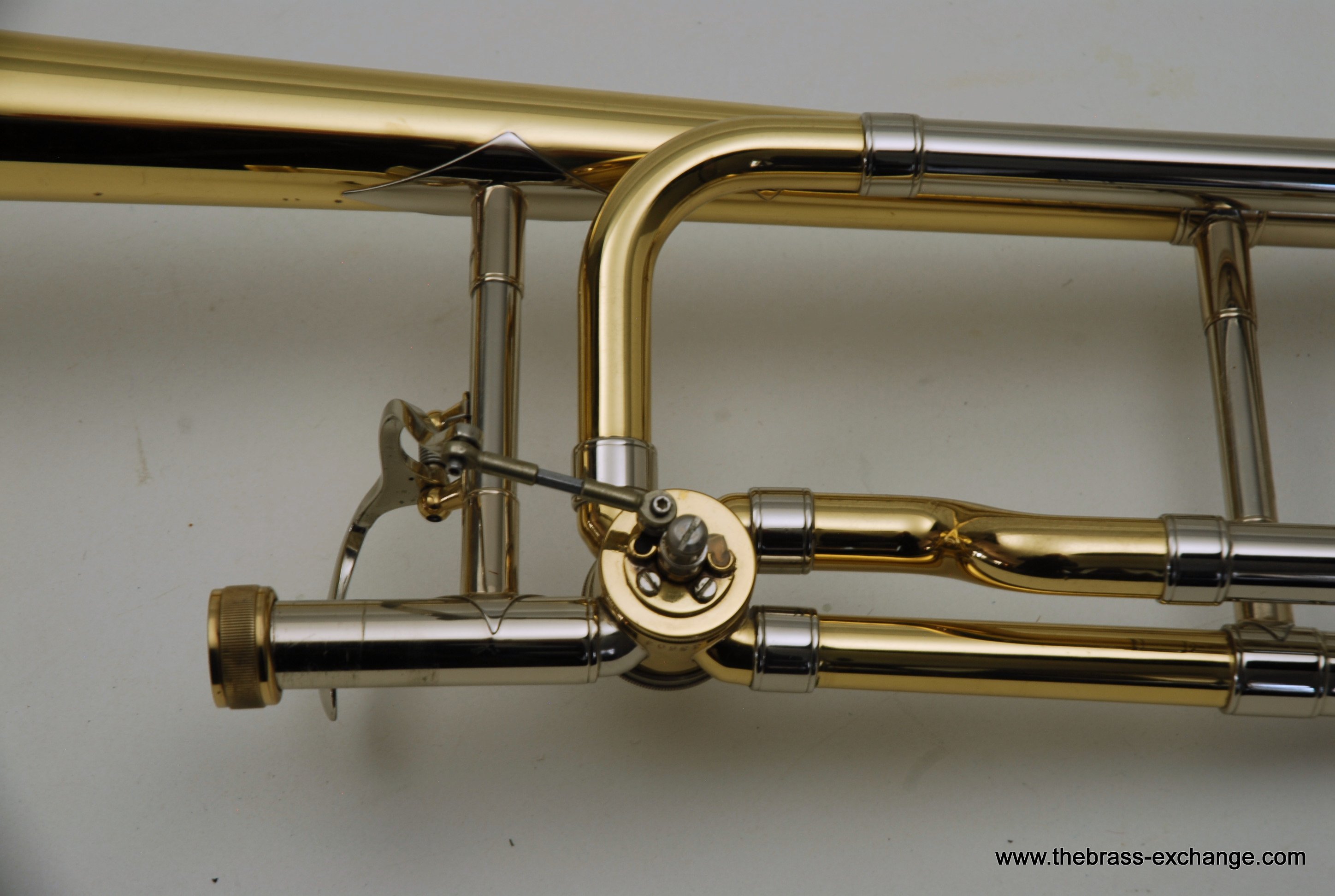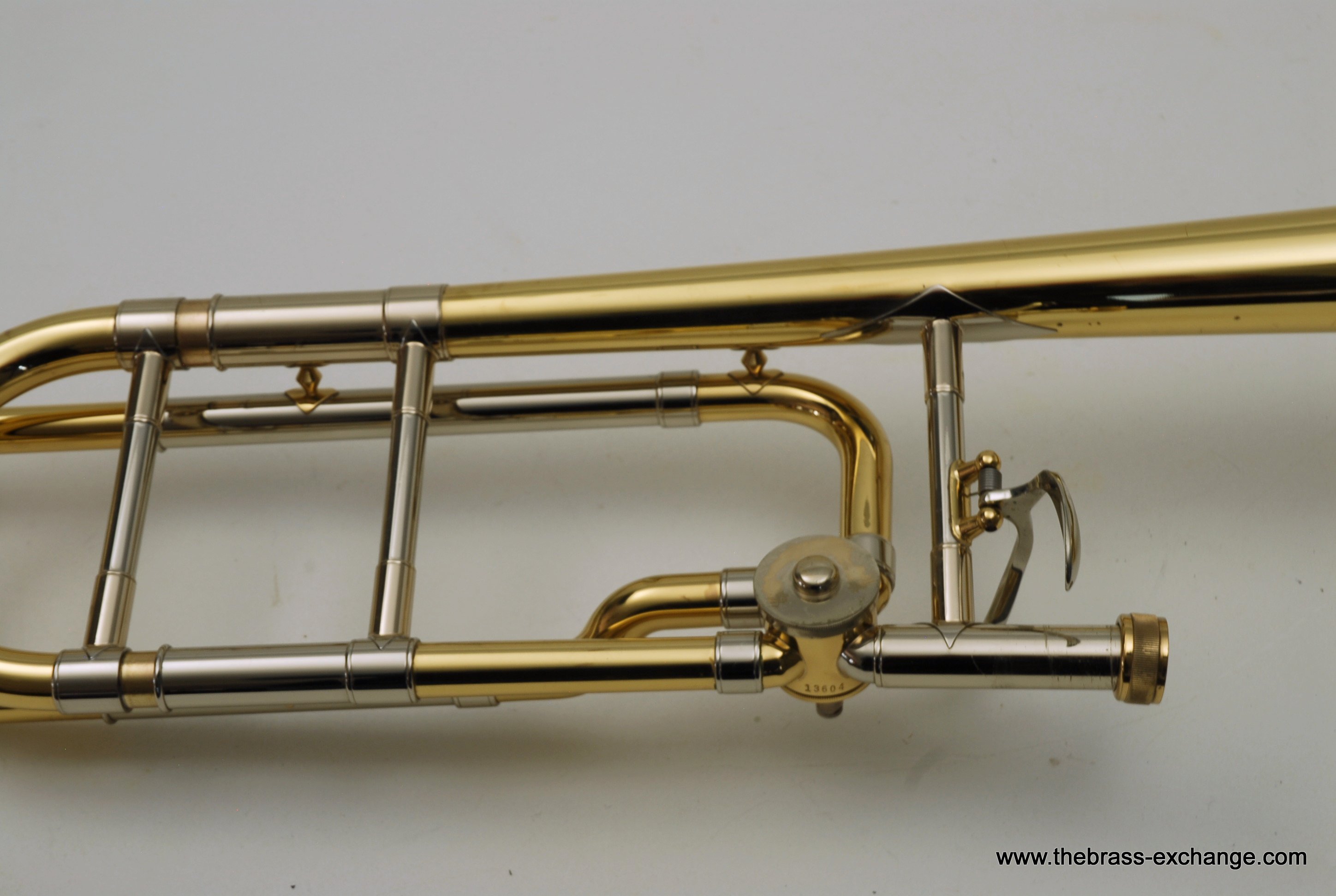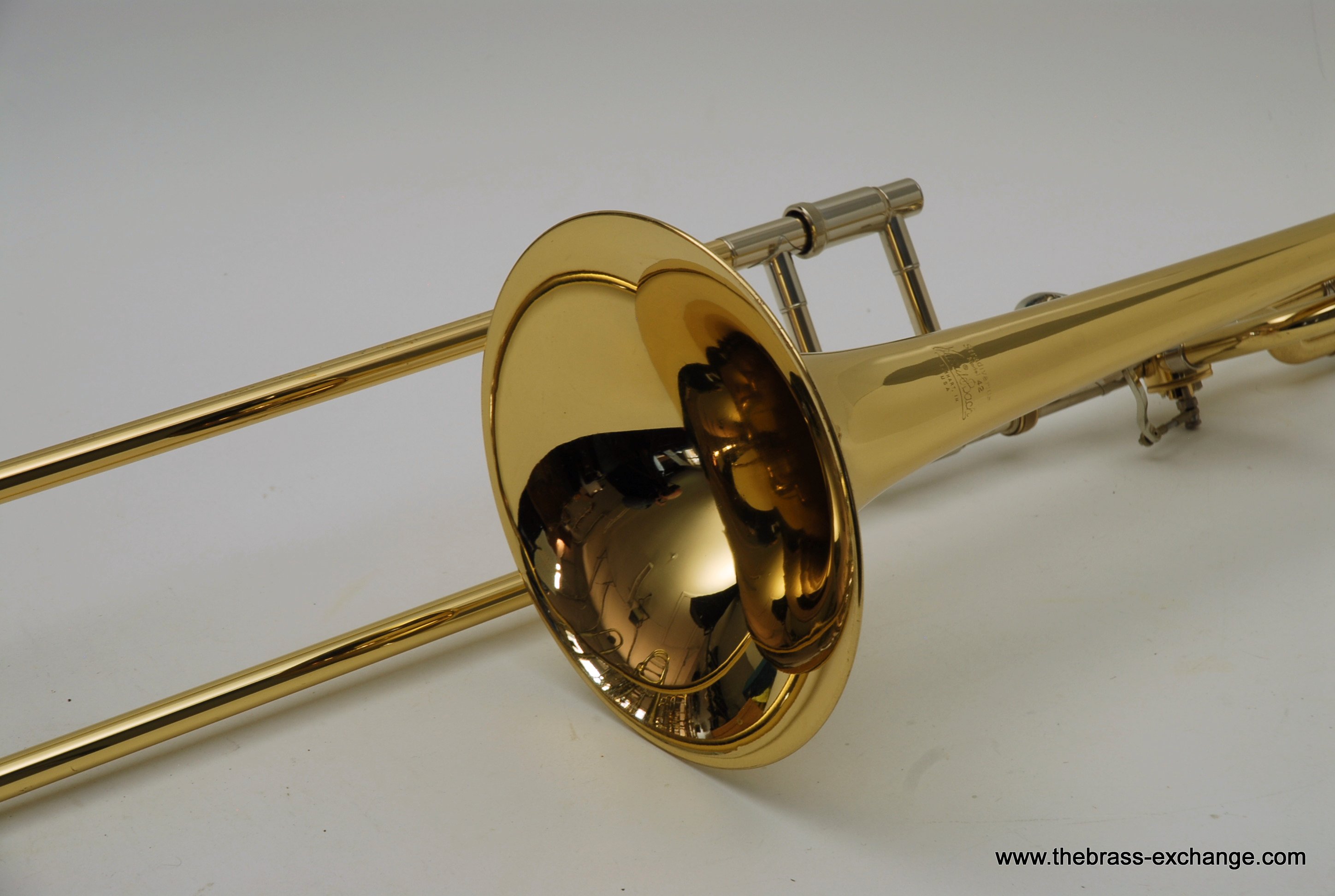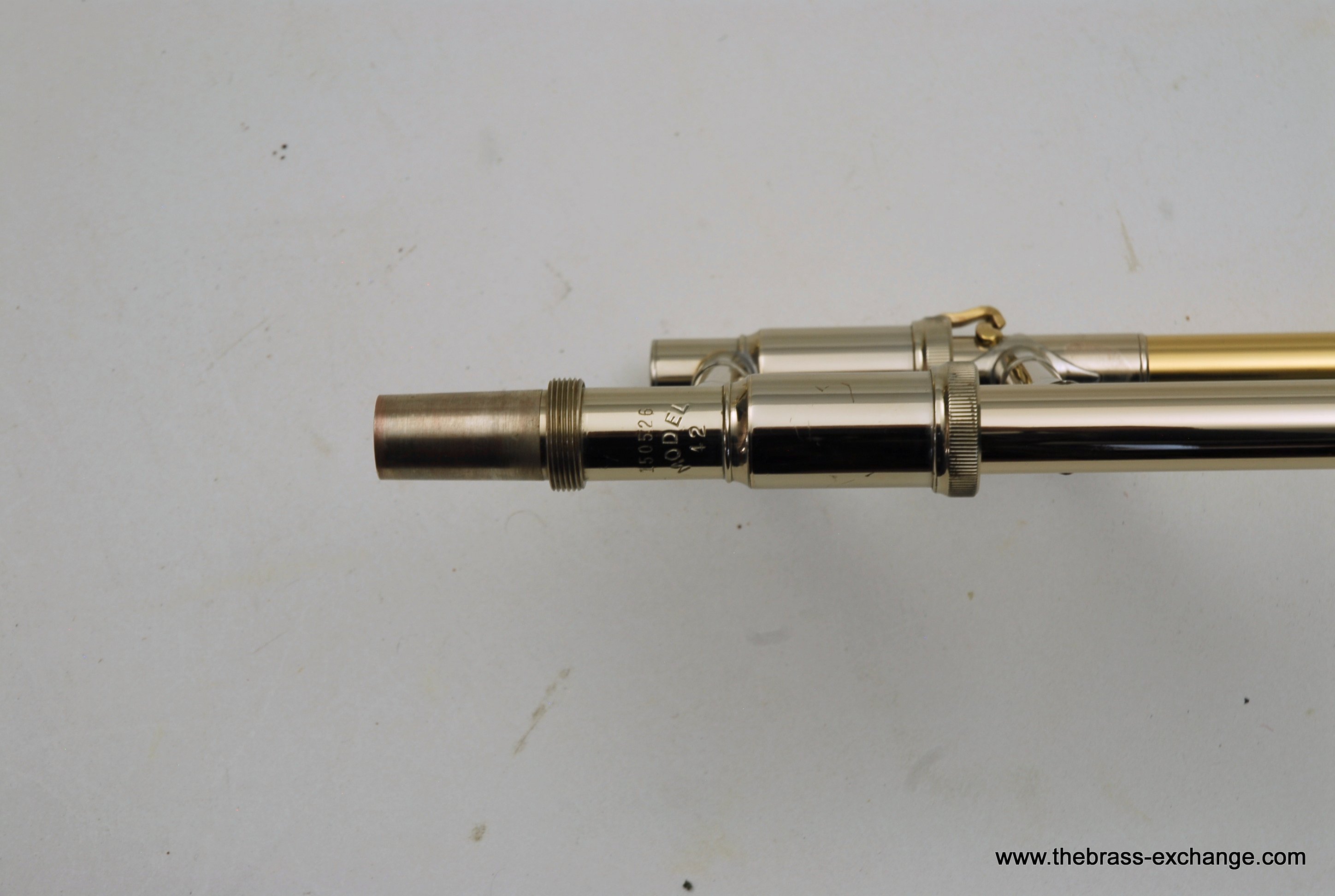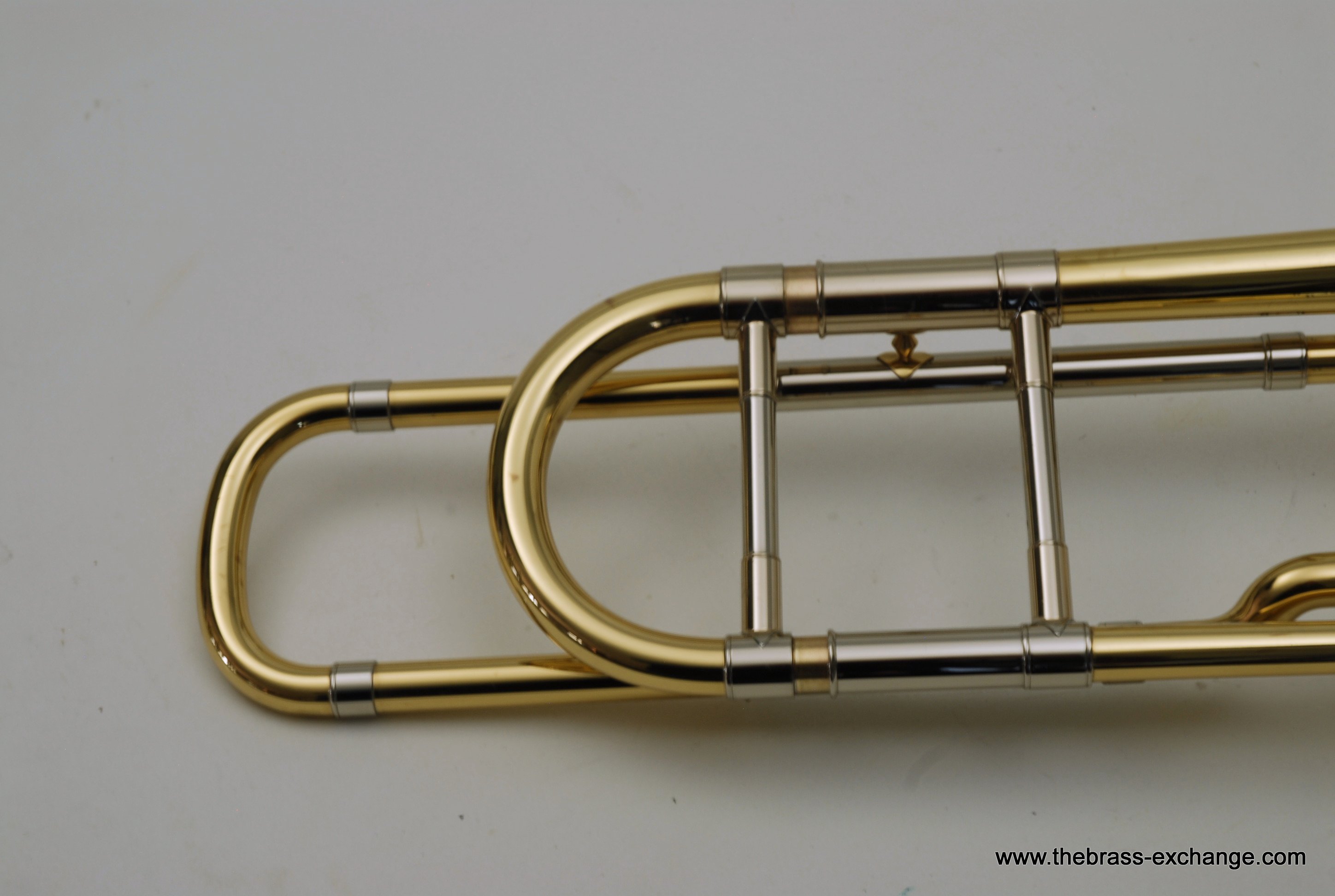 It is a single-owner trombone that has been carefully maintained since new. Recently serviced in our shop with a full chemical bath and complete inspection, it is playing exactly as it should — clean response, secure intonation, and free of any mechanical issues. The lacquer finish shows only minimal wear, giving the appearance and feel of a nearly new instrument.