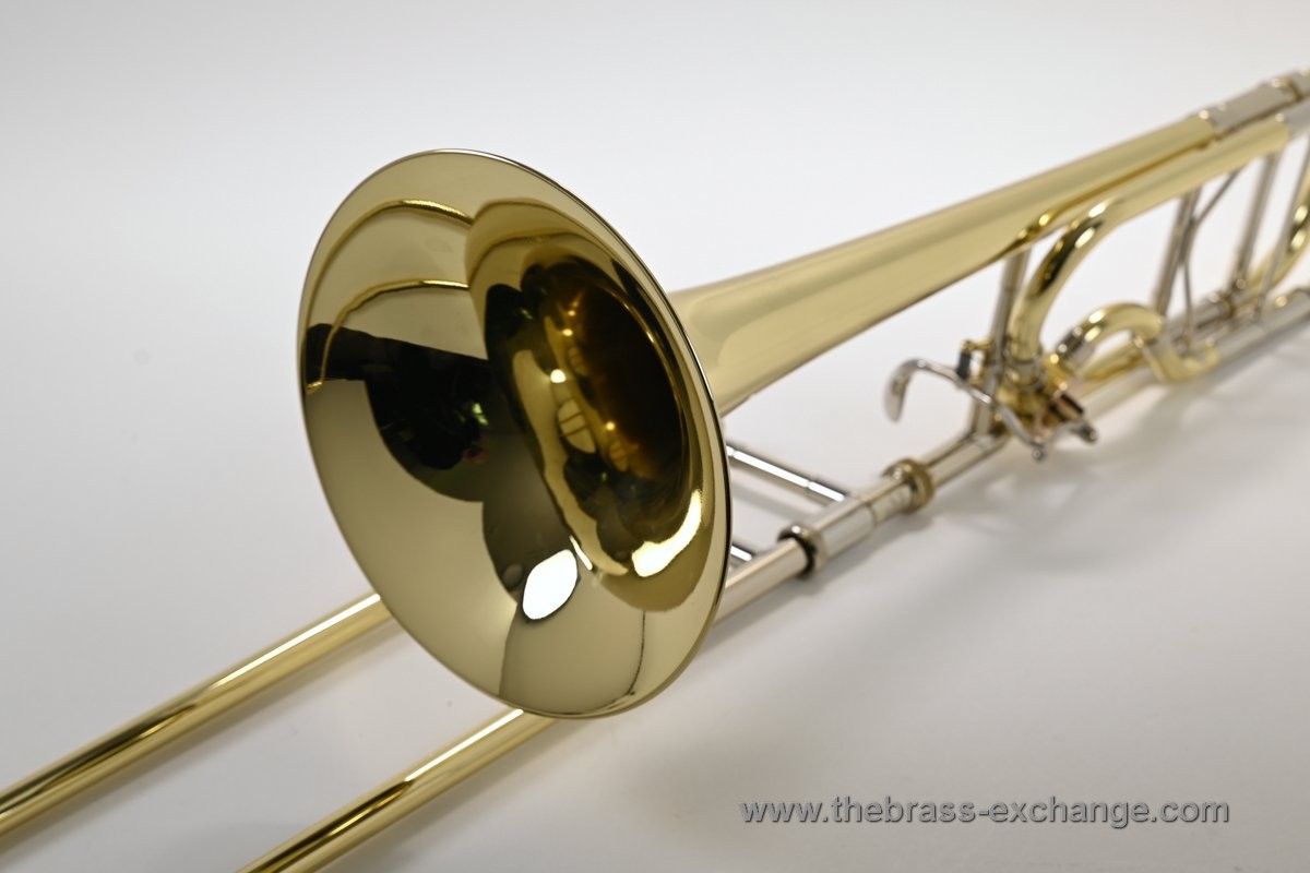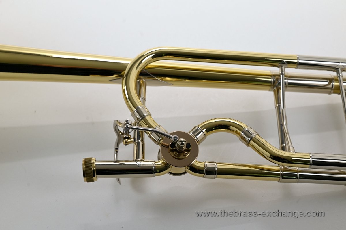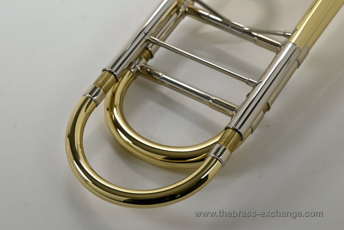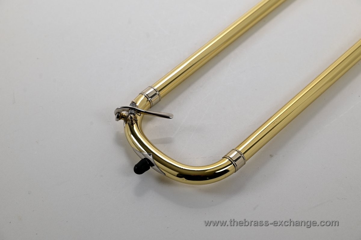 It features the classic one-piece 8.5" yellow brass 42 bell finished in clear lacquer, paired with a standard-weight .547 handslide. The slide has been professionally set up in-shop for optimal action and responsiveness. The inner tubes are clean and straight, with no plating loss or alignment issues.