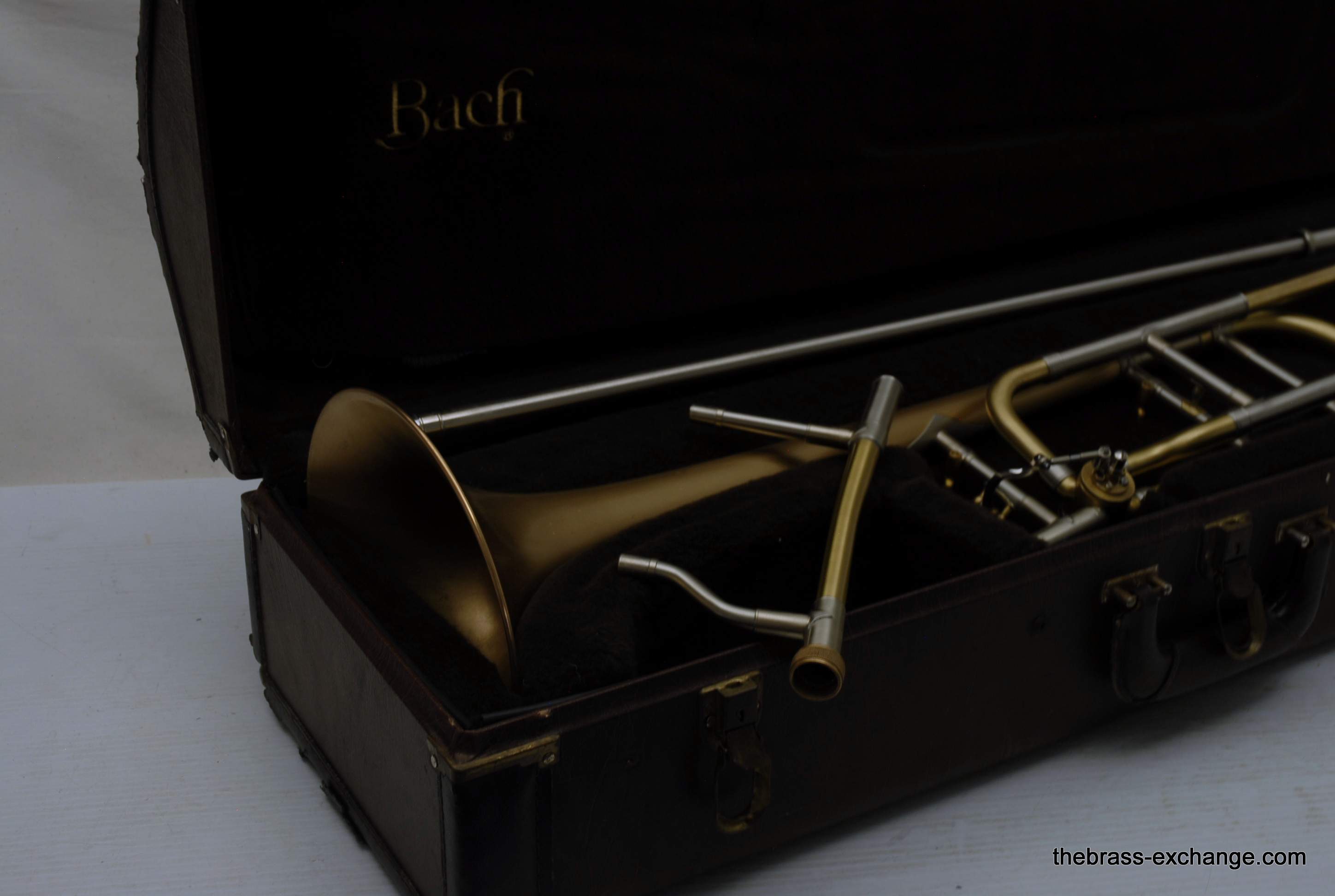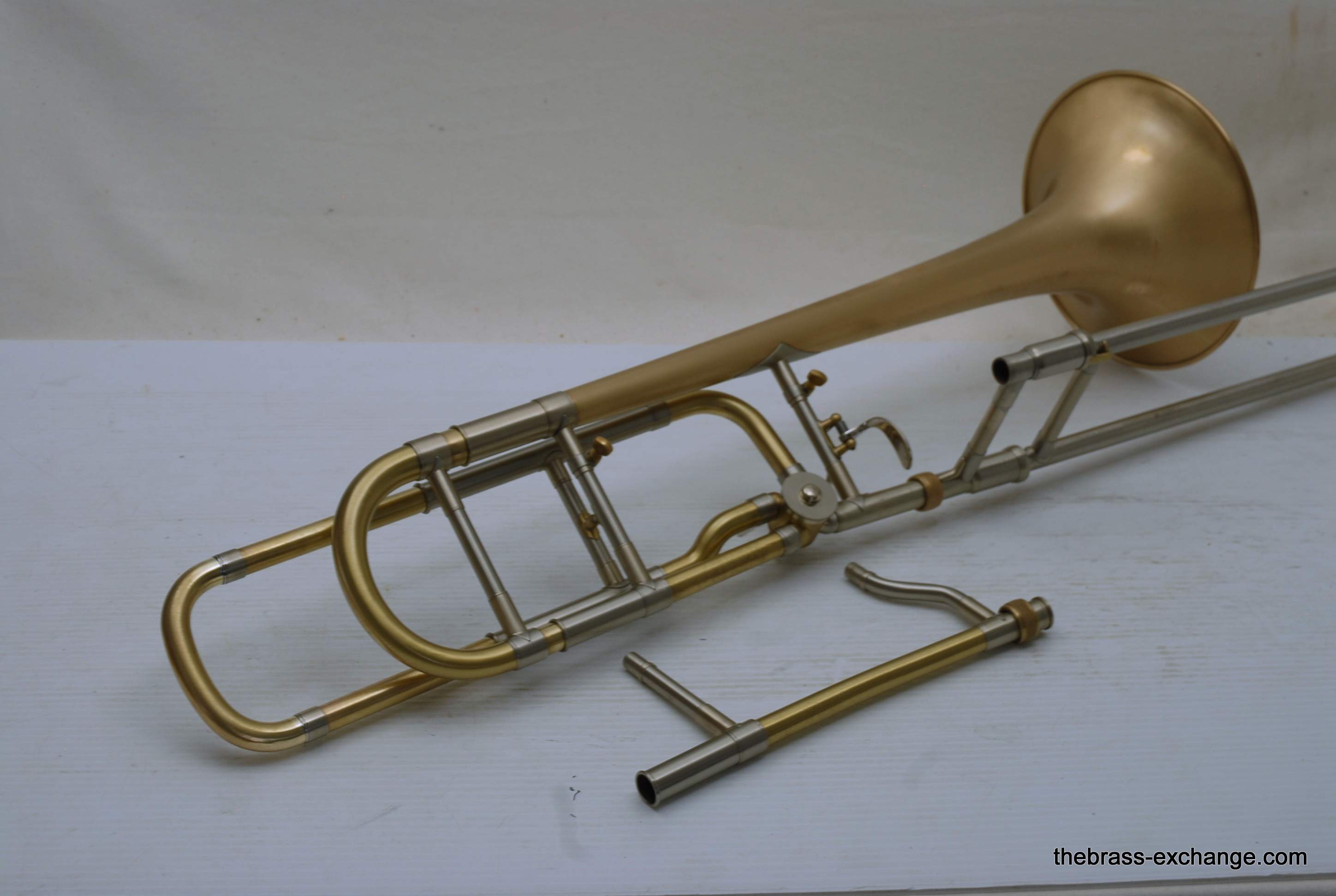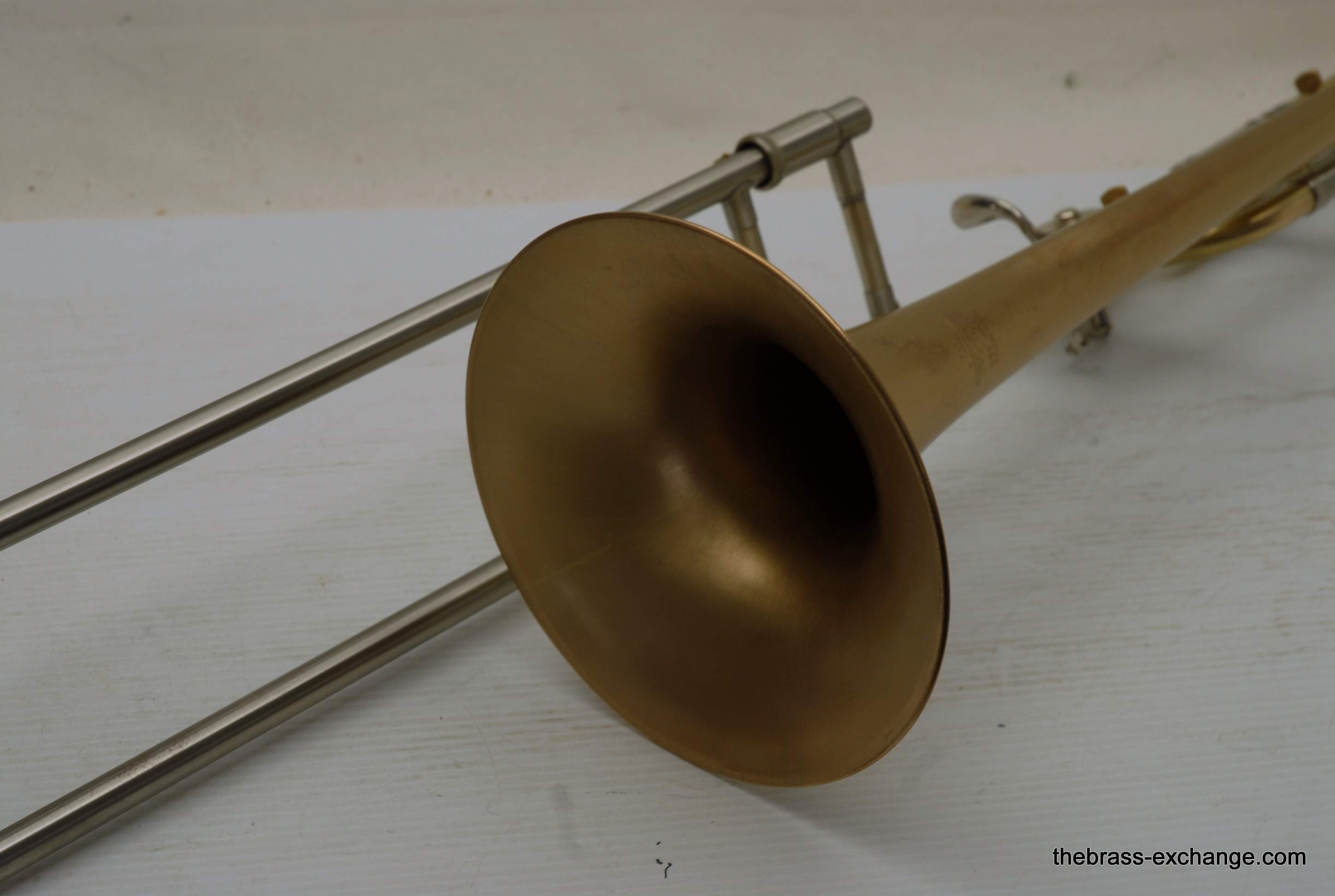 Bach 42BOG LT Convertible Made in the mid 1990's. Has removable neckpipe for coversion to straight tenor. Gold brass 8.5" bell, lightweight nickel silver handslide. This instrument was relacquered, brush satin finish. Has had full shop service here, including chemical bath and once over. Is ready to play out of the box. No issues with handslide or valve section. Is a good horn. Original case in ok condition. Mouthpiece not included. In-stock for immediate delivery.