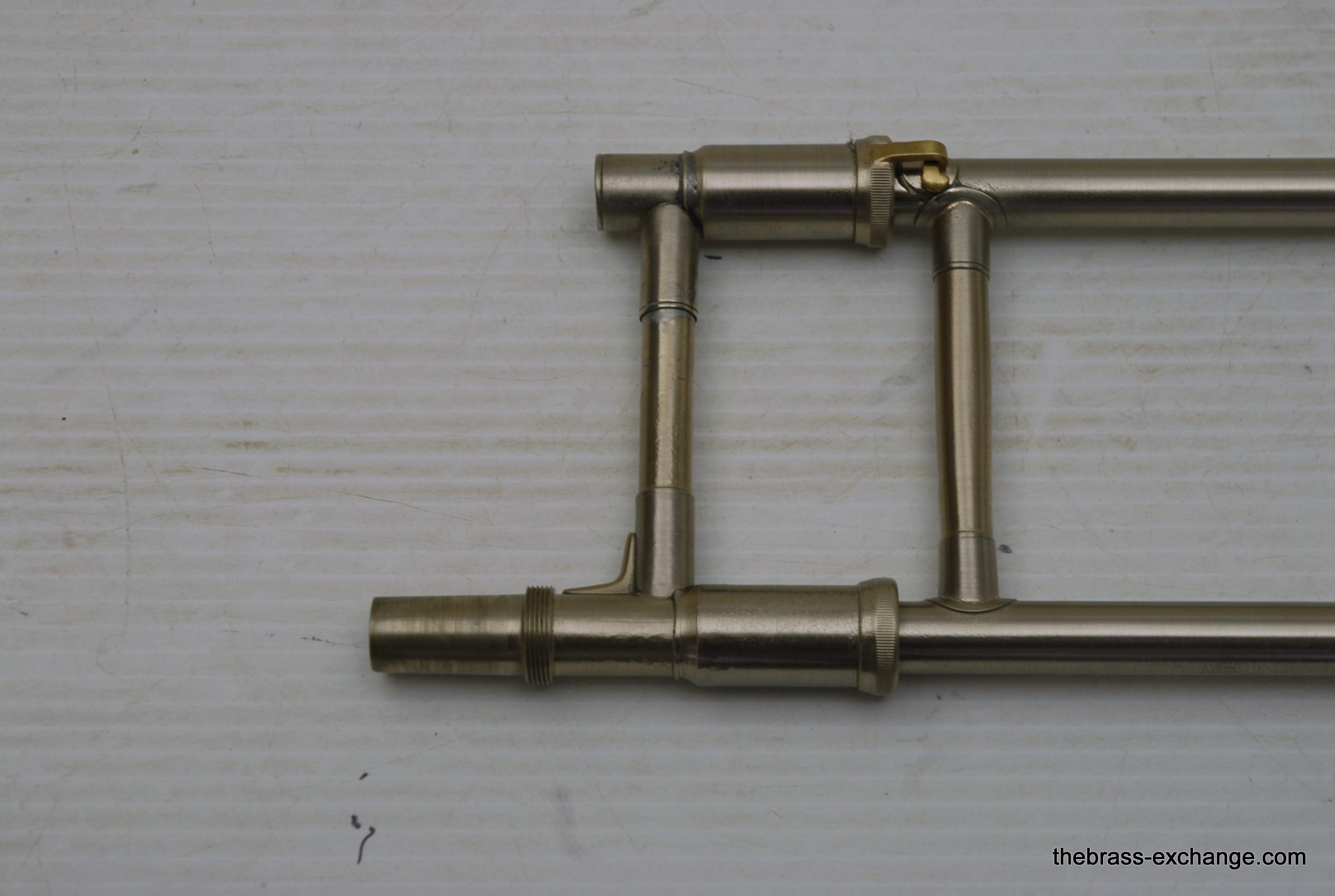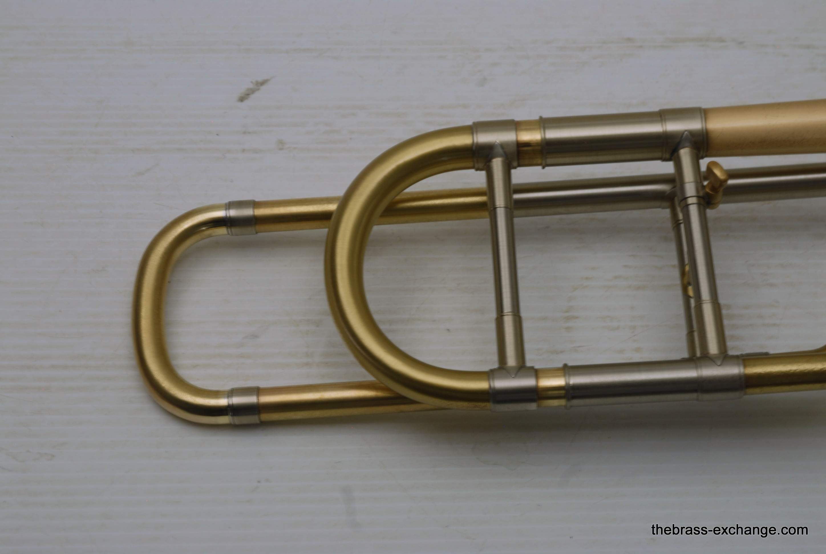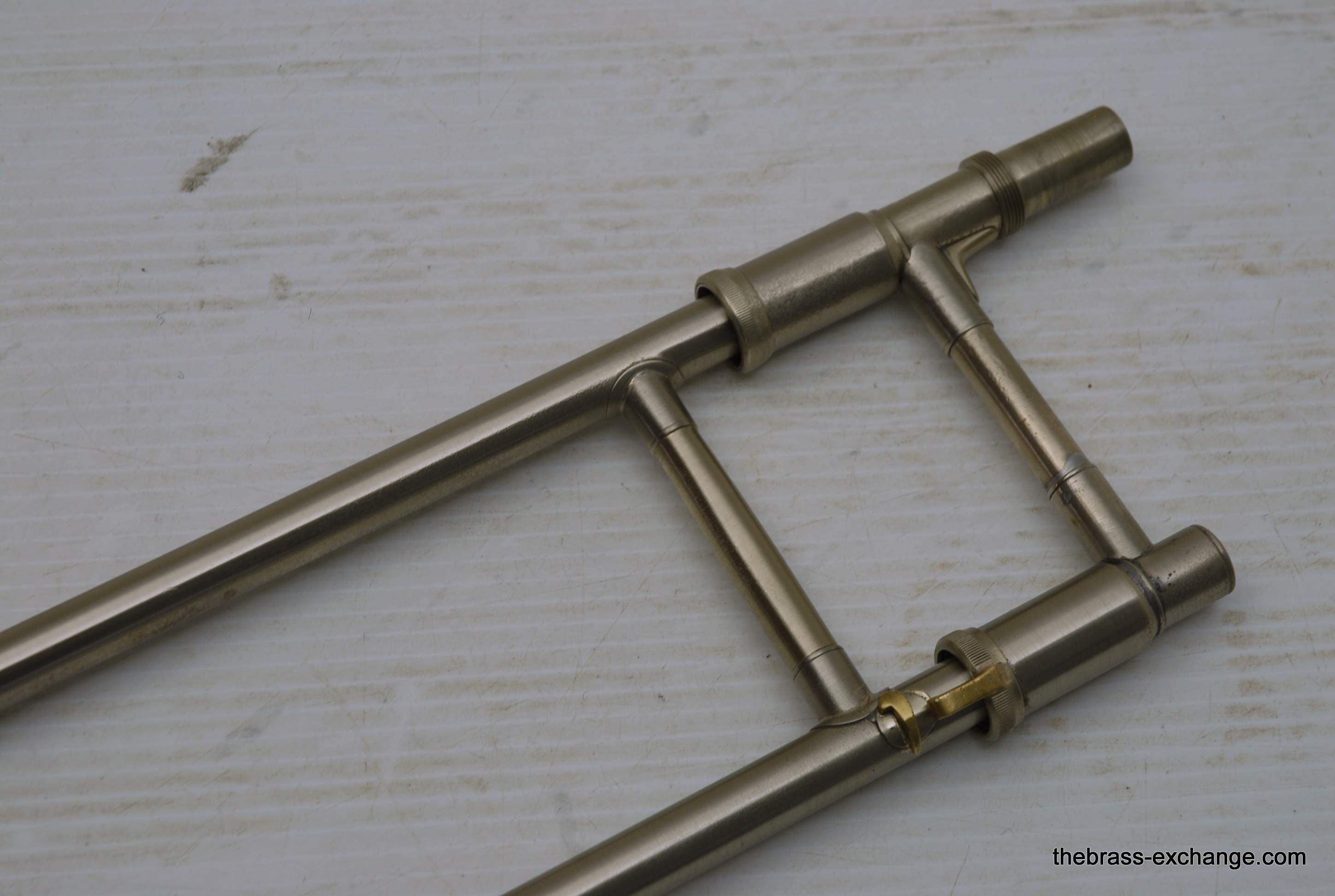 Bach 42BOG LT Convertible Made in the mid 1990's. Has removable neckpipe for coversion to straight tenor. Gold brass 8.5" bell, lightweight nickel silver handslide. This instrument was relacquered, brush satin finish. Has had full shop service here, including chemical bath and once over. Is ready to play out of the box. No issues with handslide or valve section. Is a good horn. Original case in ok condition. Mouthpiece not included. In-stock for immediate delivery.