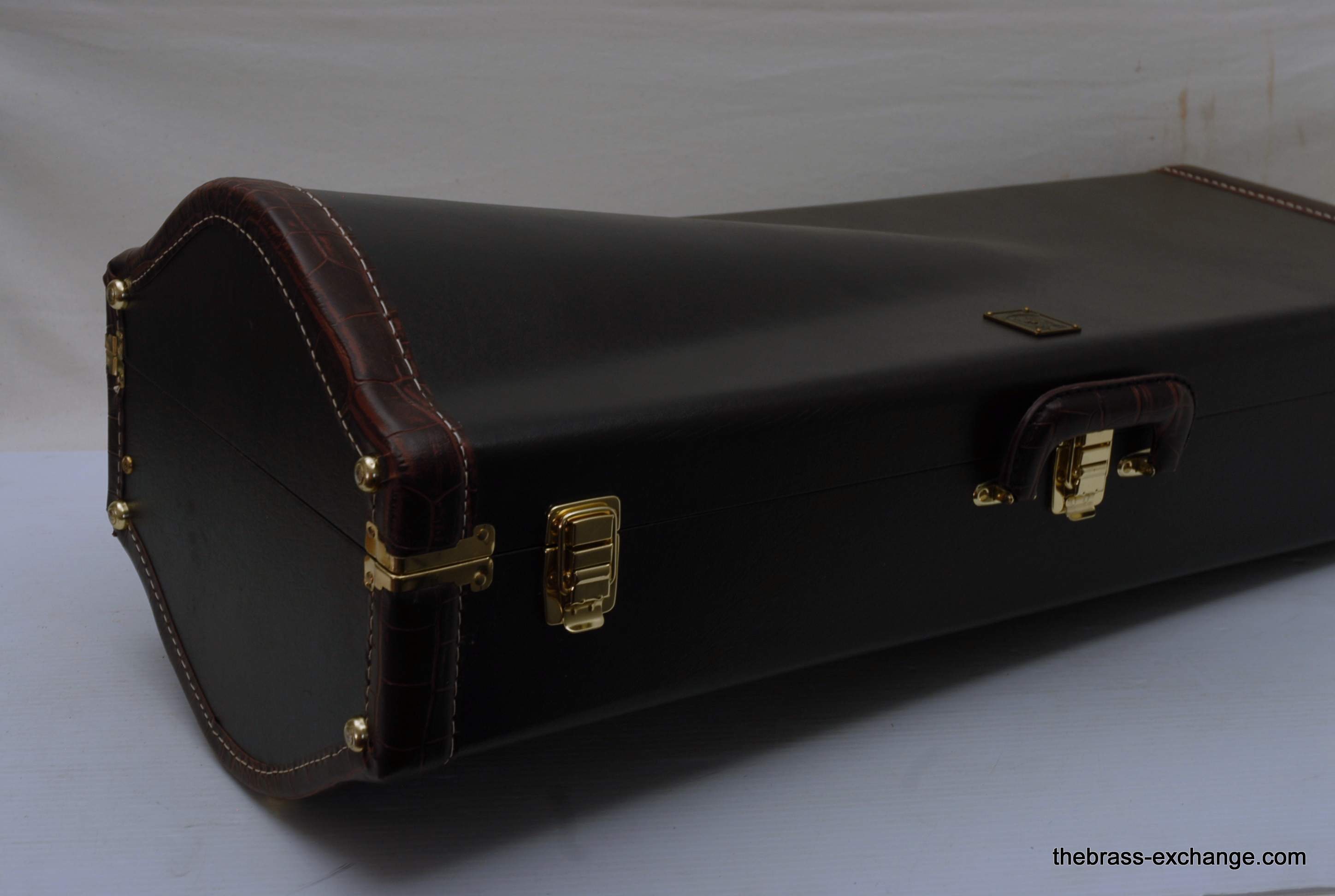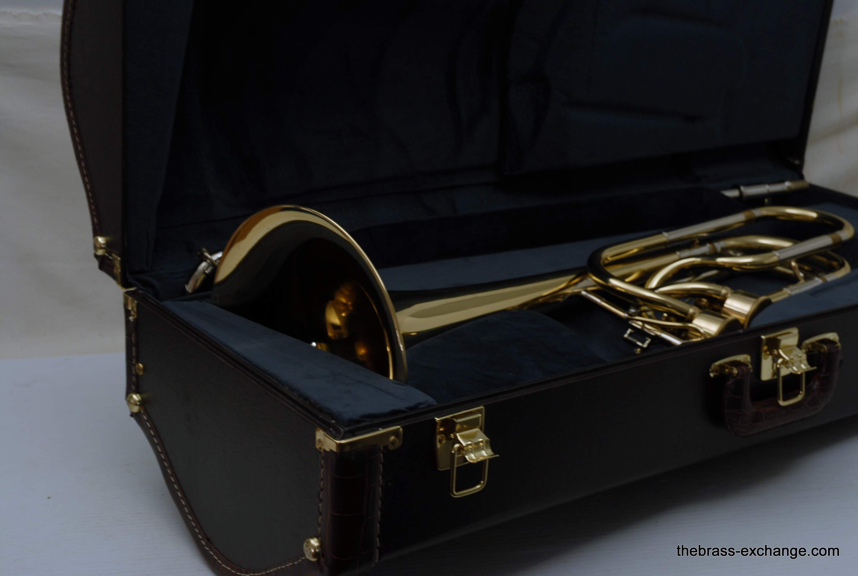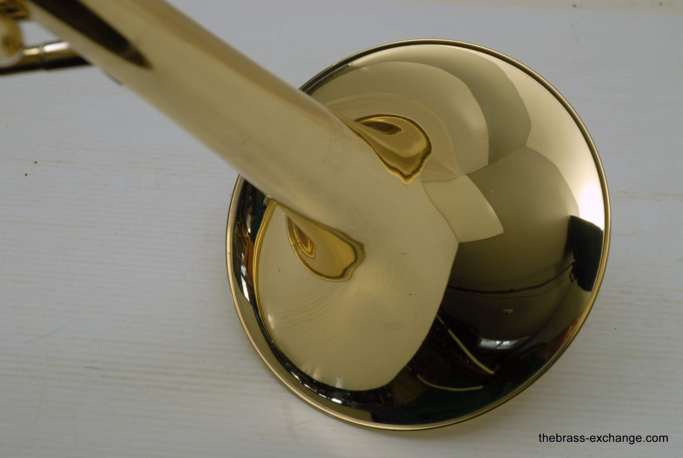 This particular example was pro-player owned and saw minimal use before being acquired by The Brass Exchange. The instrument paired a 9.5″ yellow-brass 50-series bell section with an upgraded Edwards straight-bore bass slide and one removable leadpipe. That combination delivered a broad, resonant core with excellent projection and clarity in both orchestral and chamber settings.