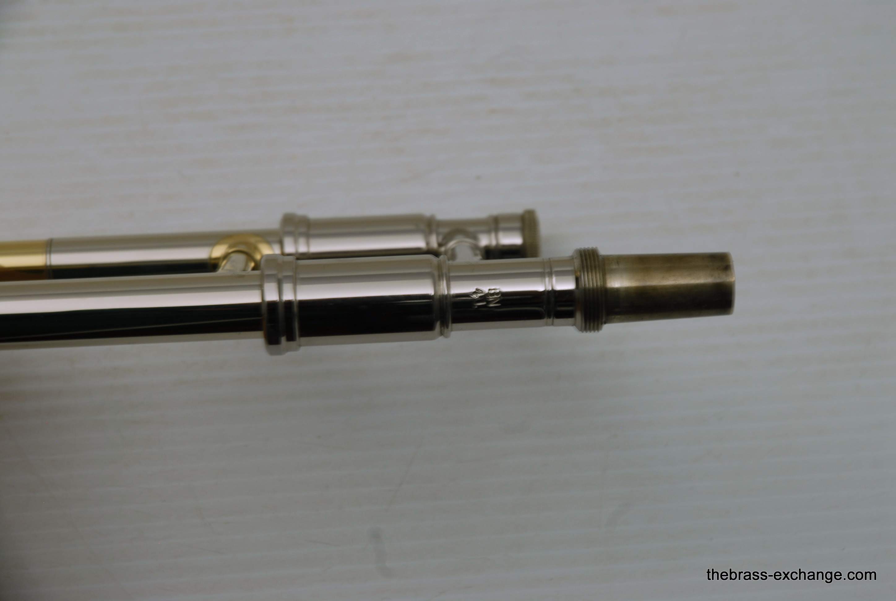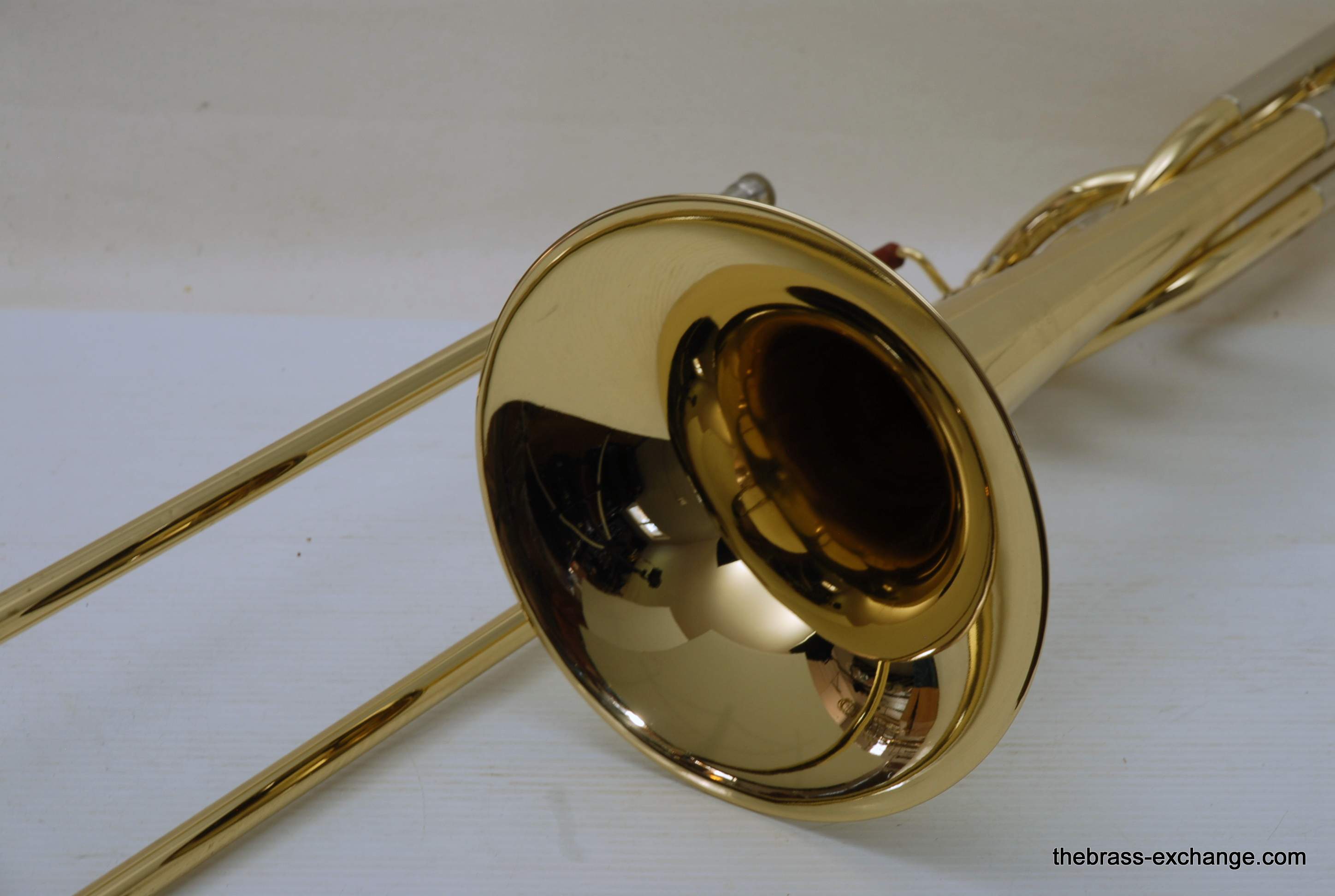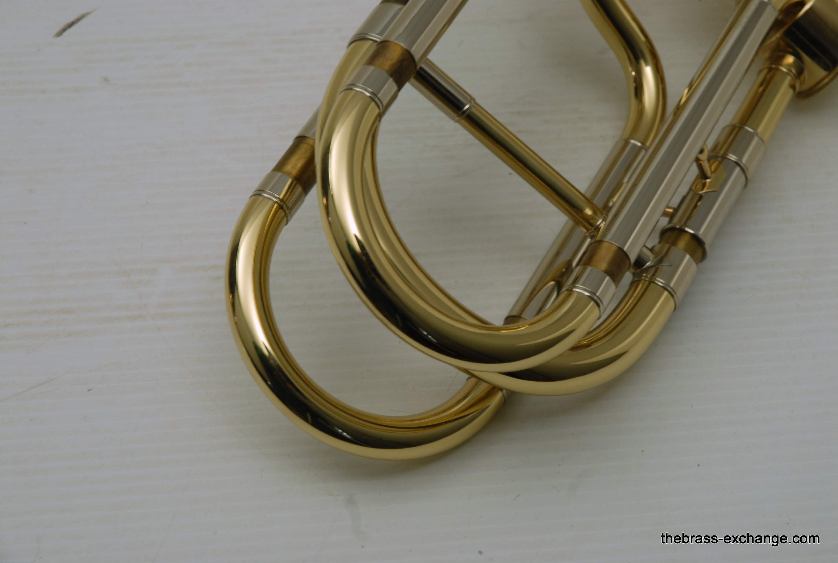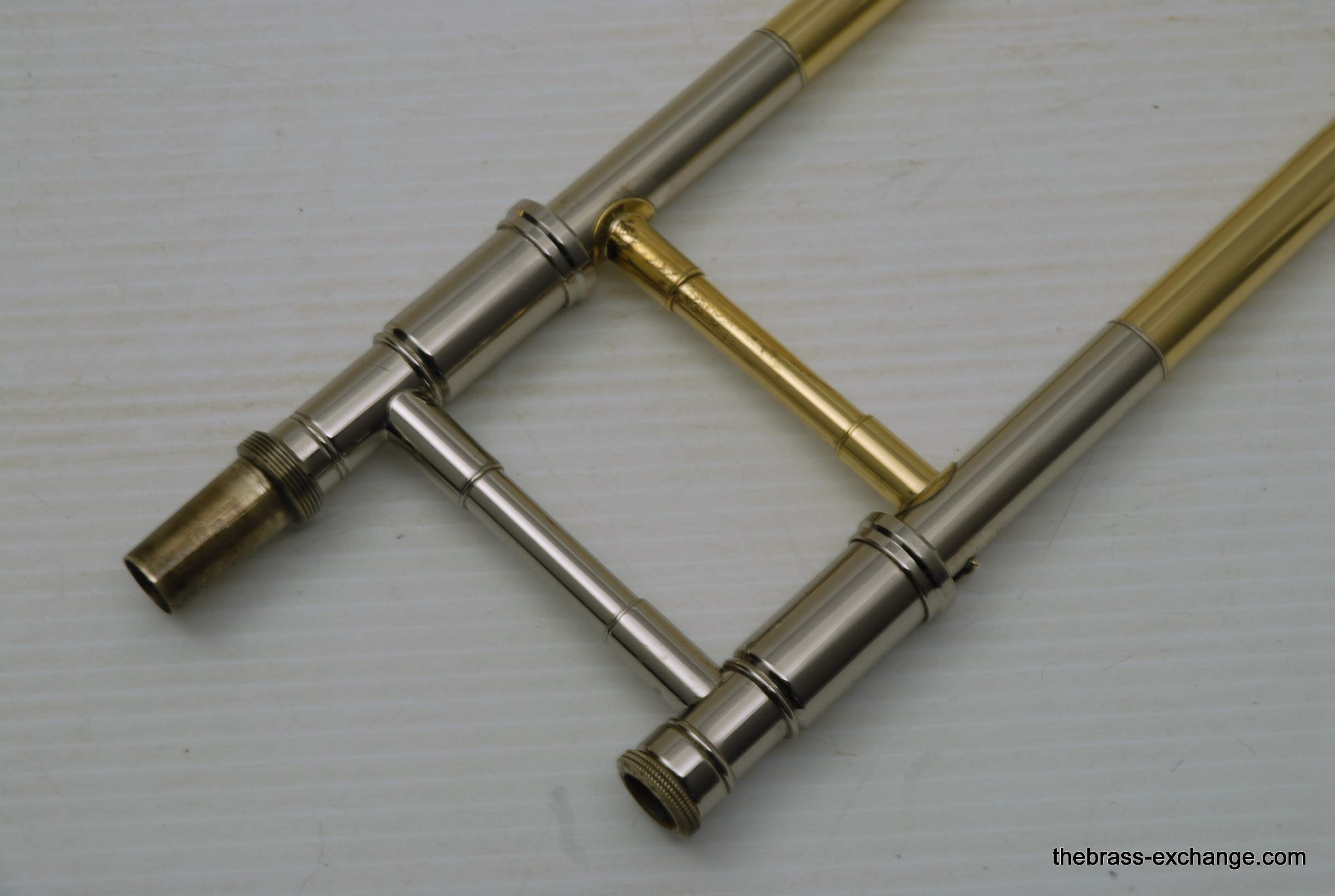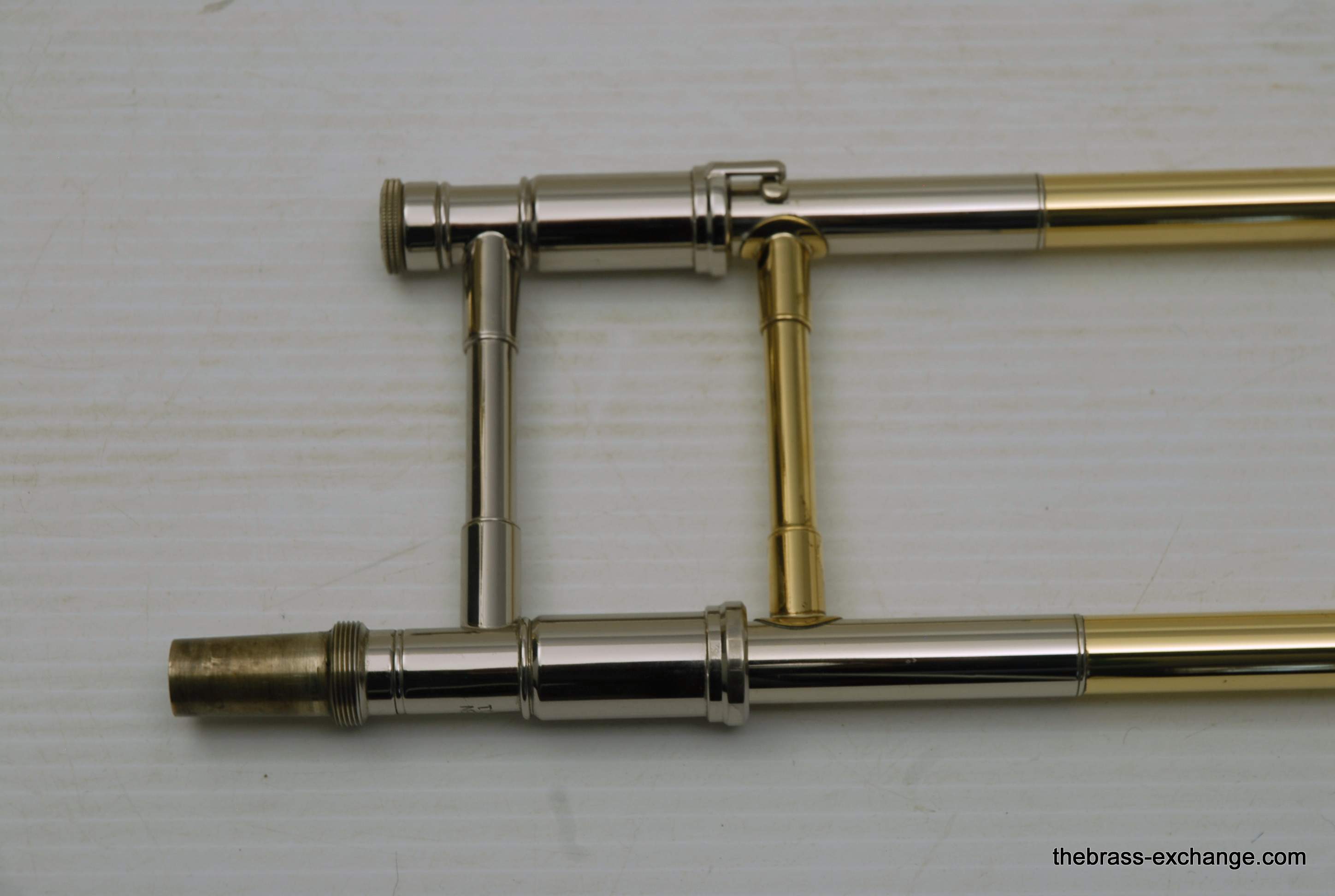This example included an upgraded Edwards bass slide, straight-bore configuration, compatible with Bach 50-series bell sections. Many professional players pair these for improved slide alignment and articulation.